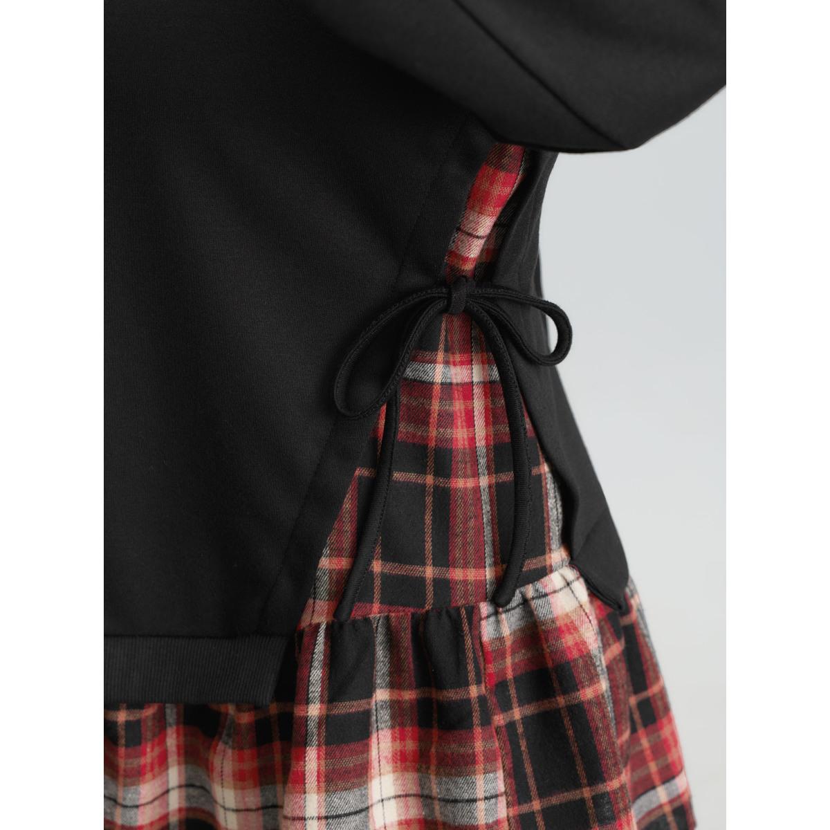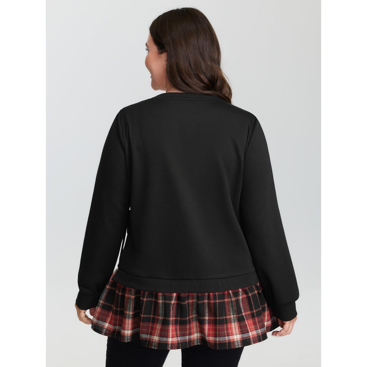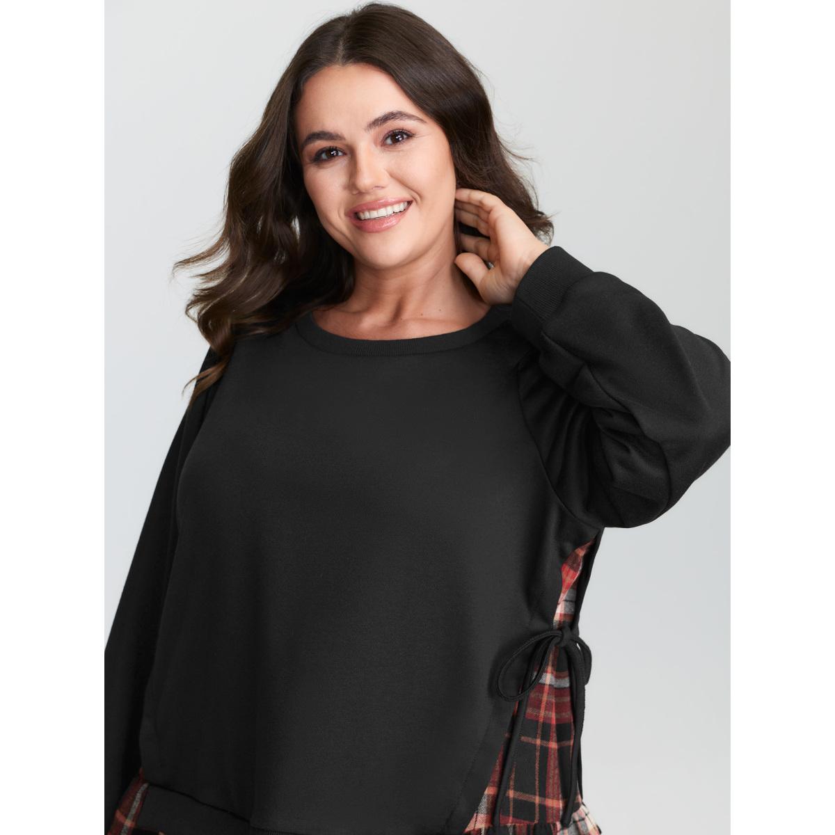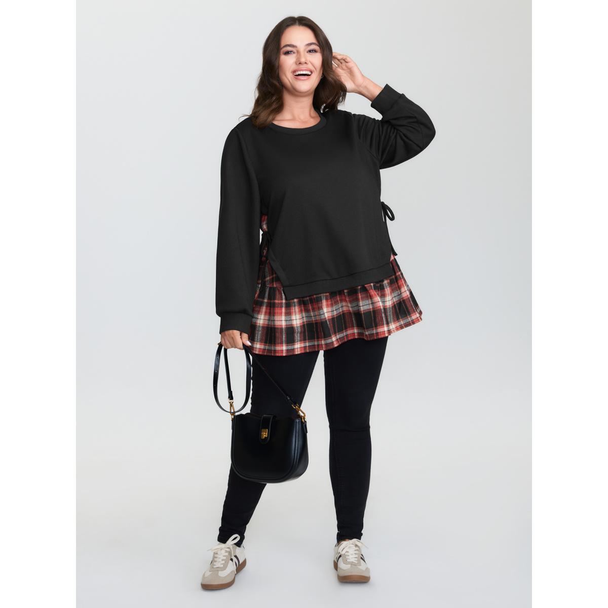 Plus Size Plaid Pattern Layered Stretchy Sweatshirt Women Black Leisure Tie knot Round Neck Casual Sweatshirts BloomChic 28/5X