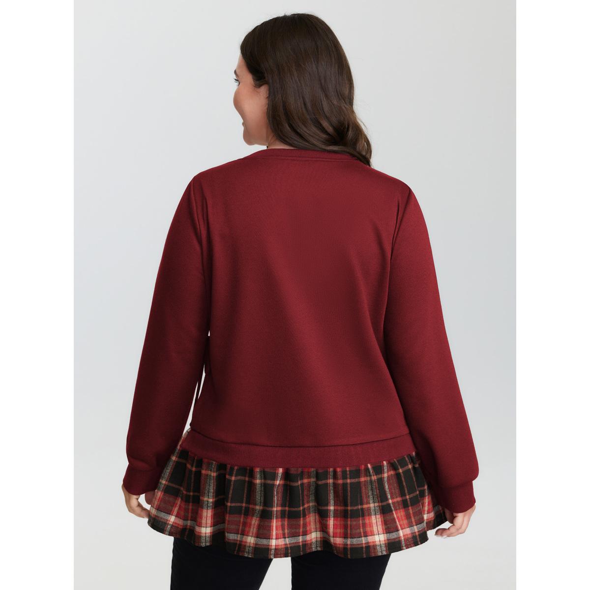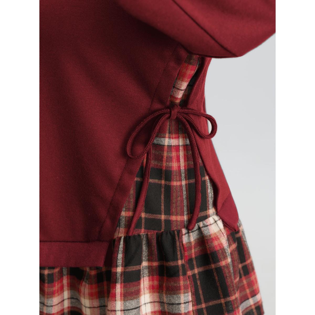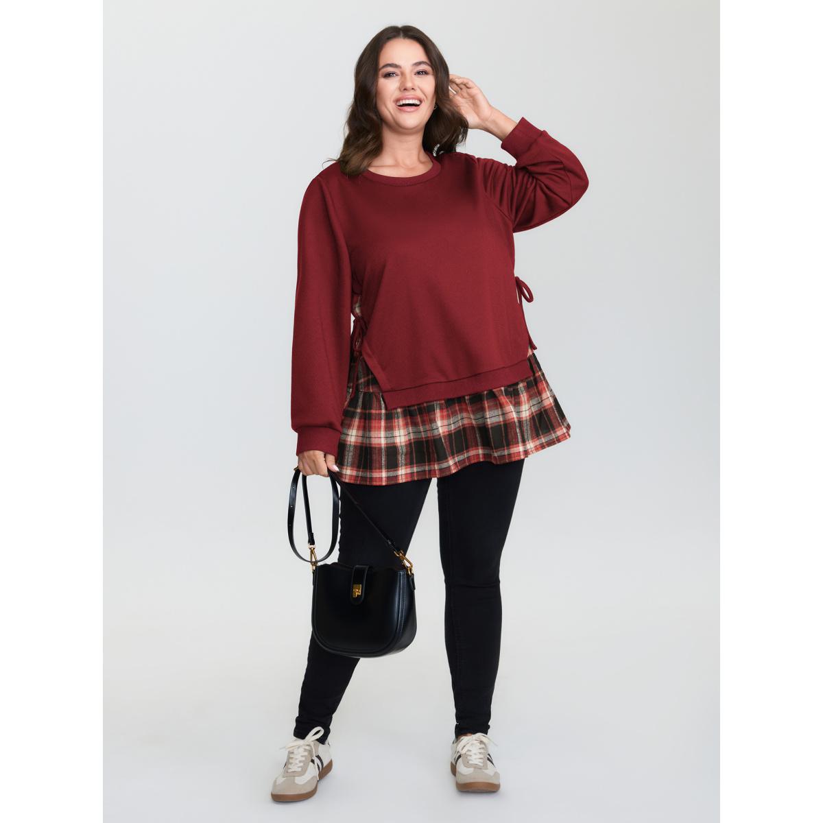 Plus Size Plaid Pattern Layered Stretchy Sweatshirt Women Scarlet Leisure Tie knot Round Neck Casual Sweatshirts BloomChic 12/L