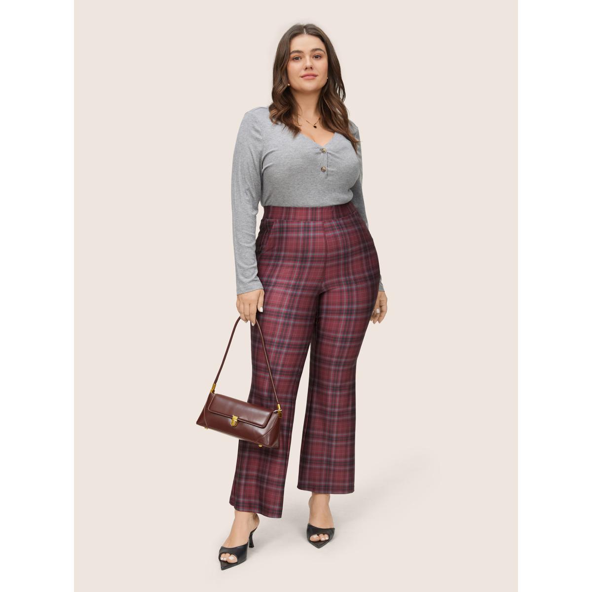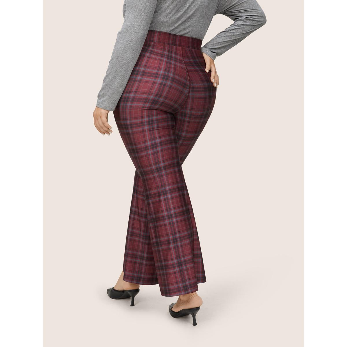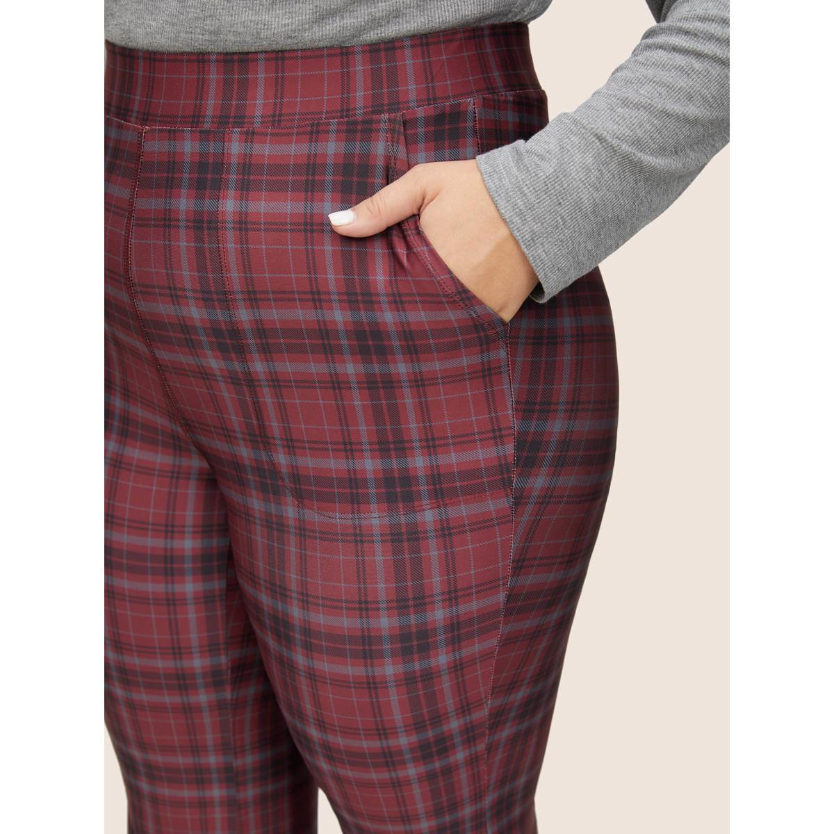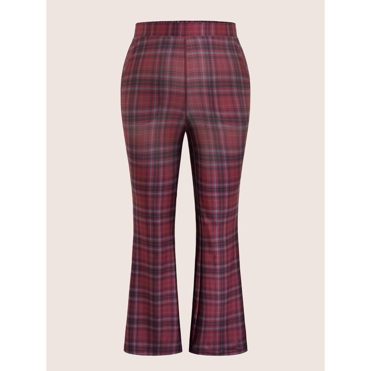 Plus Size Plaid Pocket Elastic Waist Bootcut Leggings Women Maroon At the Office High stretch Bootcut High Rise Office Leggings BloomChic 14-16/1X