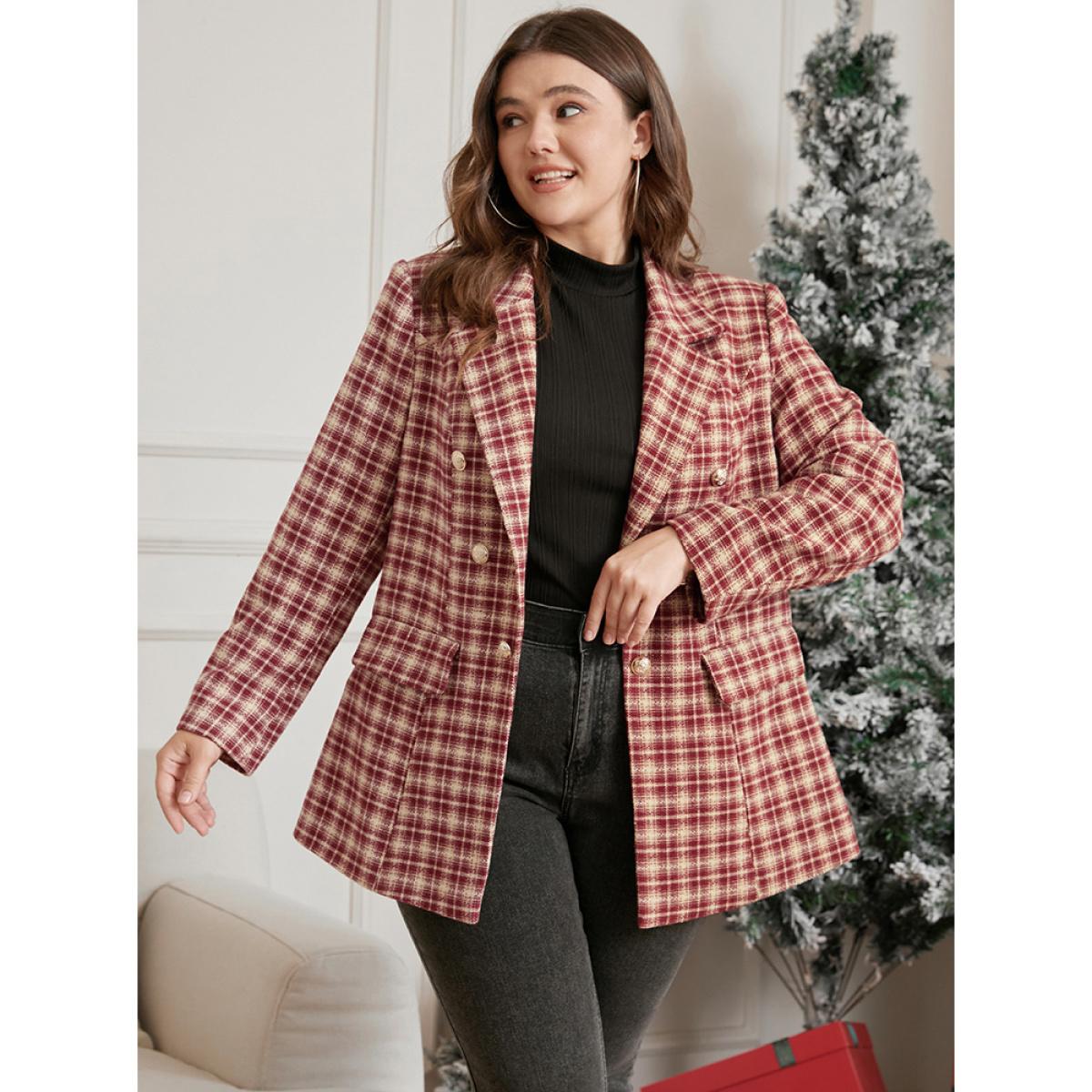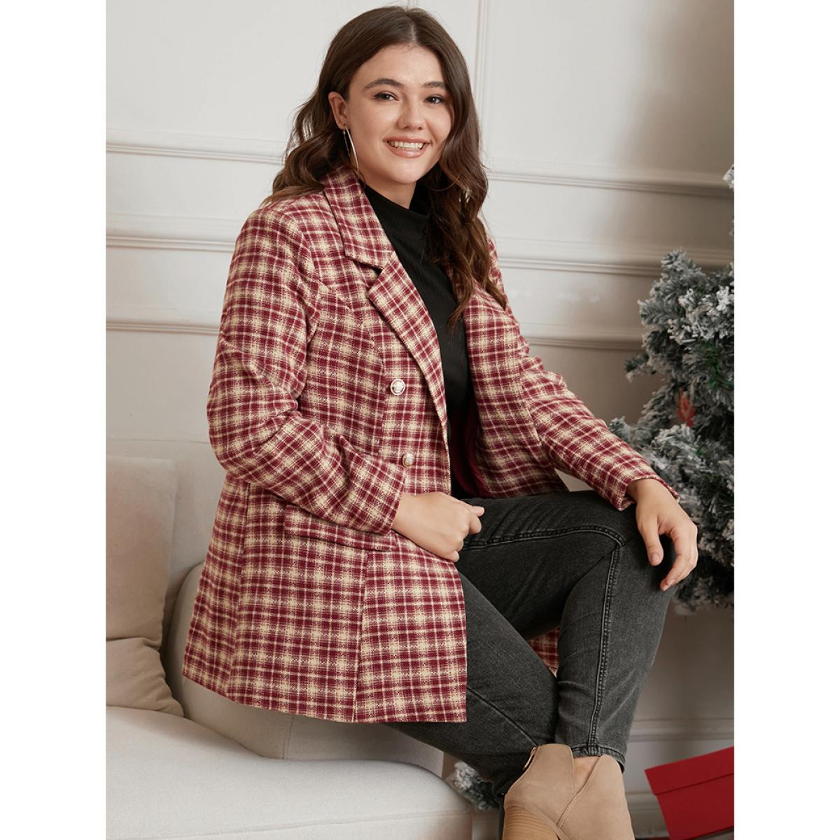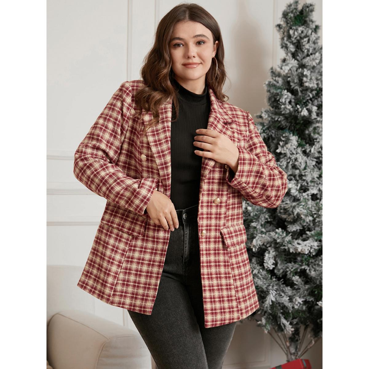 Plus Size Plaid Suit Collar Button Detail Flap Pocket Coat Women Scarlet Elegant Ladies Dailywear Winter Coats BloomChic 26/4X