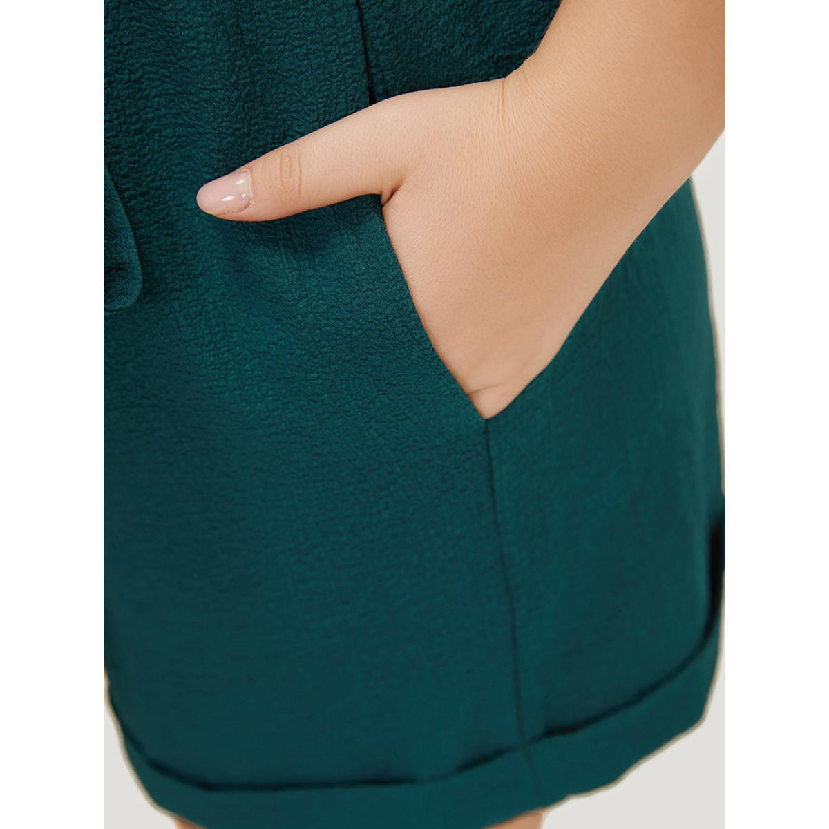 Plus Size Plain Belted Pocket Roll Hem Shorts Women DarkGreen Office Plain Office Shorts BloomChic 28/5X Product Image