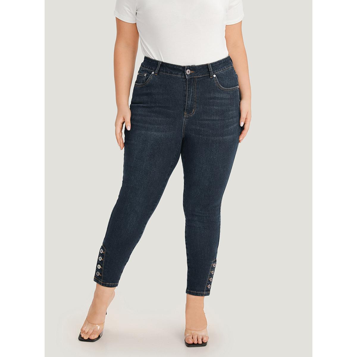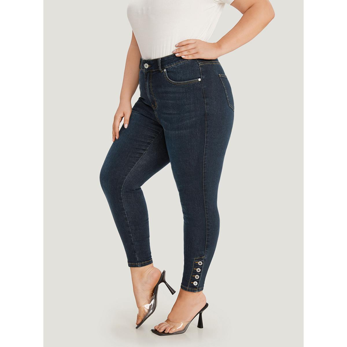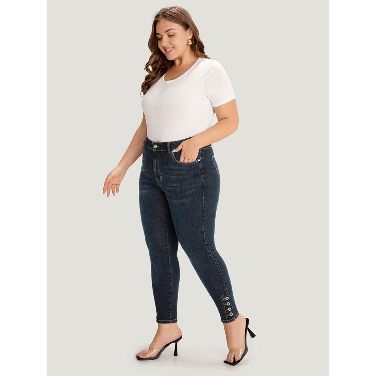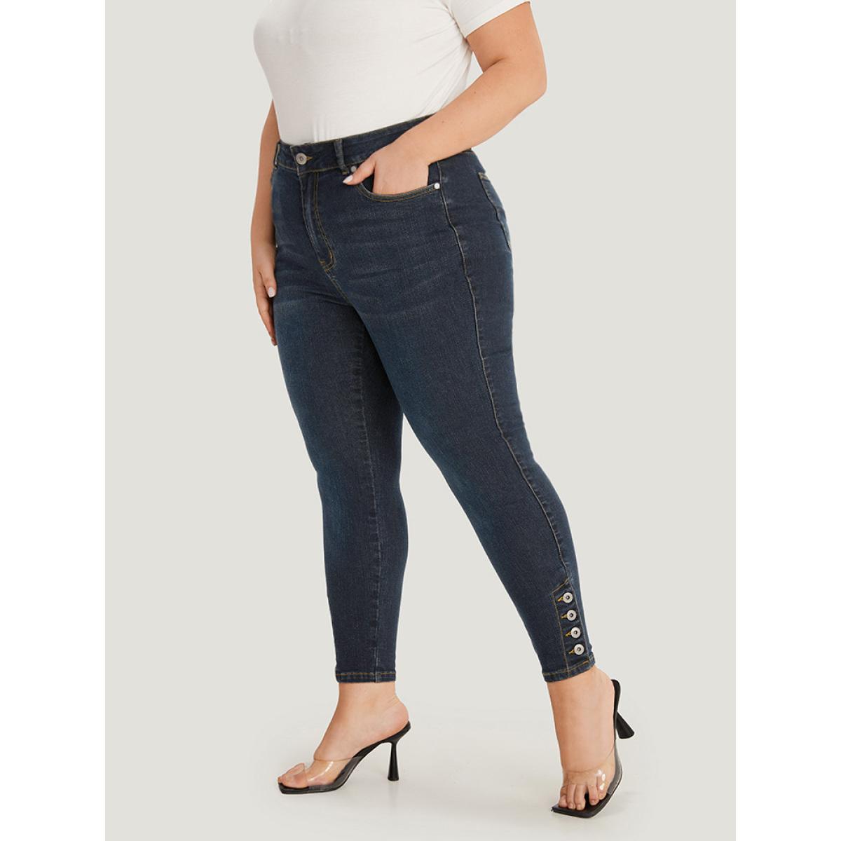 Plus Size Plain Button Detail Pocket High Rise Jeans Women Midnight Casual Plain Plain High stretch Pocket Jeans BloomChic 28/5X