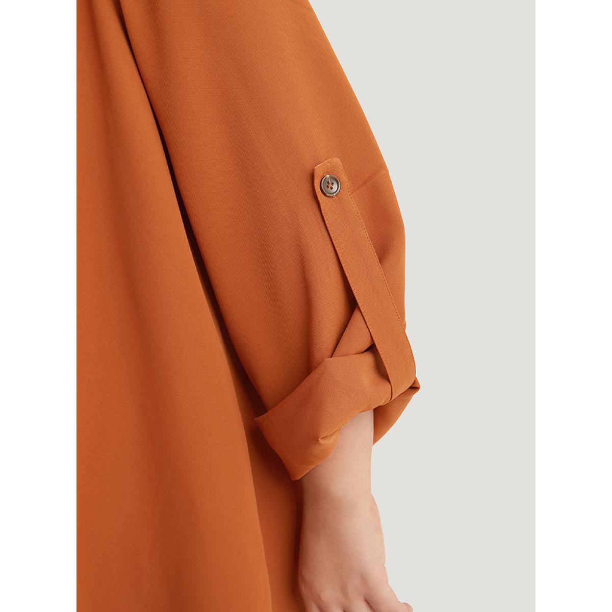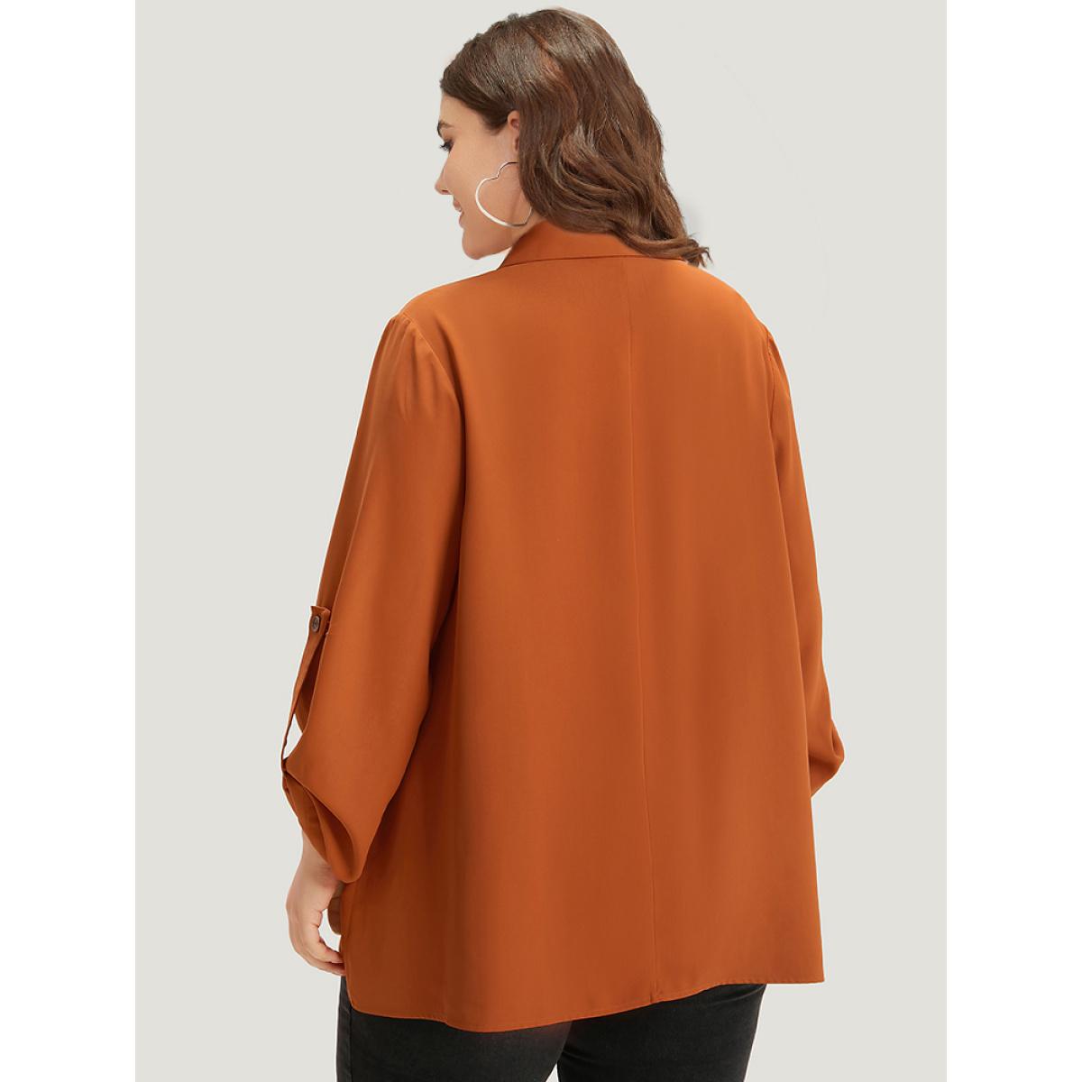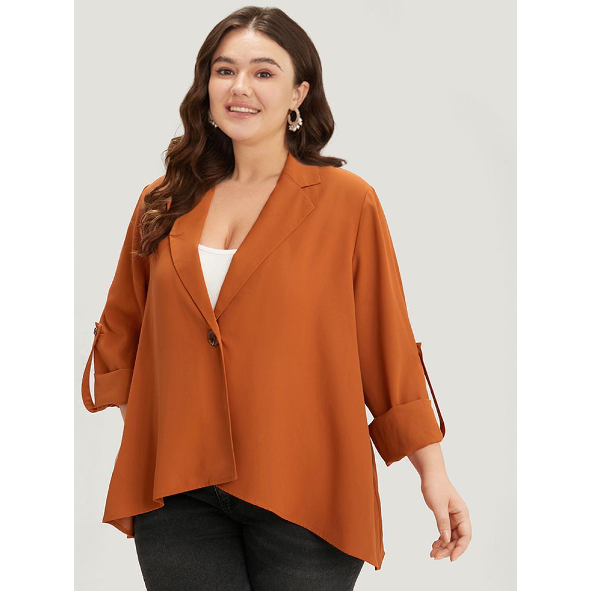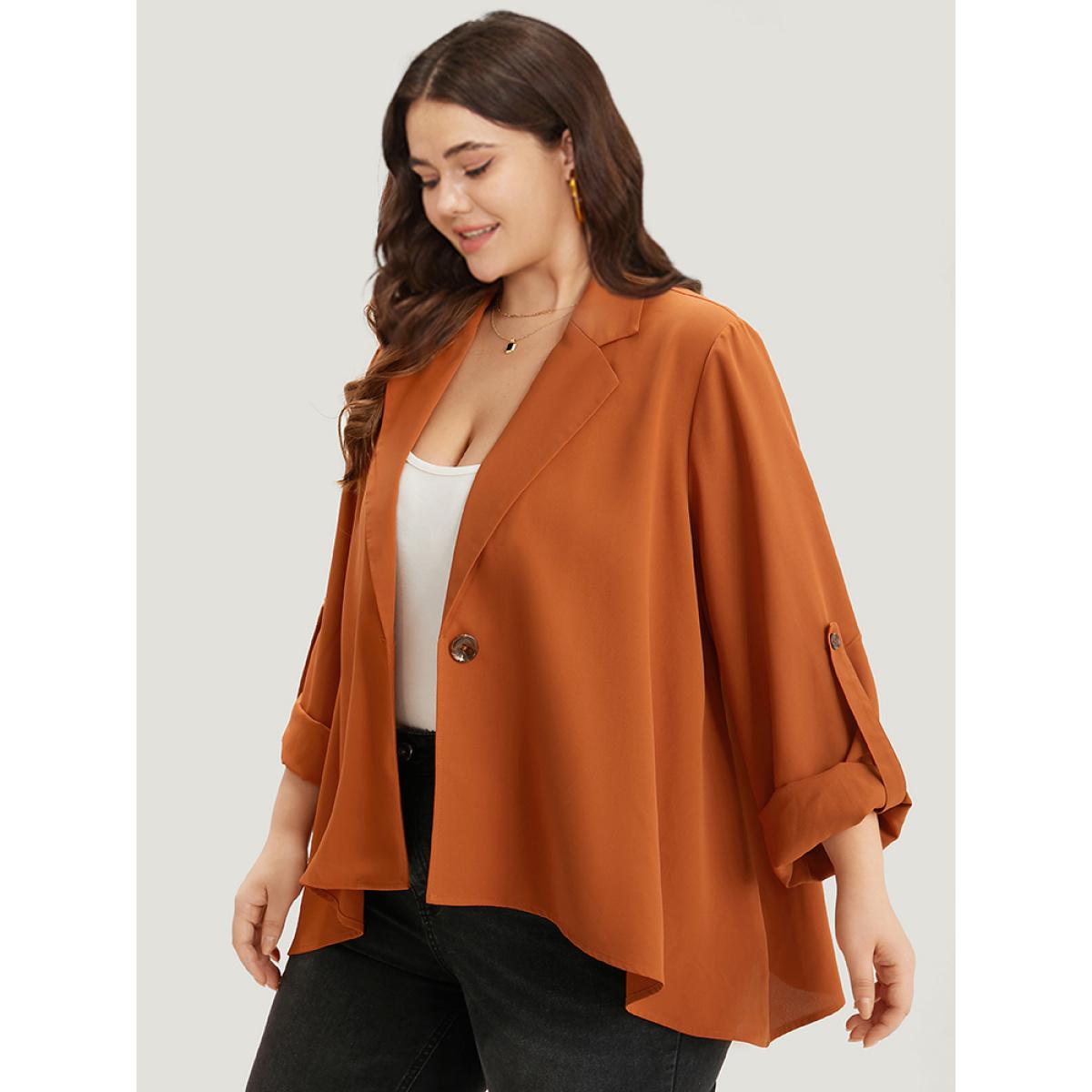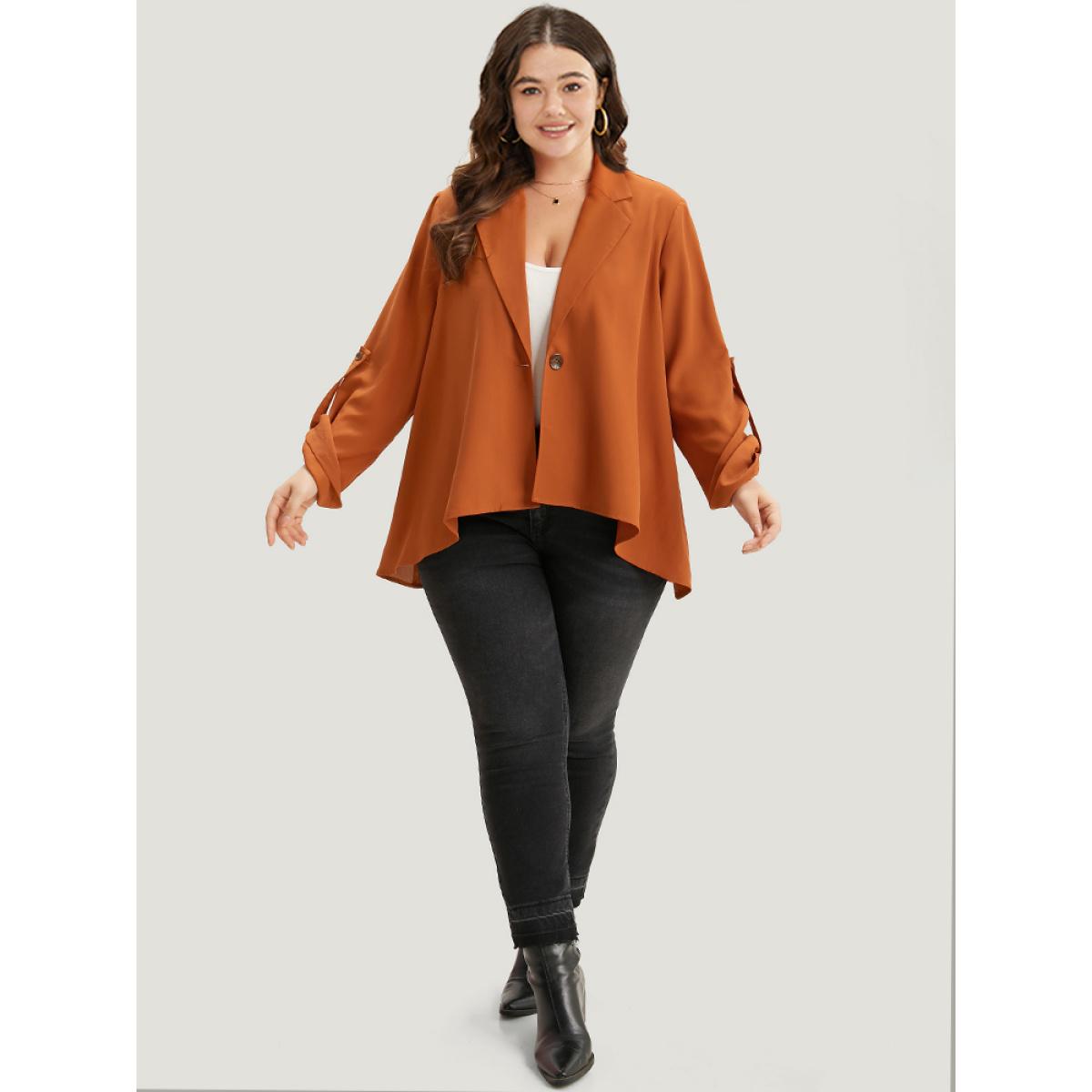 Plus Size Plain Button Up Tab Sleeve High Low Hem Blazer Chocolate Women Work Plain Drape Sleeve Long Sleeve Lapel Collar 22-24/3X At the Office Blazers BloomChic