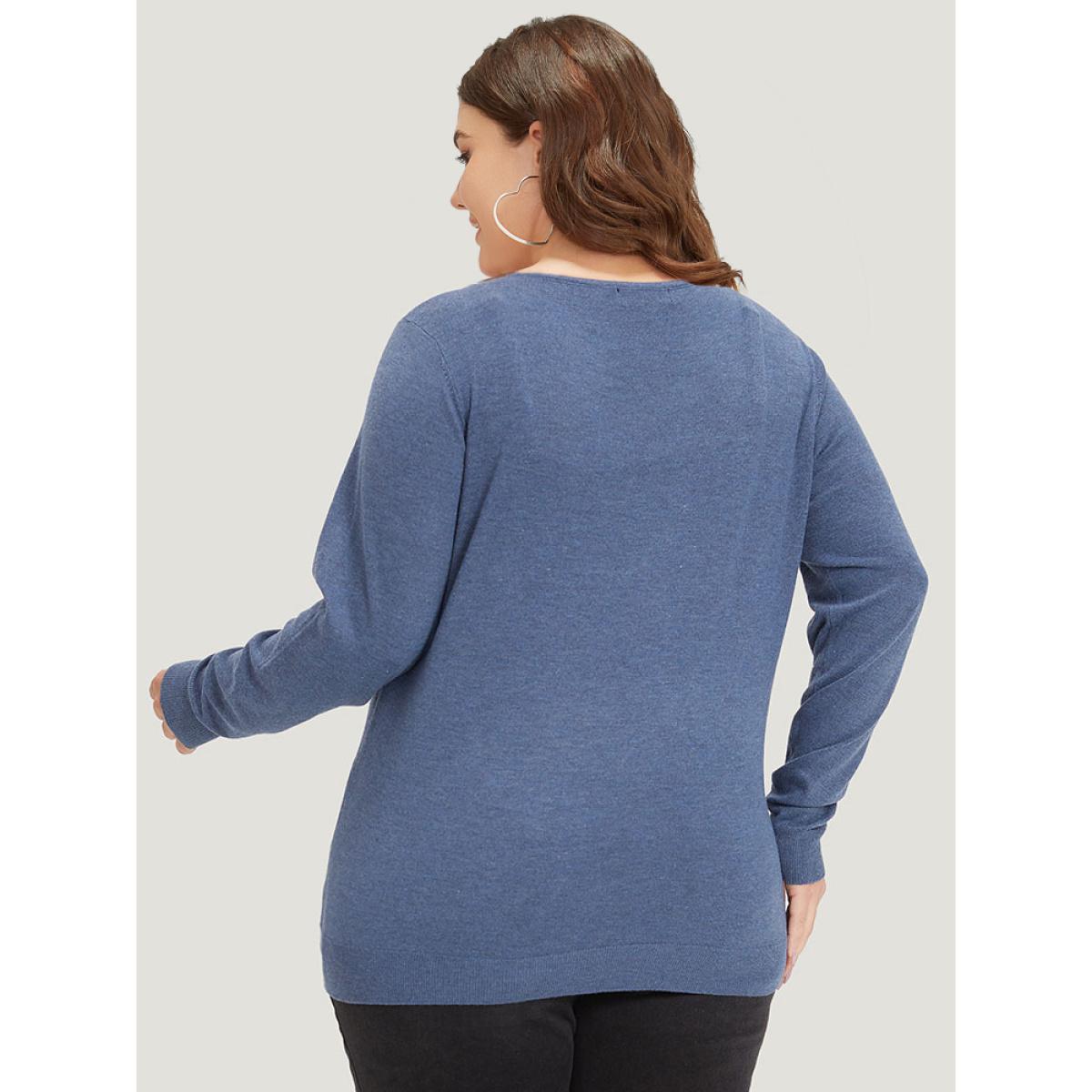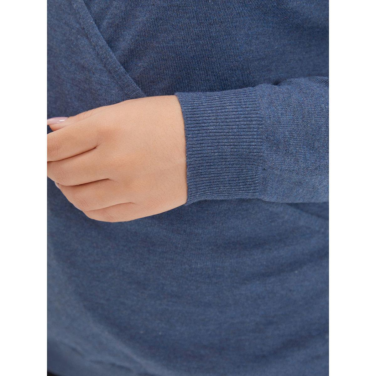 Plus Size Plain Textured Stitch Raglan Sleeve Sweatshirt Women DarkBlue Casual Plain V-neck Everyday Sweatshirts BloomChic 12/L