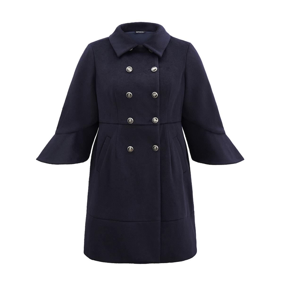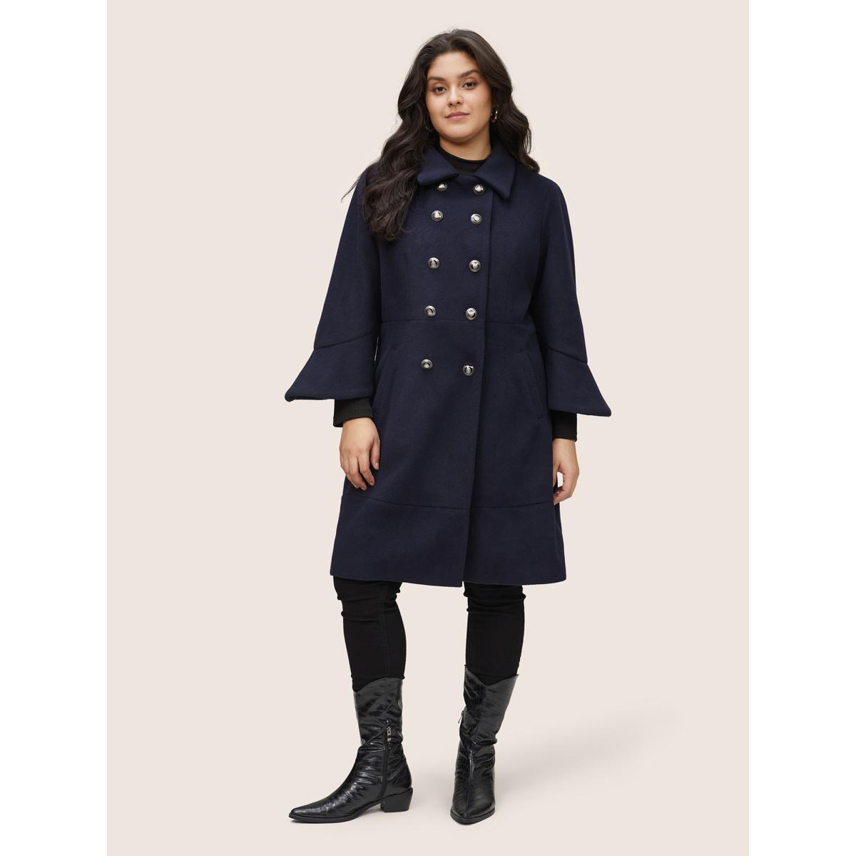 Plus Size Plain Double Breasted Asymmetrical Sleeve Coat Women Midnight Casual Lined Ladies Dailywear Winter Coats BloomChic 10/M