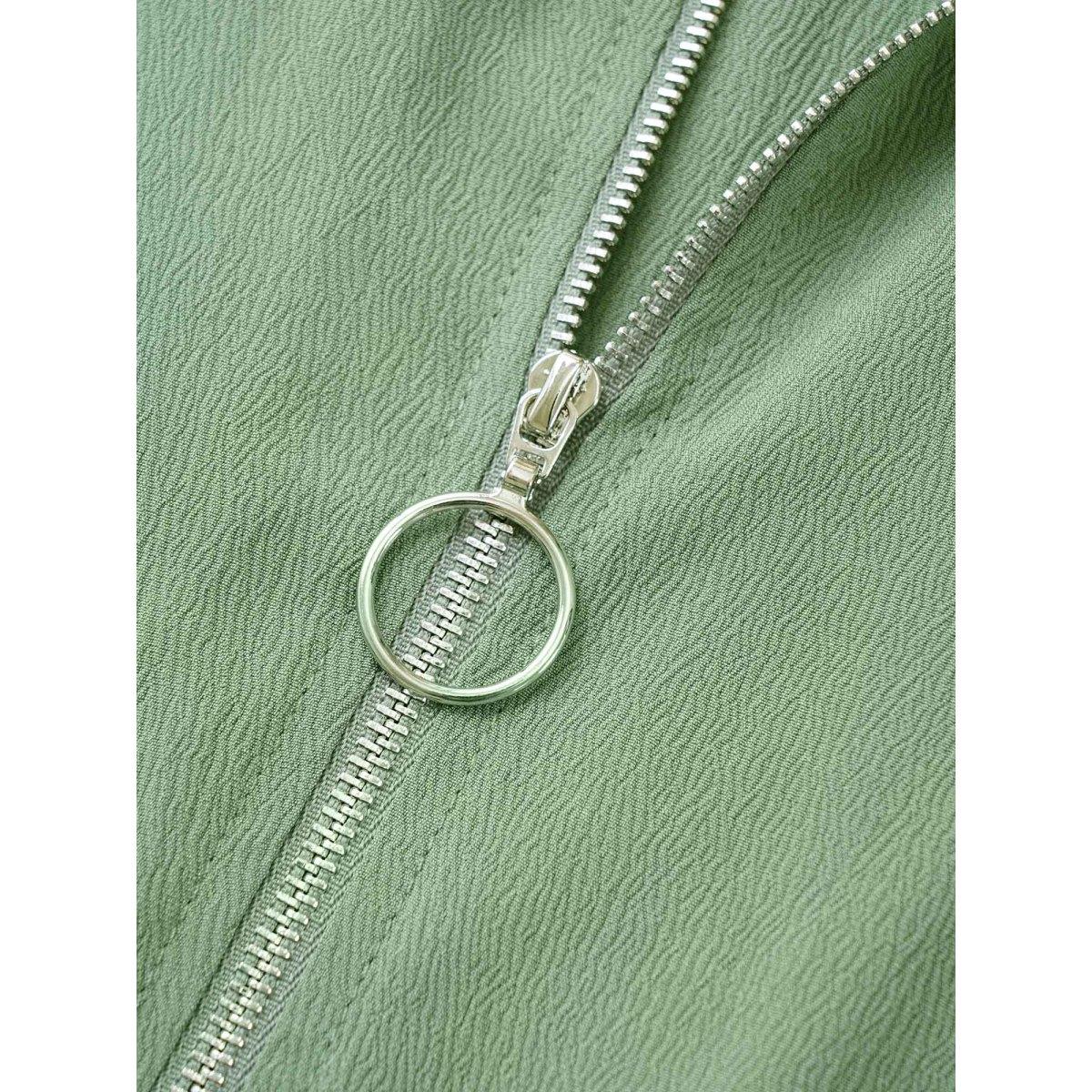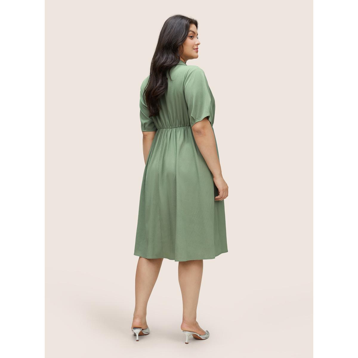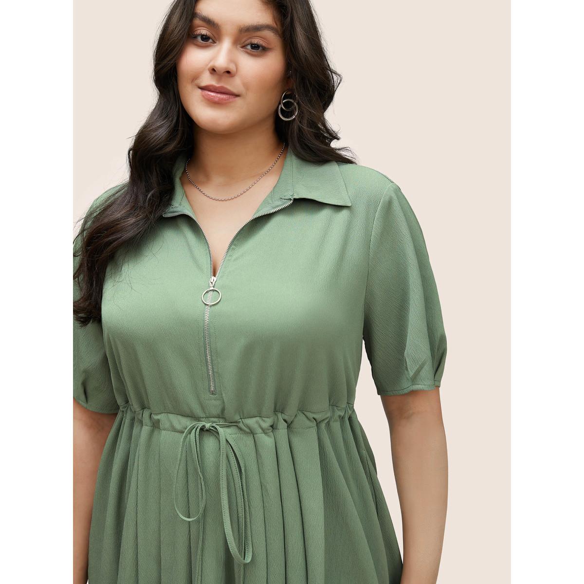 Plus Size Plain Drawstring Half Zip Pleated Dress Sage Women At the Office Non Lapel Collar Short sleeve Curvy Midi Dress BloomChic 18-20/2X