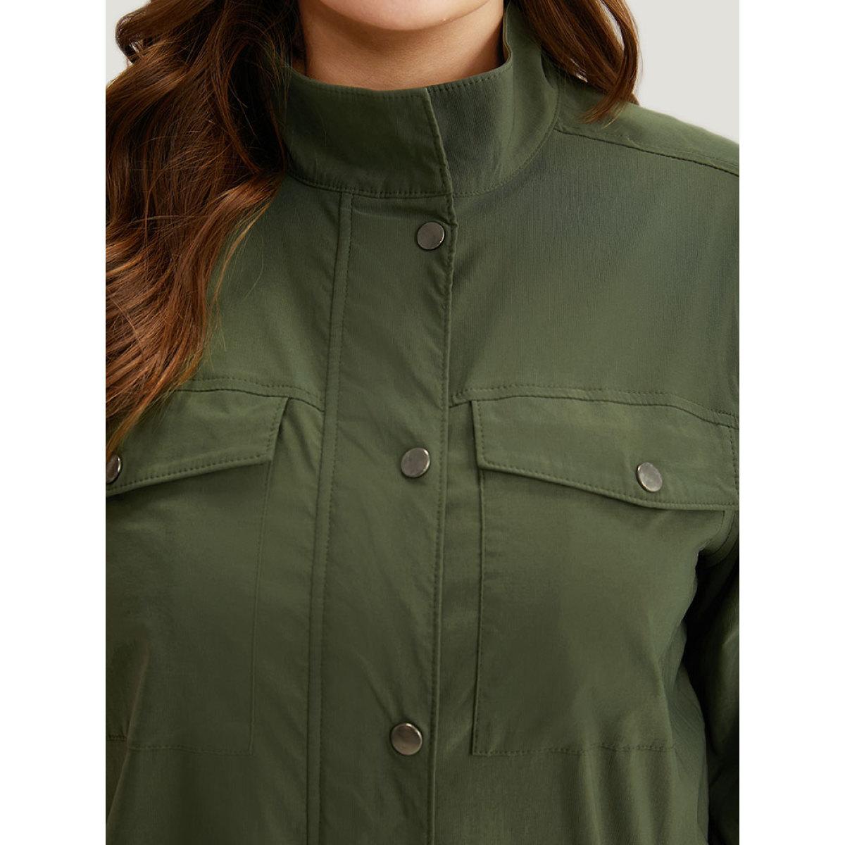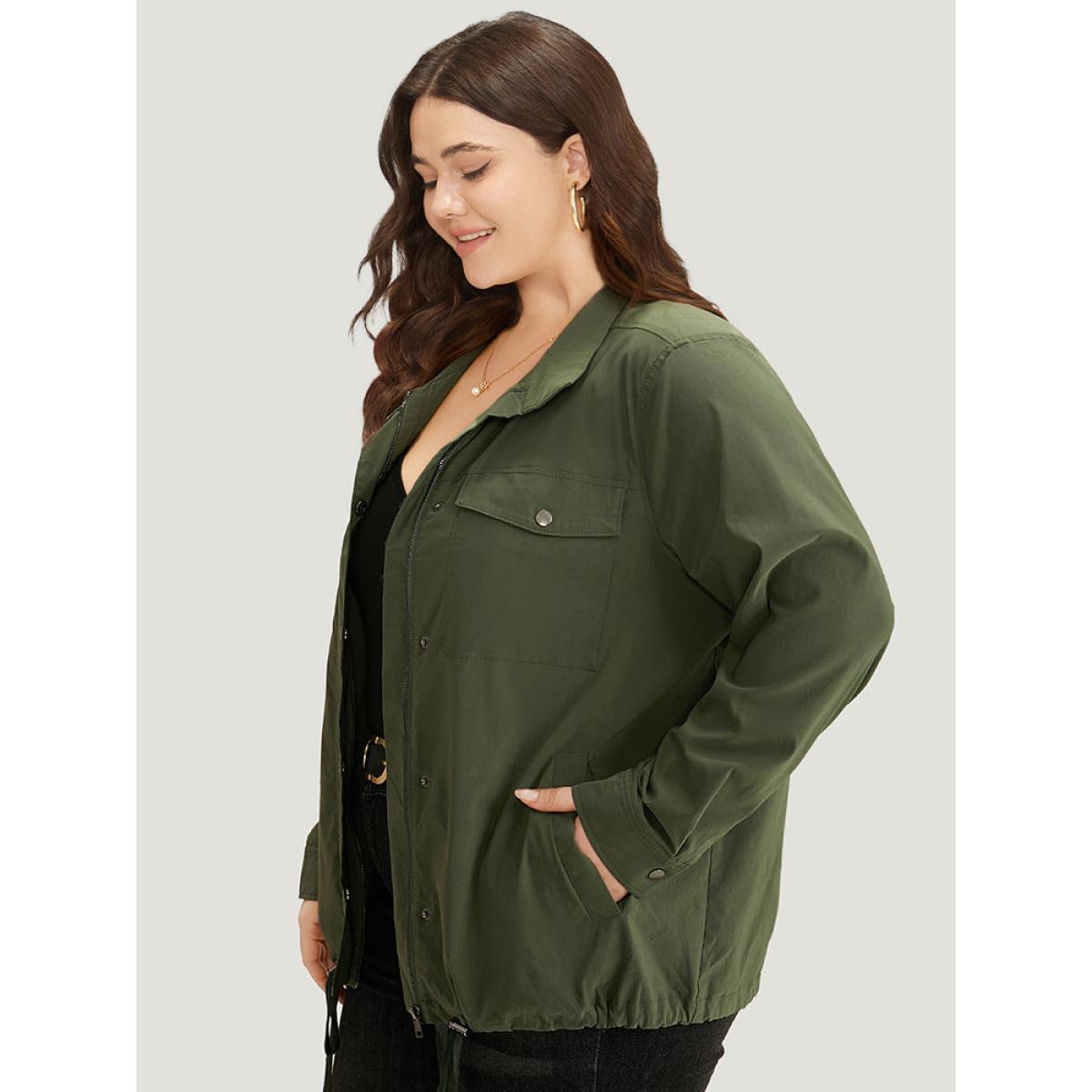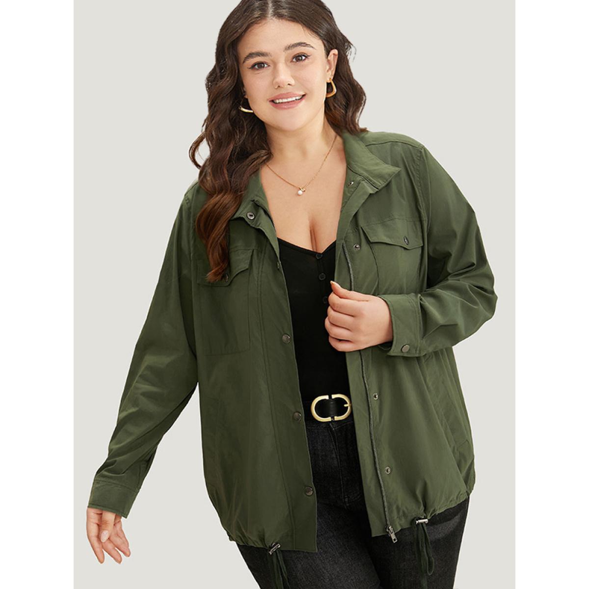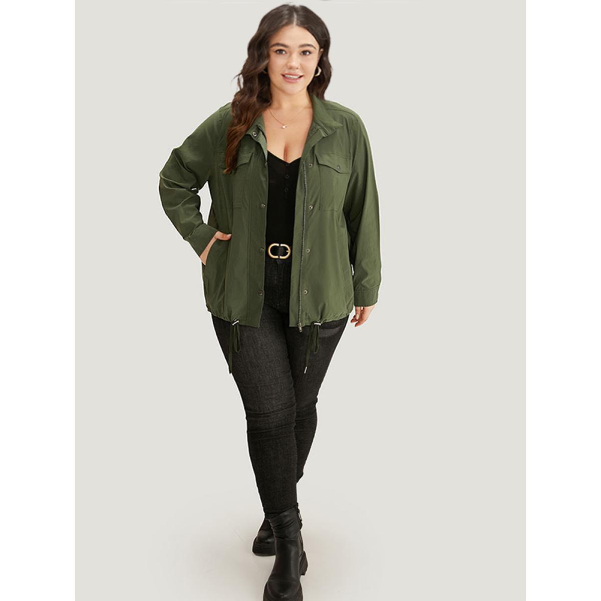 Plus Size Solid Flap Pocket Drawstring Jacket Women ArmyGreen Drawstring Side seam pocket Everyday Jackets BloomChic 26/4X