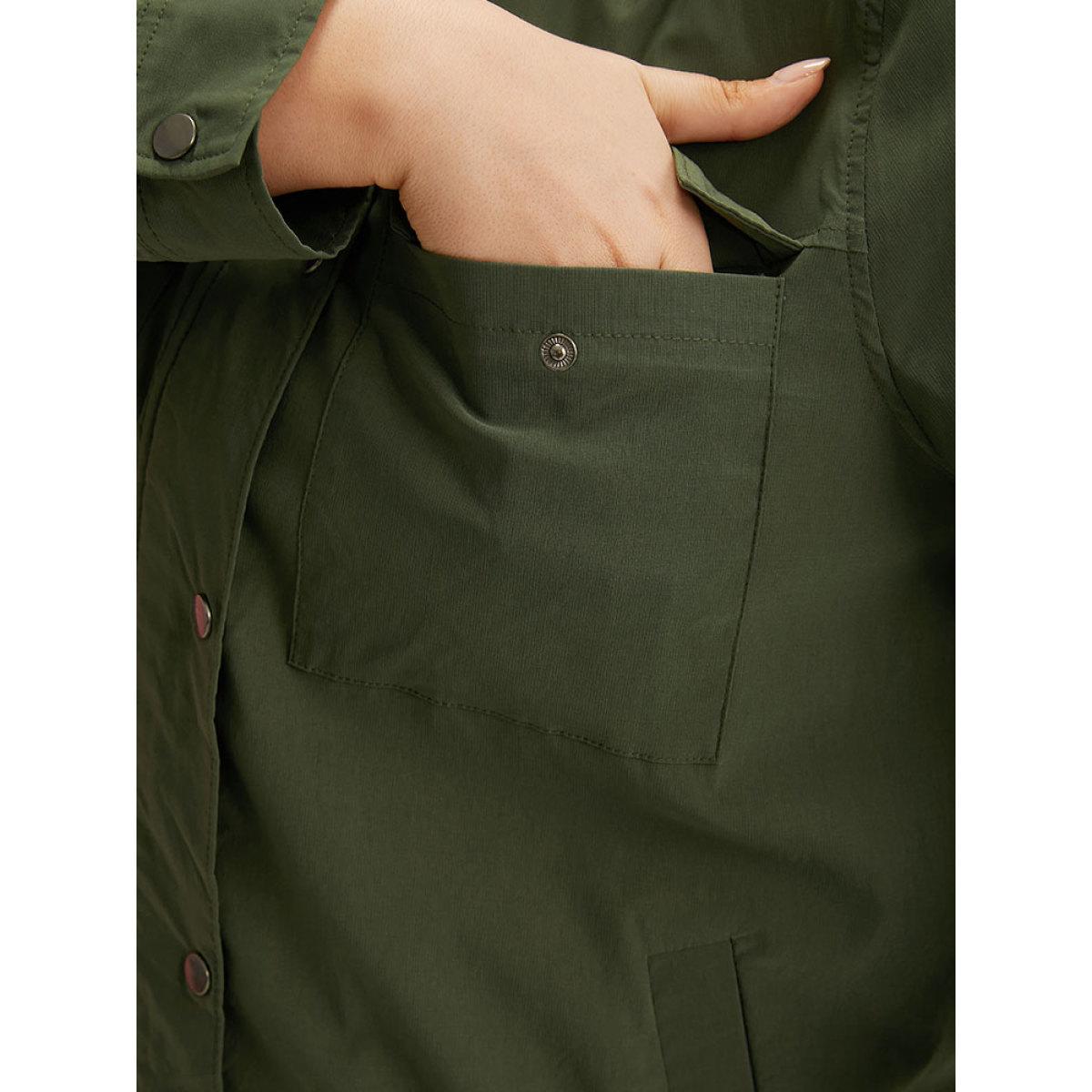Plus Size Plain Button Fly Pocket Drawstring Cuffed Sleeve Jacket Women Sage Casual Plain Ladies Dailywear Winter Coats BloomChic 22-24/3X