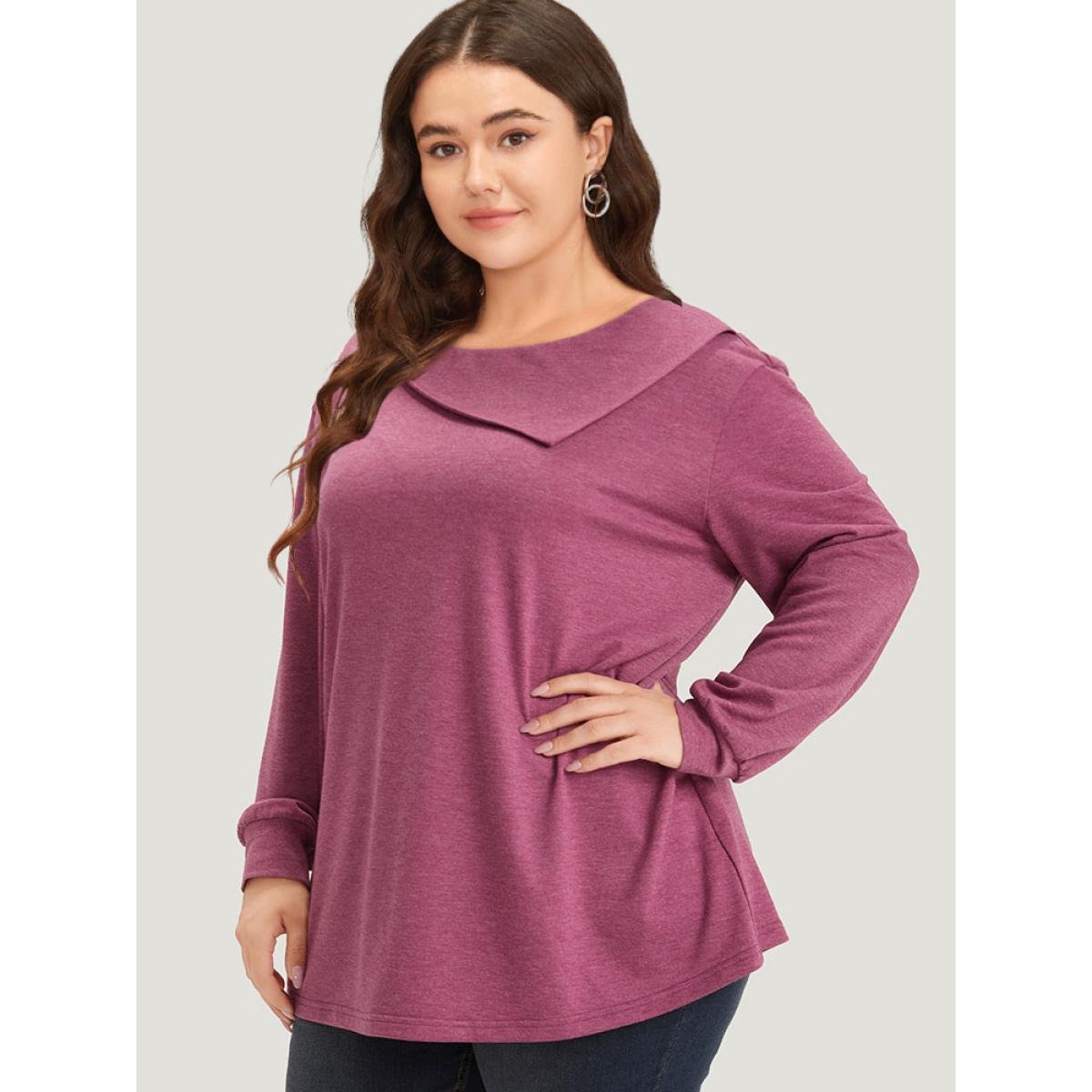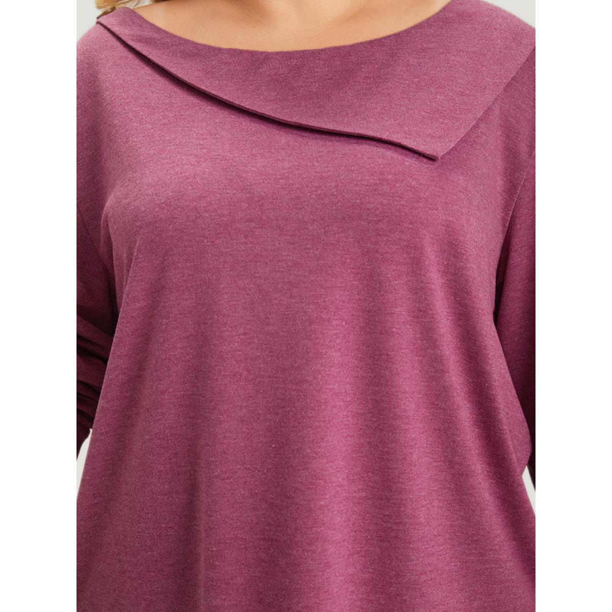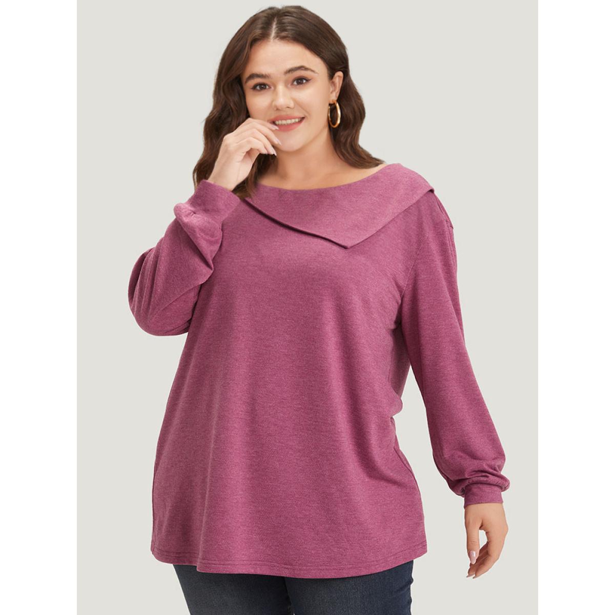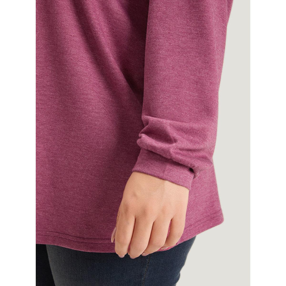 Plus Size Plain Elastic Cuffs Button Detail Asymmetrical Neck Sweatshirt Women RedViolet Elegant Elastic cuffs Round Neck Dailywear Sweatshirts BloomChic 26/4X