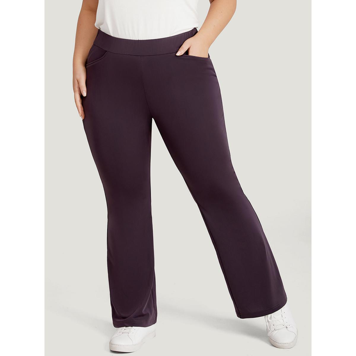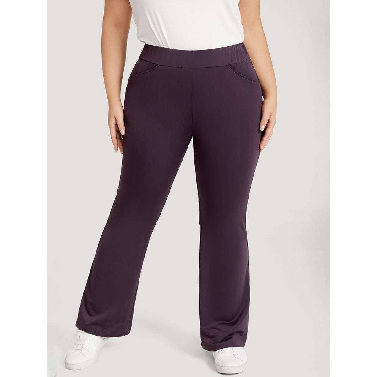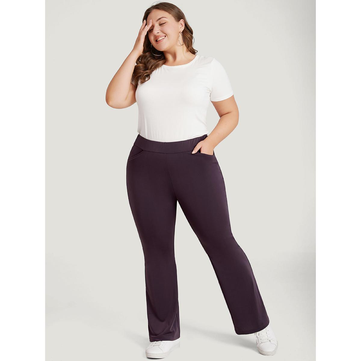 Plus Size Plain Elastic Waist Bootcut Slant Pocket Leggings Women Eggplant Casual High stretch Bodycon High Rise Dailywear Leggings BloomChic 28/5X
