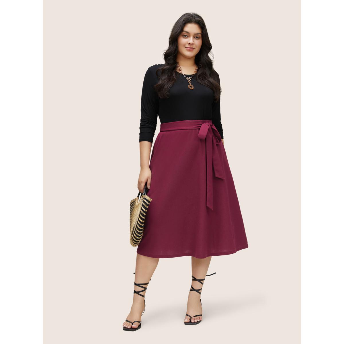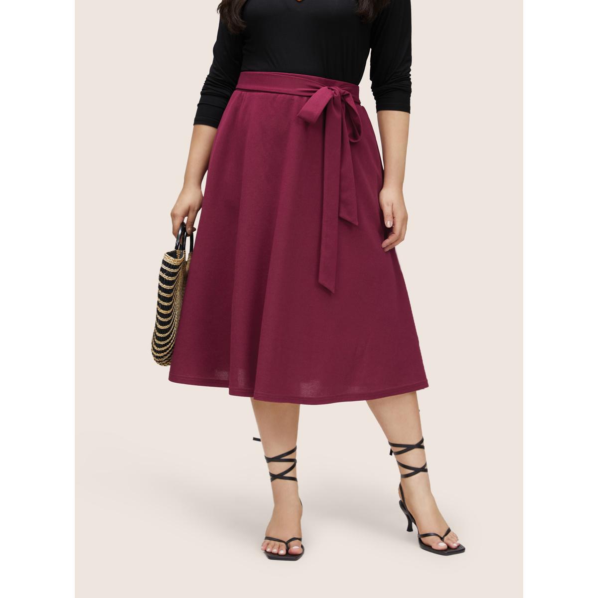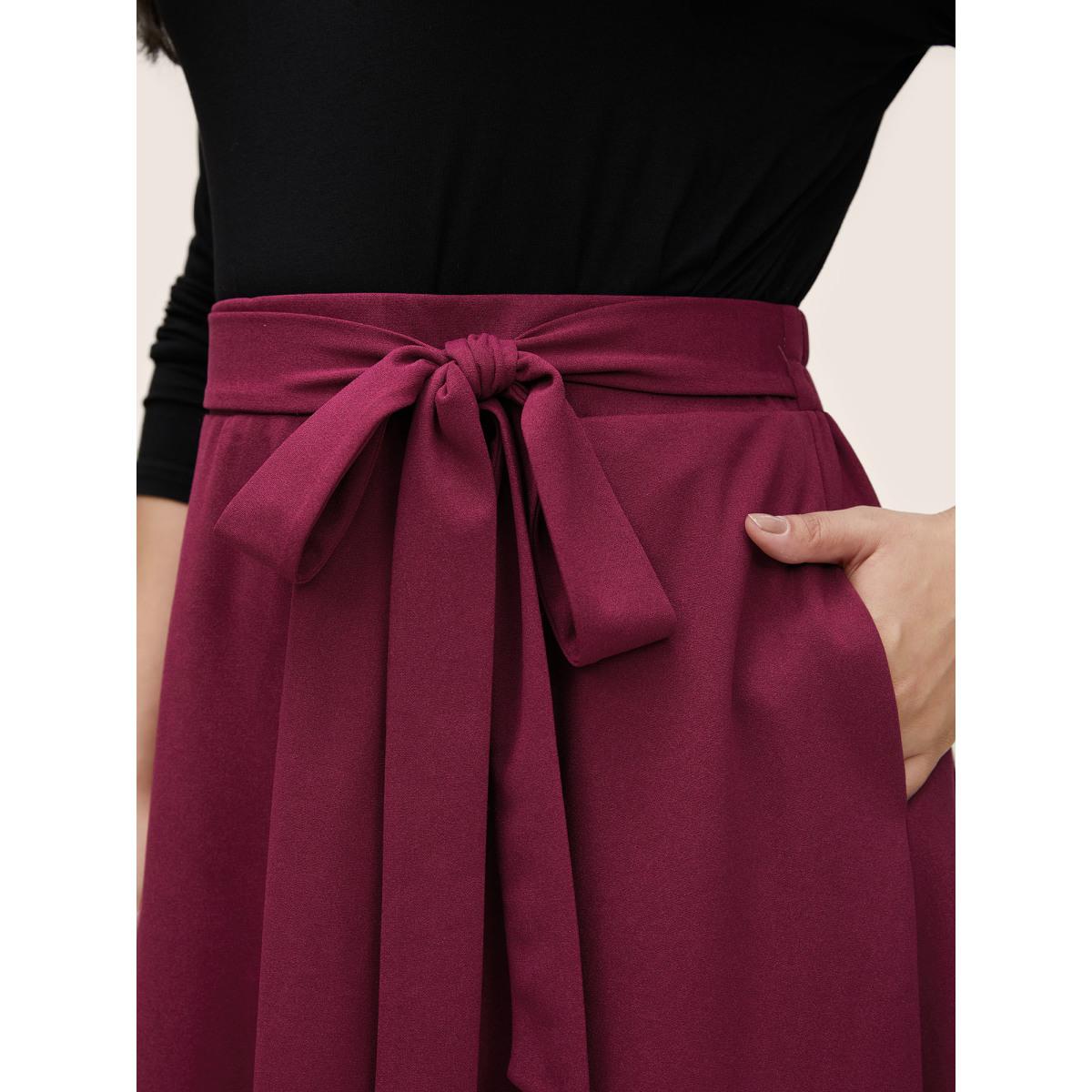 Plus Size Plain Elastic Waist Pocket Ties Cropped Skirt Women RedViolet Workwear Essentials Belted No stretch Slanted pocket Belt Work Skirts BloomChic 18-20/2X