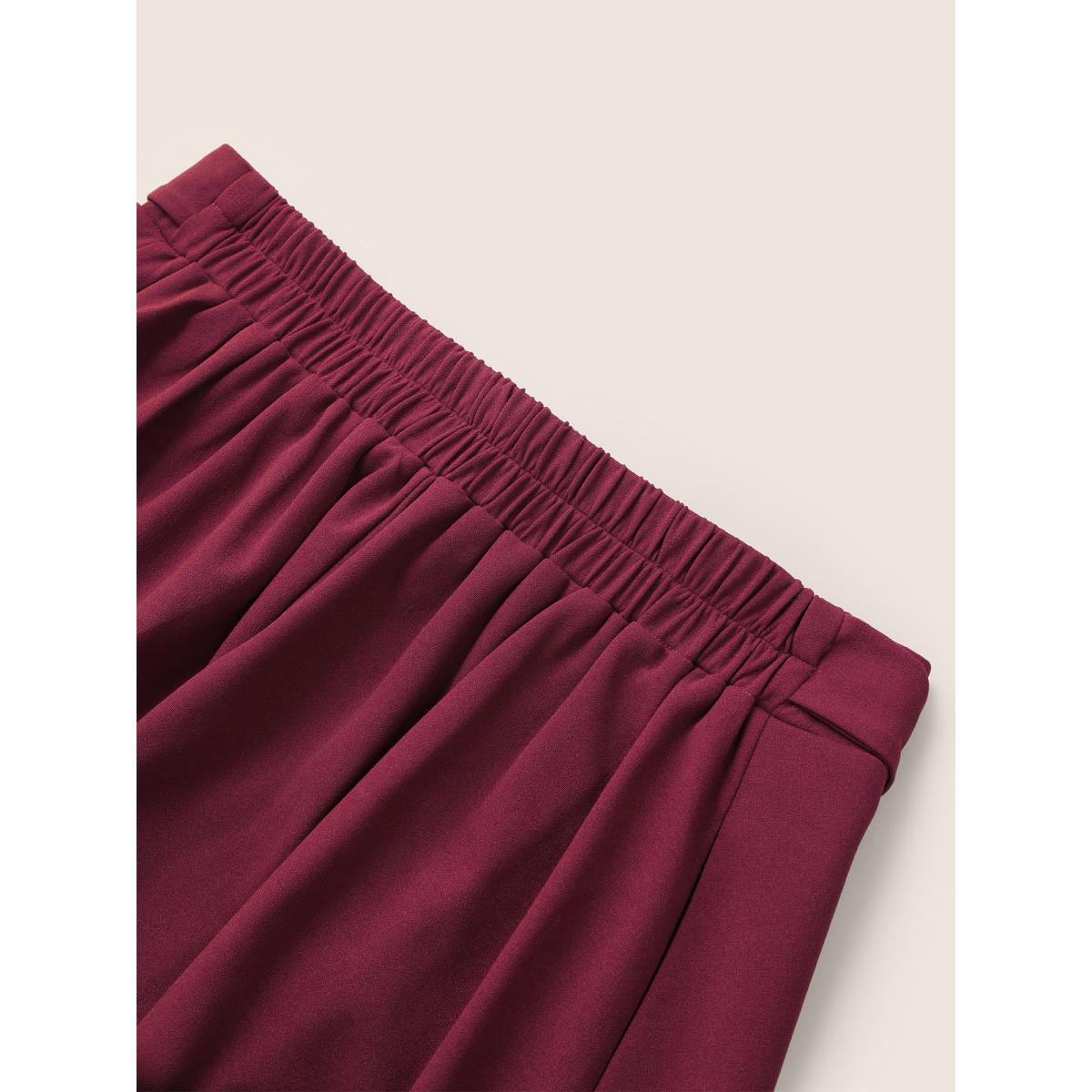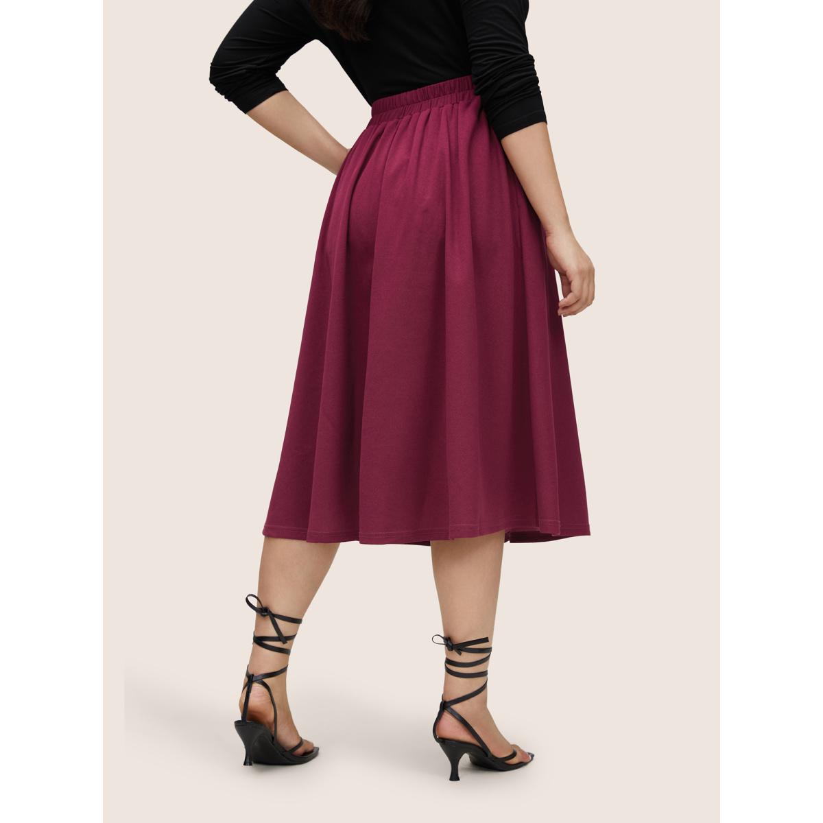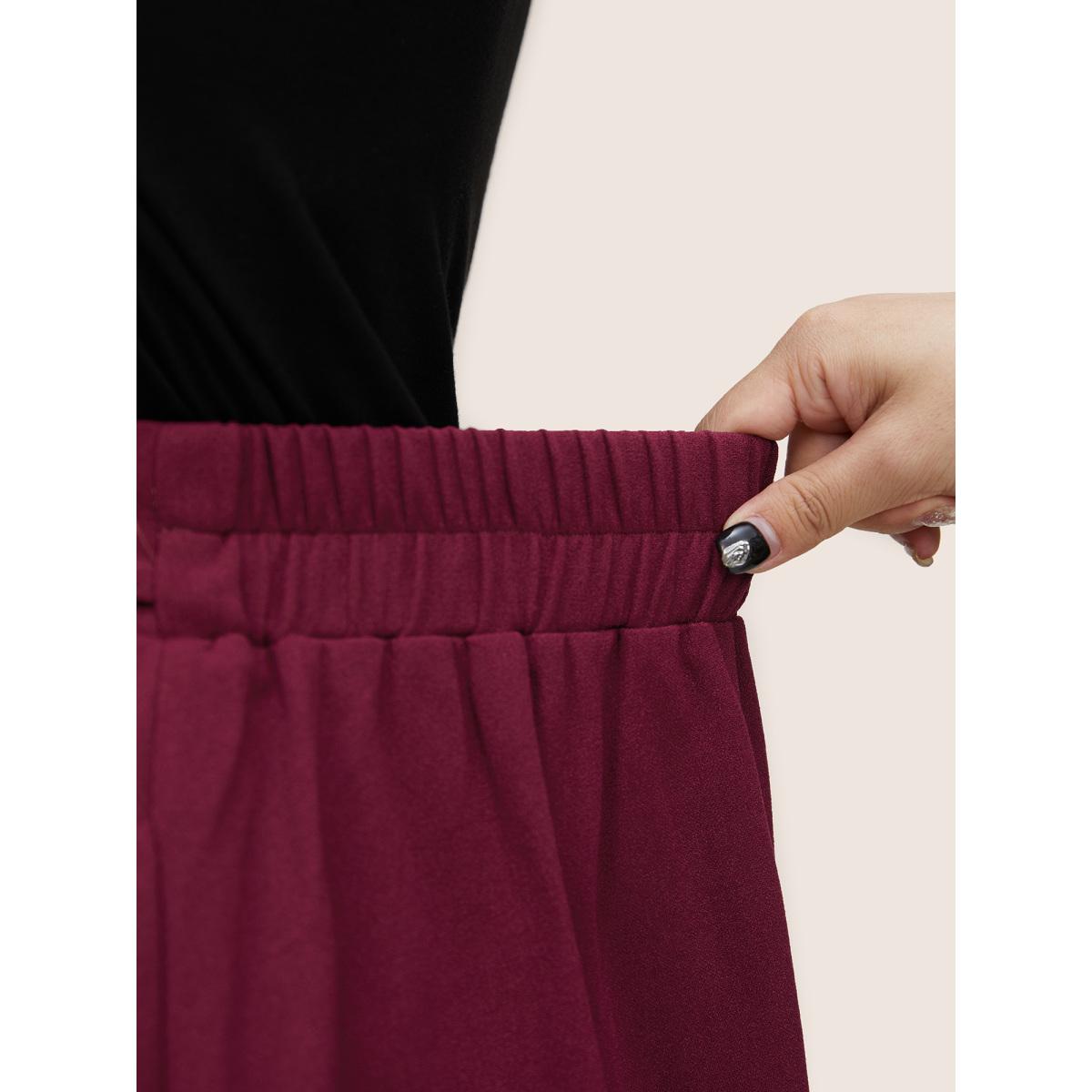 Plus Size Plain Elastic Waist Pocket Ties Cropped Skirt Women RedViolet Workwear Essentials Belted No stretch Slanted pocket Belt Work Skirts BloomChic 18-20/2X