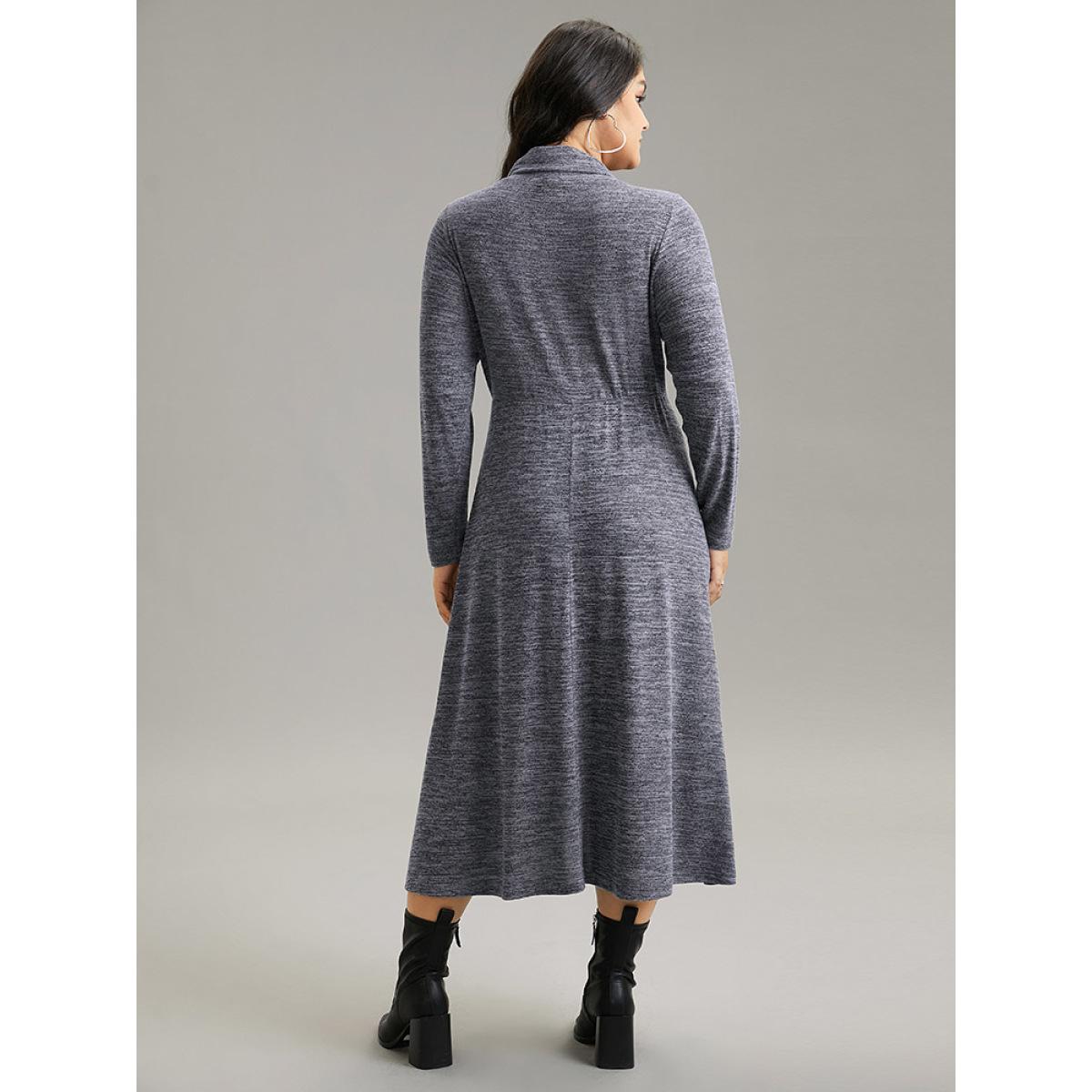 Plus Size Plain Funnel Neck Heather Arc Hem Dress Midnight Women Casual Plain Turtleneck Long Sleeve Curvy Midi Dress BloomChic 14-16/1X Product Image