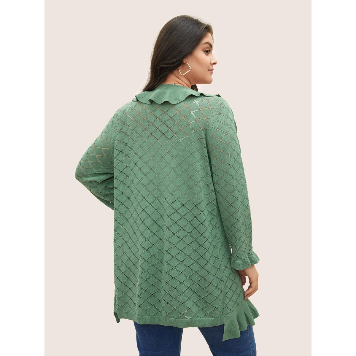 Plus Size Plain Geometric Cut Out Ruffles Ties Cardigan Emerald Women Everyday Elegant Cover Ups Bloomchic 18-20/2X Product Image