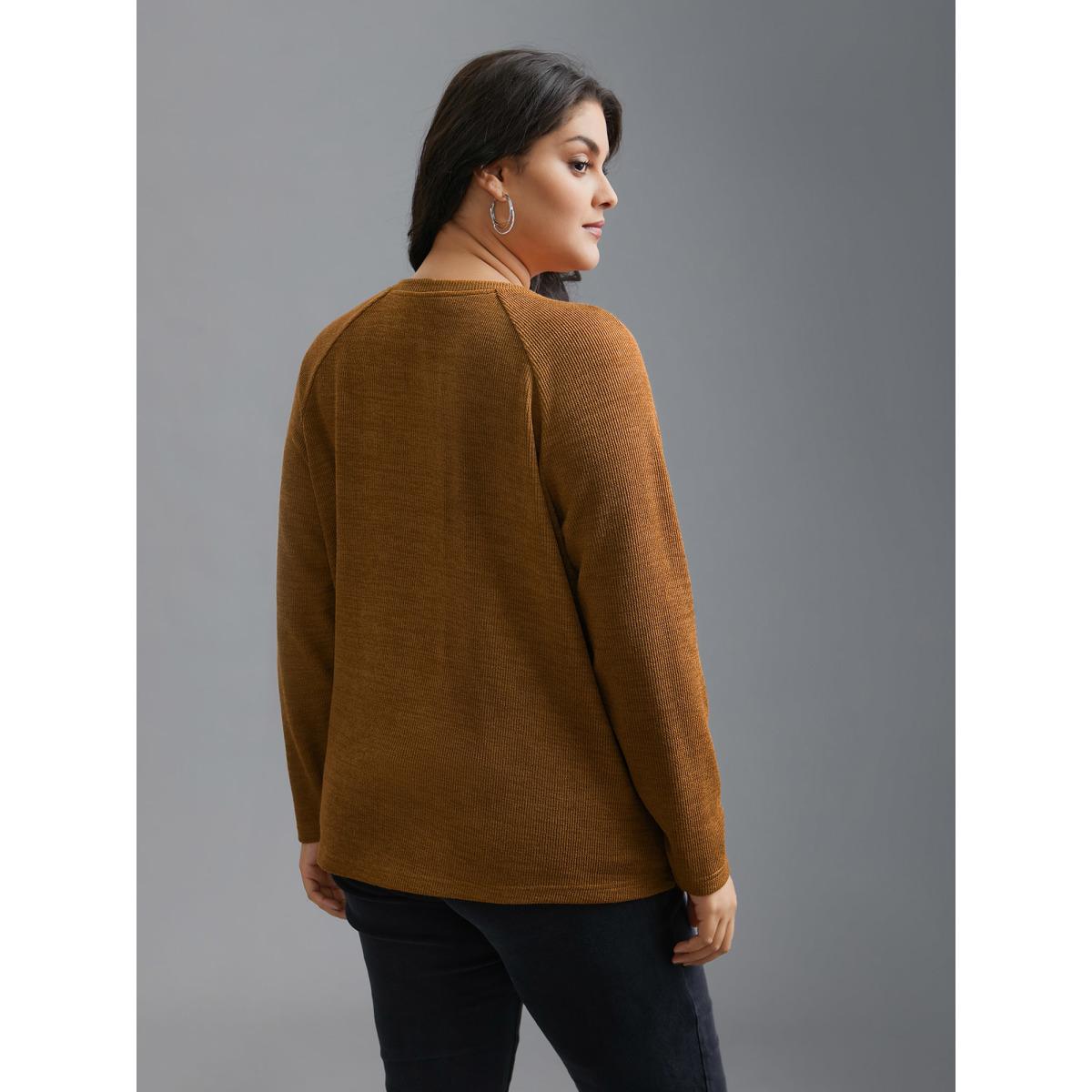 Plus Size Plain Textured Raglan Sleeve Sweatshirt Women Beige Casual Texture Loose Round Neck Everyday Sweatshirts BloomChic 26/4X