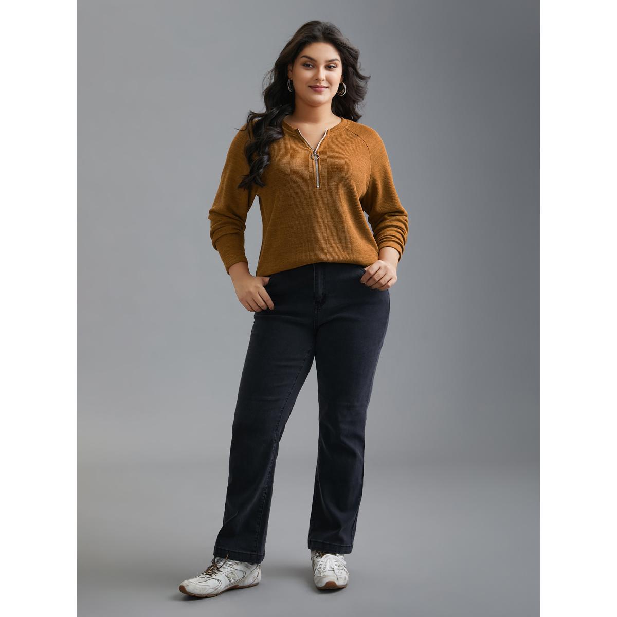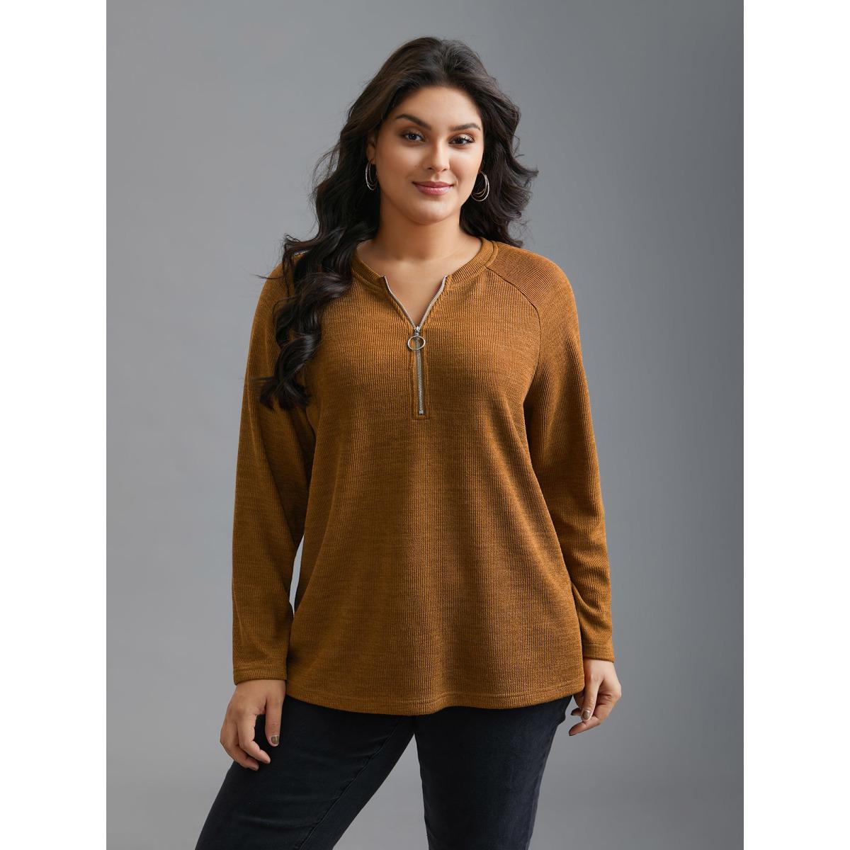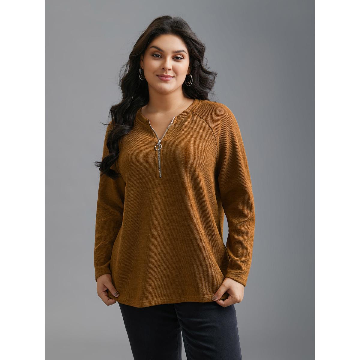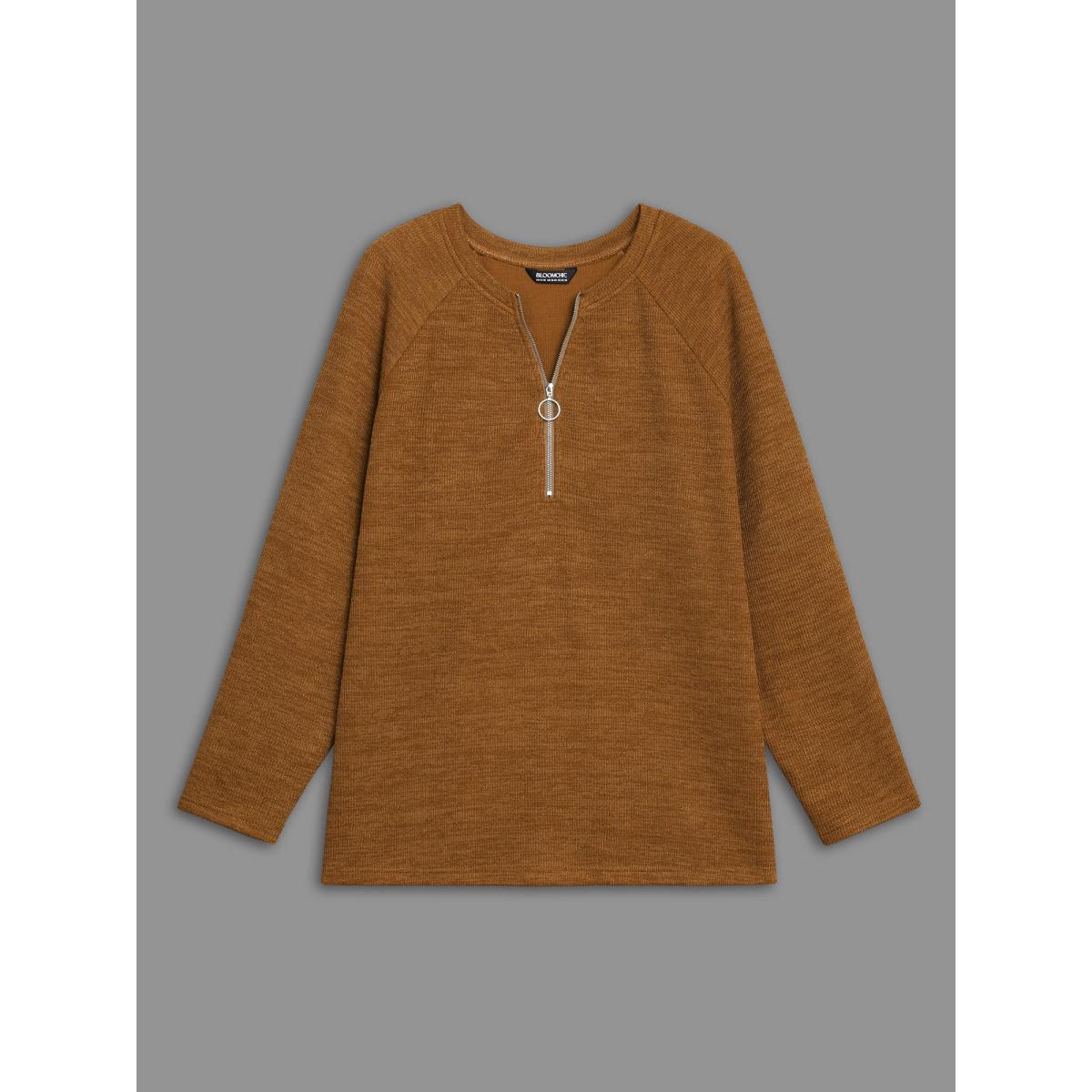 Plus Size Plain Half Zip Plisse Sweatshirt Women Mustardyellow Casual Texture Round Neck Everyday Sweatshirts BloomChic 28/5X Product Image