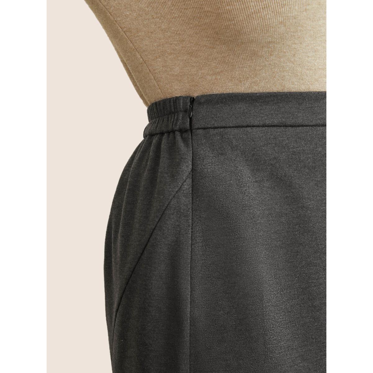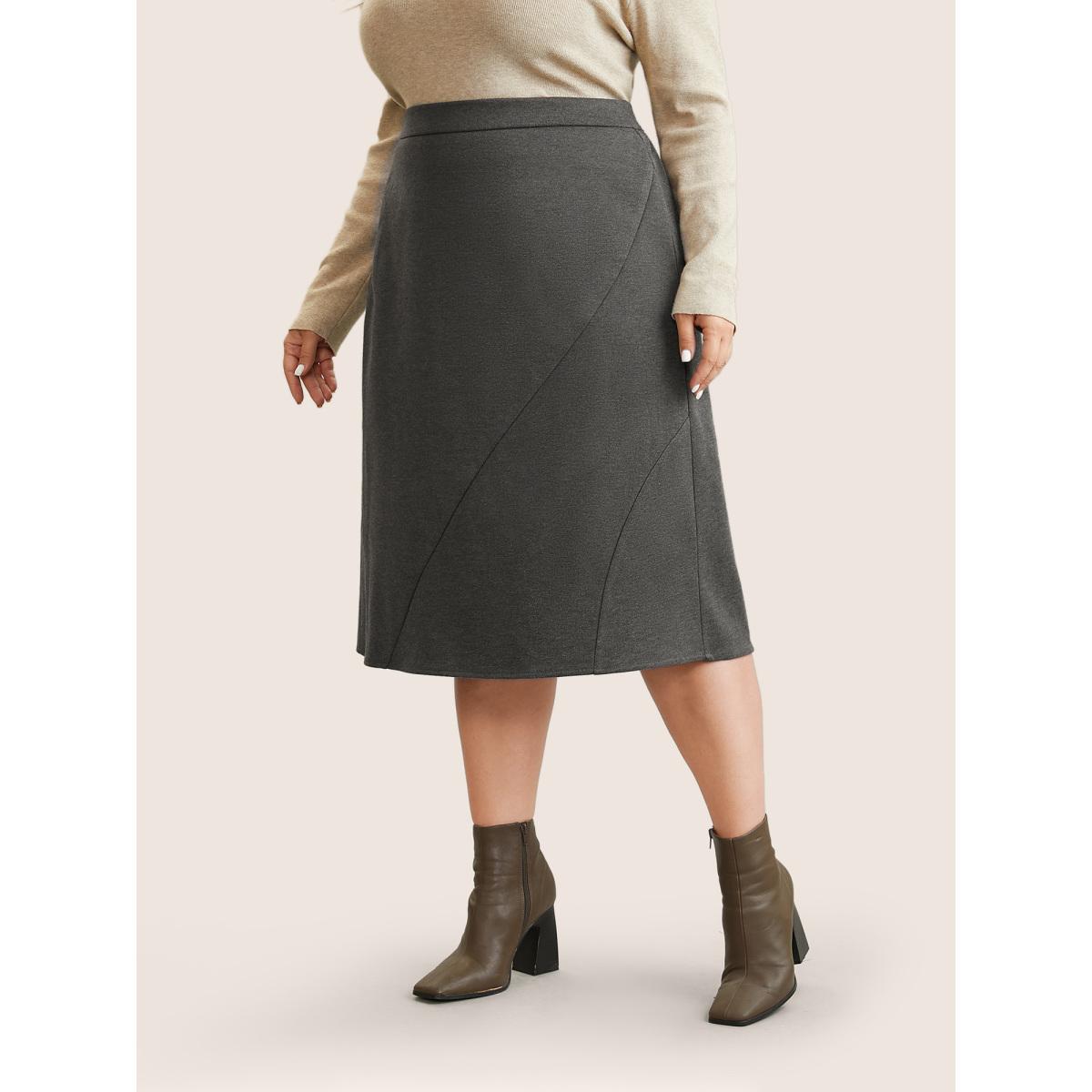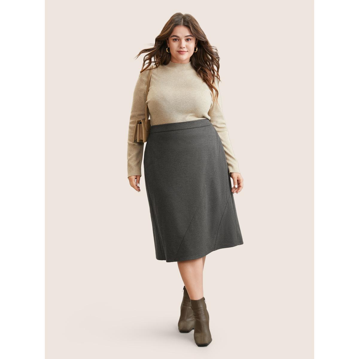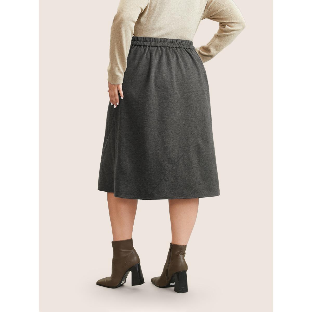 Plus Size Plain Heather Brushed Elastic Waist A Line Skirt Women DimGray Office A-line Low stretch Work Skirts BloomChic 18-20/2X
