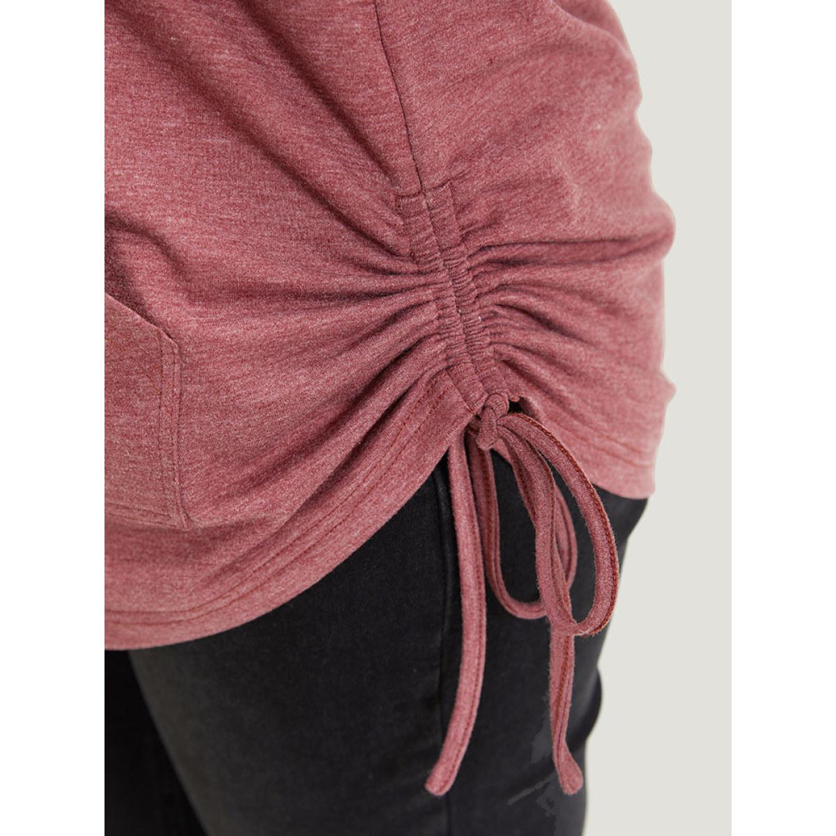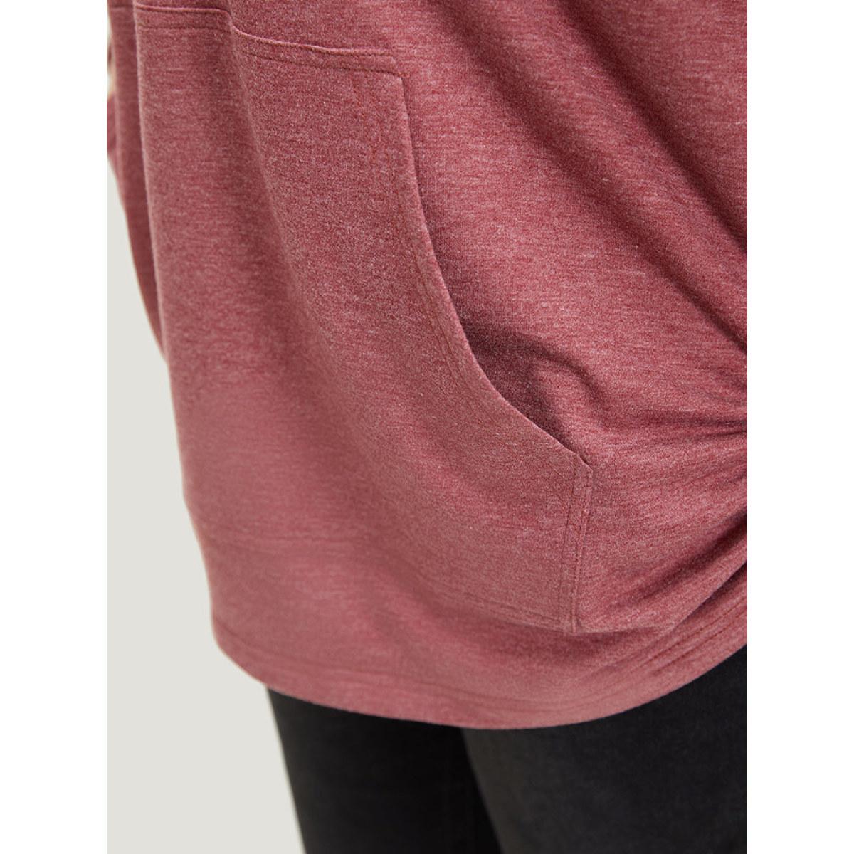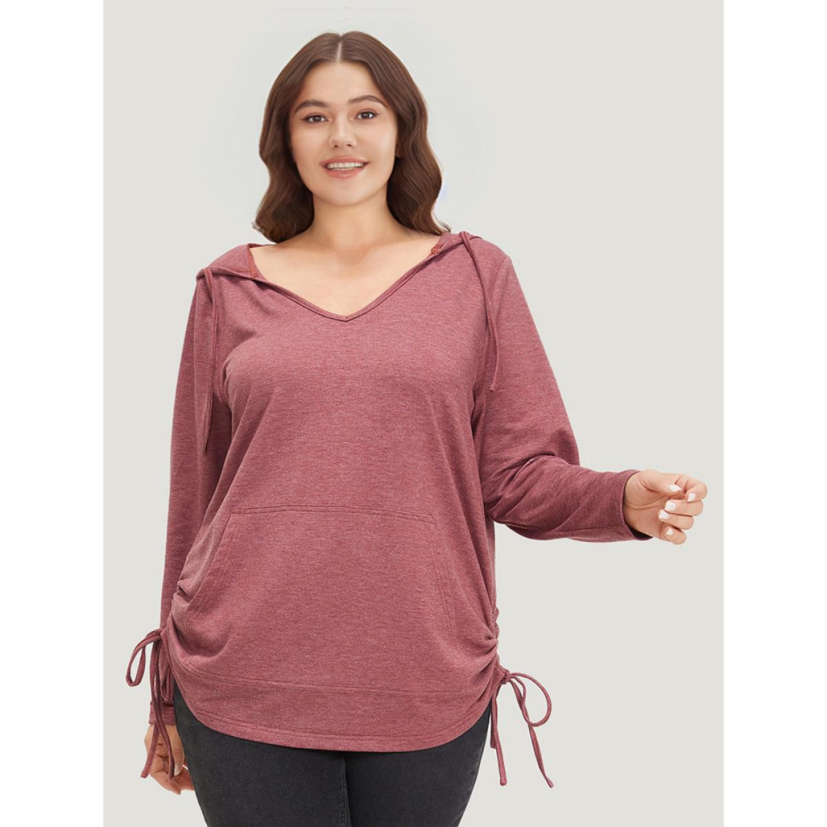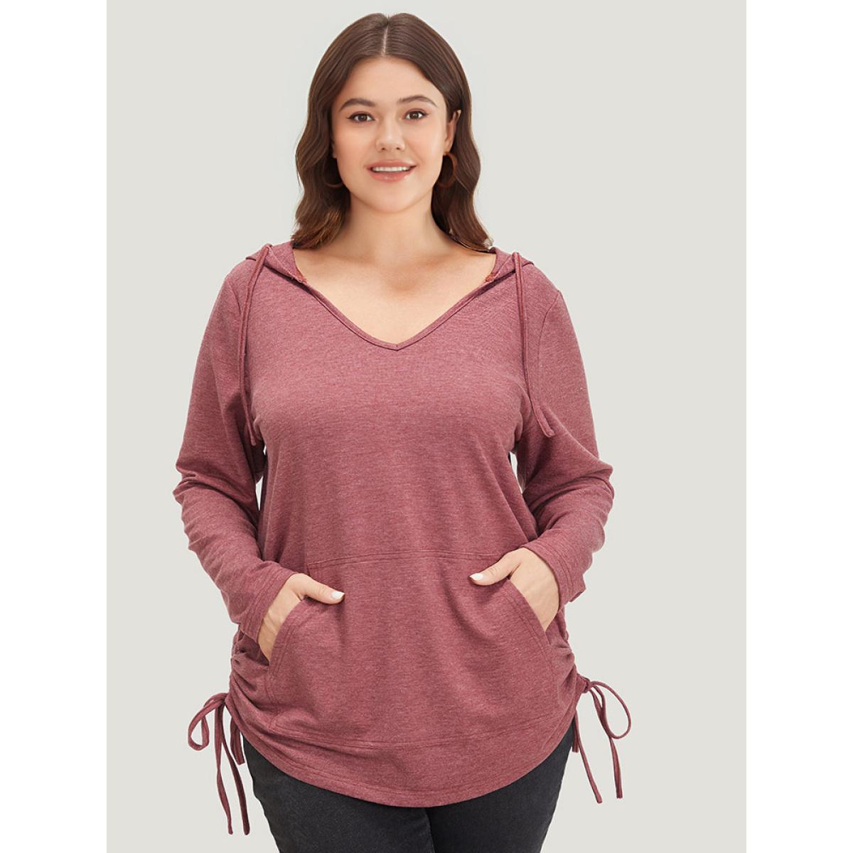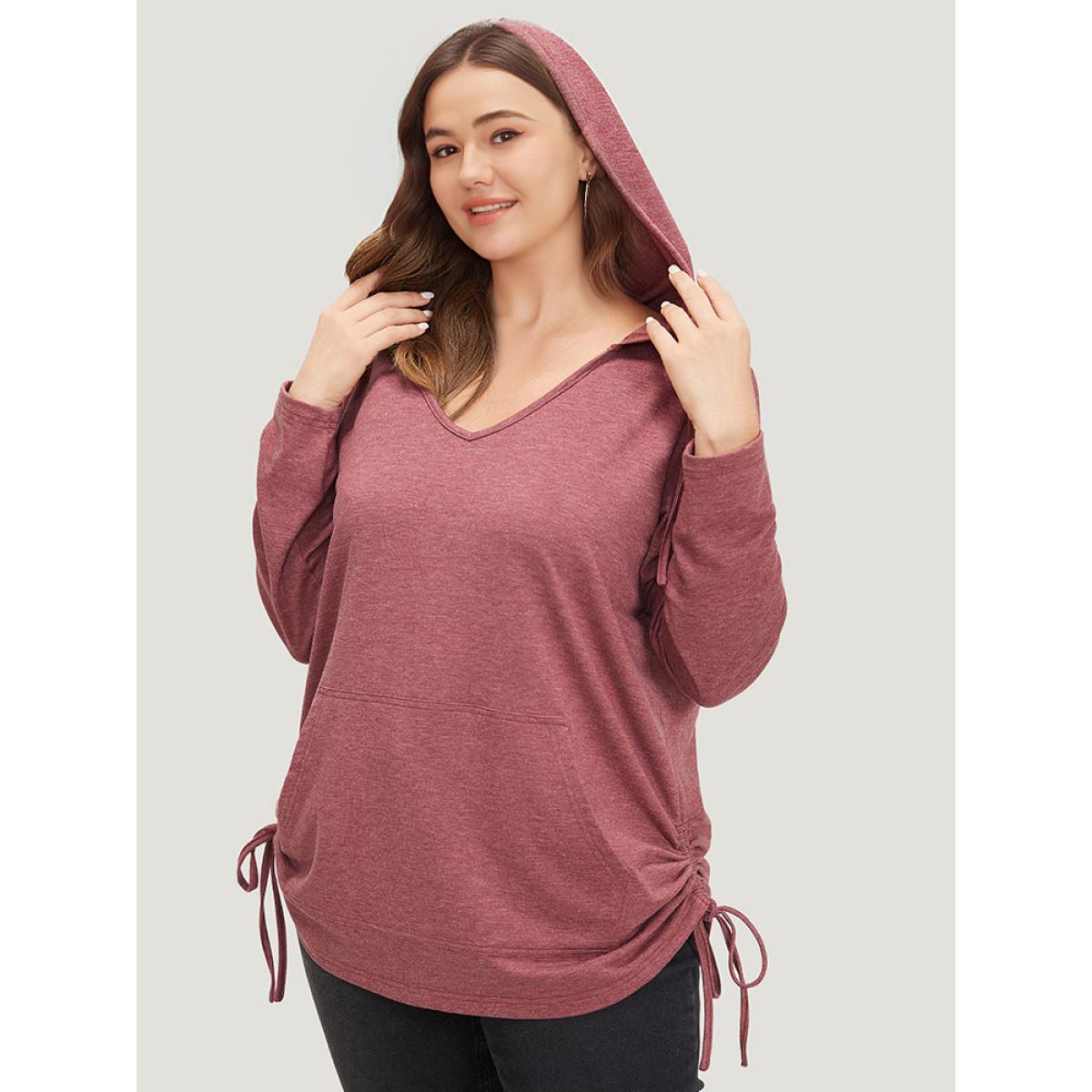 Plus Size Plain Heather Pocket Drawstring Hooded Sweatshirt Women Russet Elegant V-neck Dailywear Sweatshirts BloomChic 22-24/3X