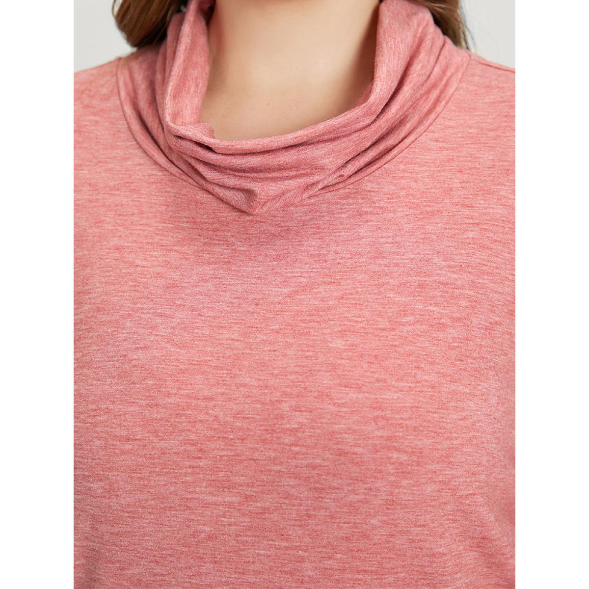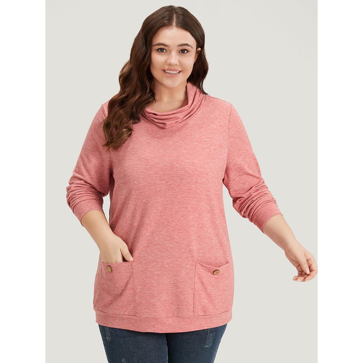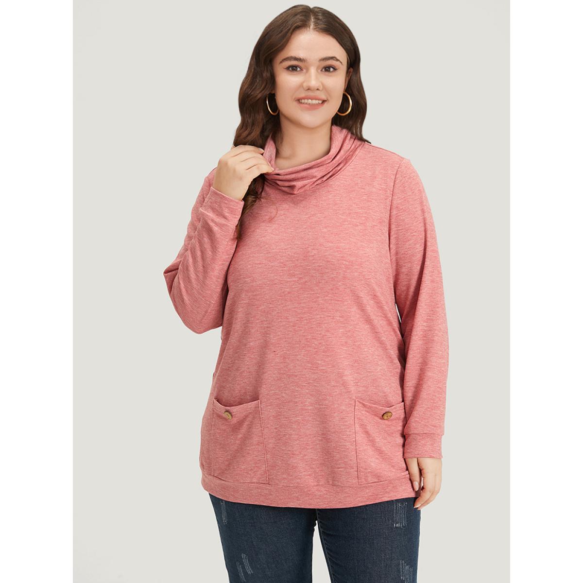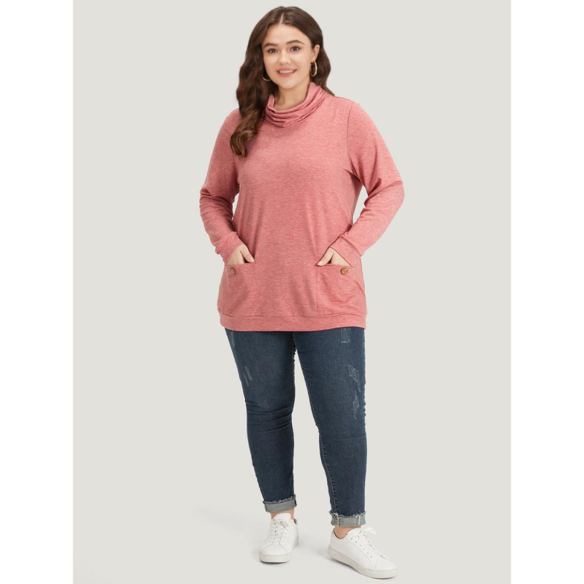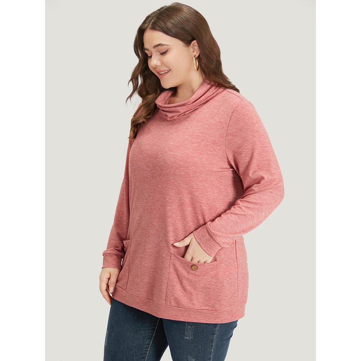 Plus Size Plain Heather Turtleneck Pocket Button Detail Sweatshirt Women Russet Casual Printed Turtleneck Dailywear Sweatshirts BloomChic 22-24/3X