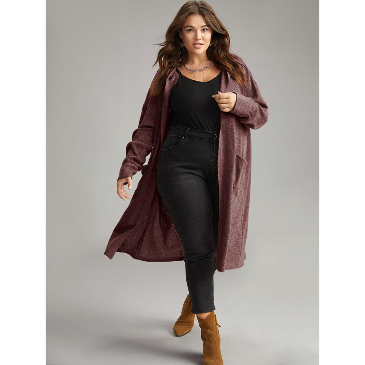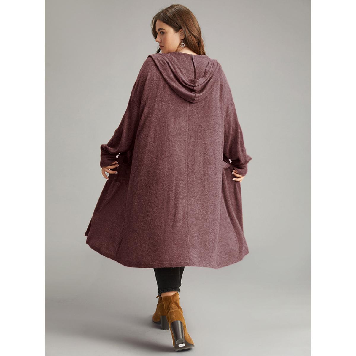 Plus Size Plain Hooded Pocket Open Front Kimono Women Eggplant Casual Texture Pocket Dailywear Kimonos BloomChic 30/6X