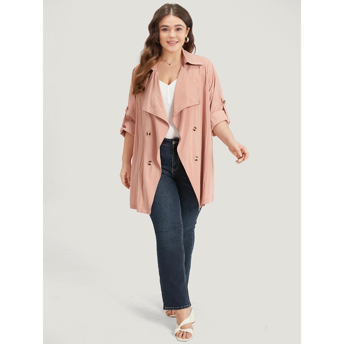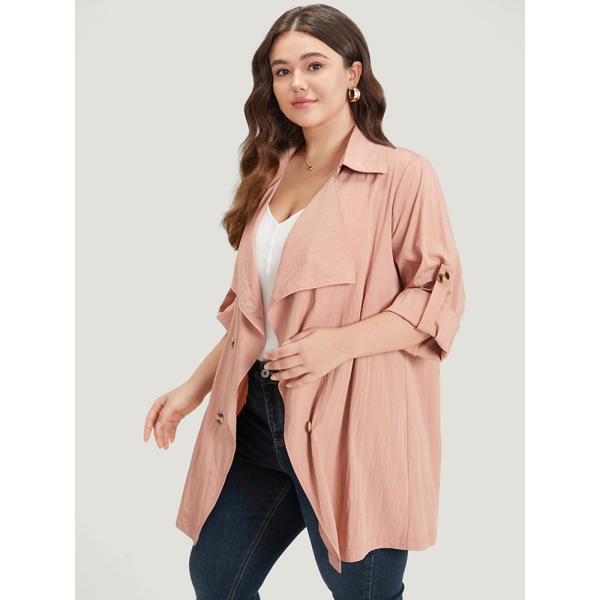 Plus Size Plain Lapel Collar Asymmetrical Tab Sleeve Coat Women Rouge Casual Plain Loose Ladies Dailywear Winter Coats BloomChic 12/L