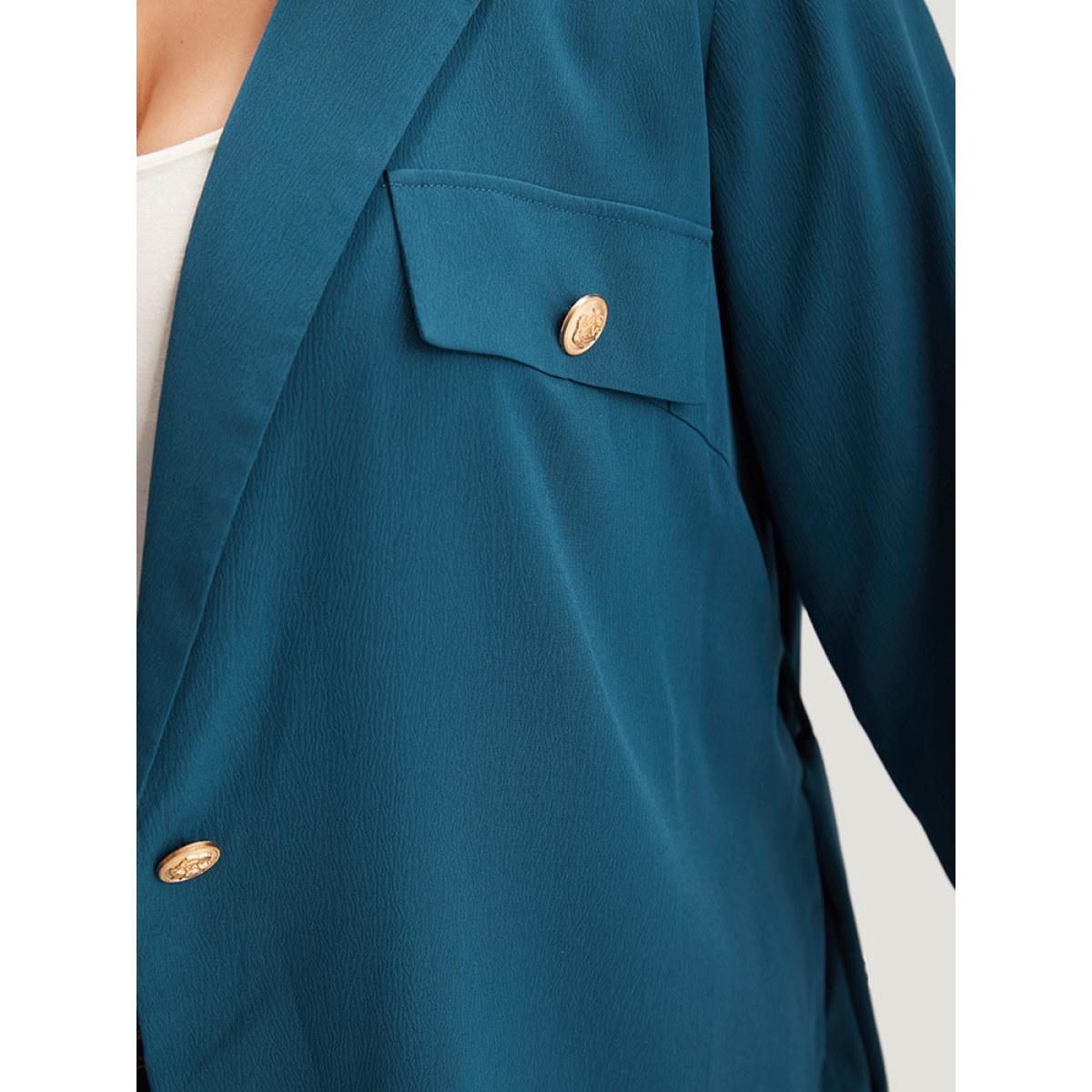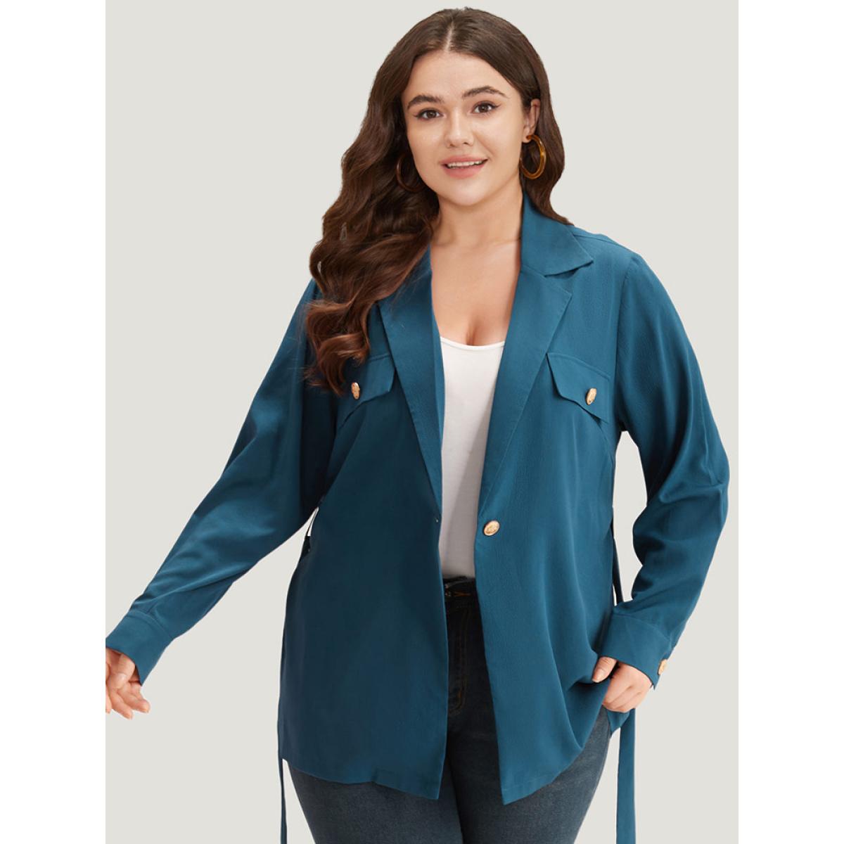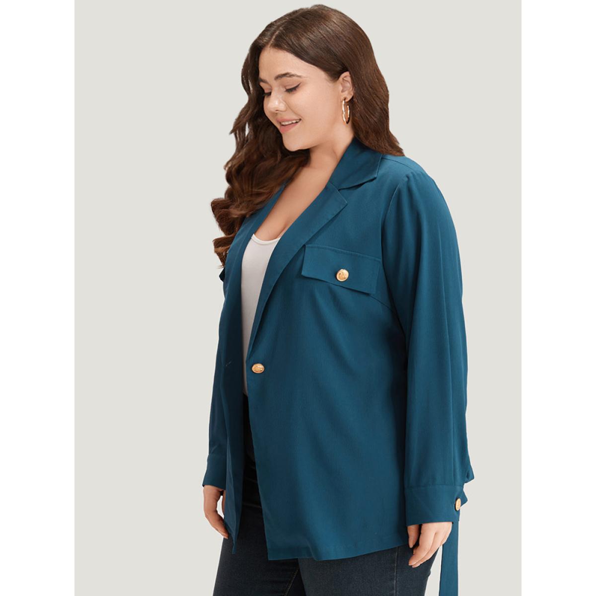 Plus Size Plain Lapel Collar Belted Metal Detail Blazer Cyan Women Dailywear Plain Plain Sleeve Long Sleeve Lapel Collar 28/5X Belt Casual Blazers BloomChic