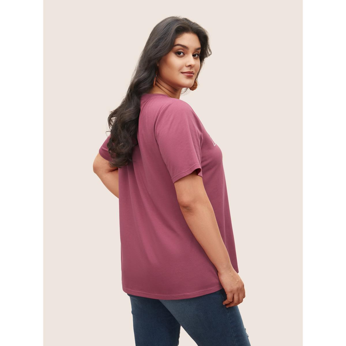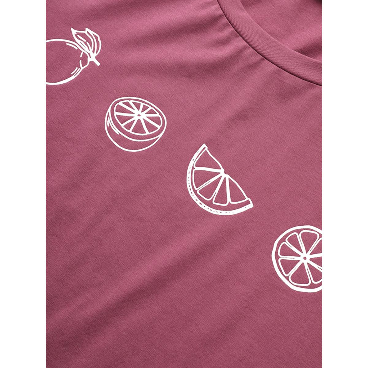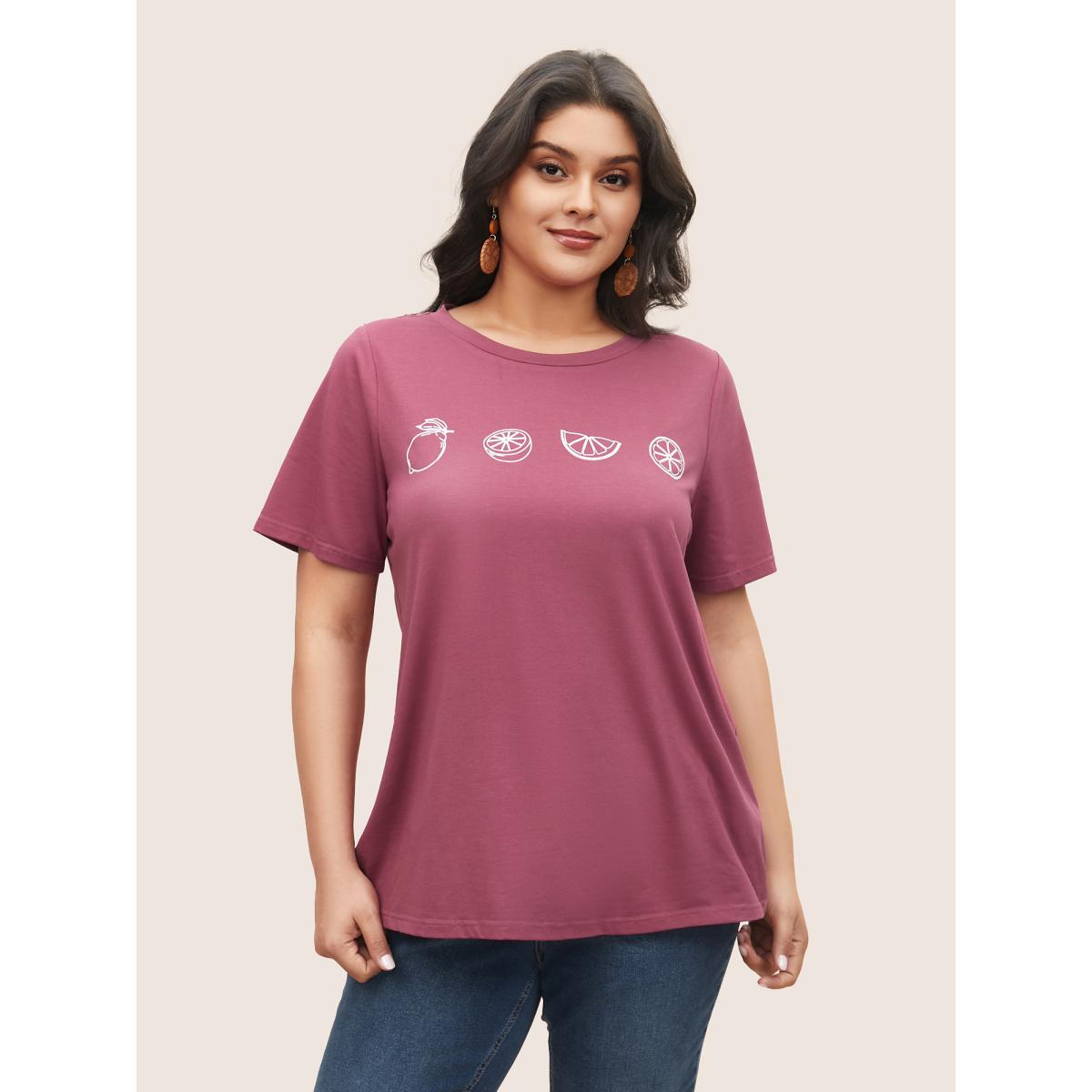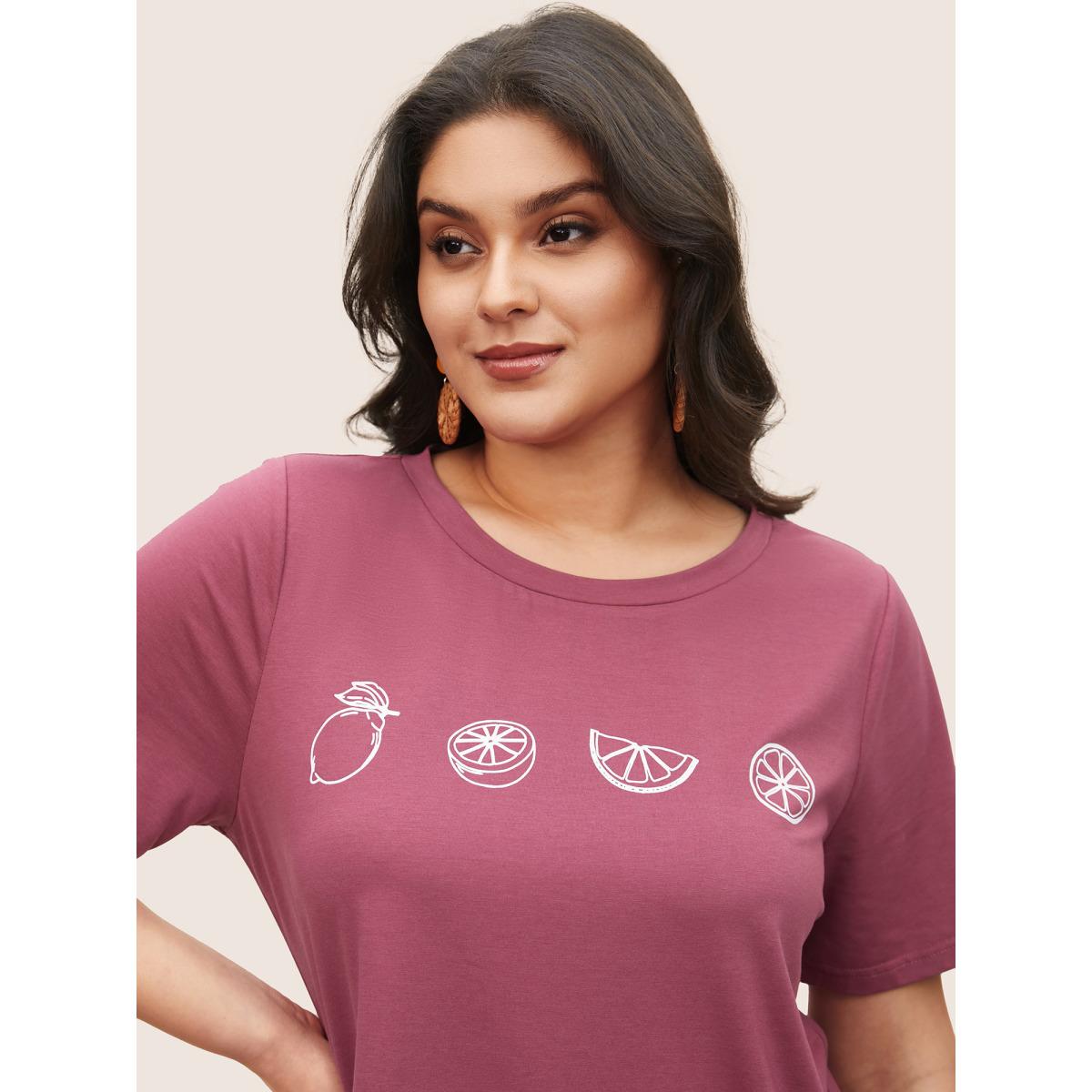 Plus Size Plain Lemon Print Crew Neck T-shirt DustyPink Women Resort Fruit Vacation T-shirts BloomChic 30/6X