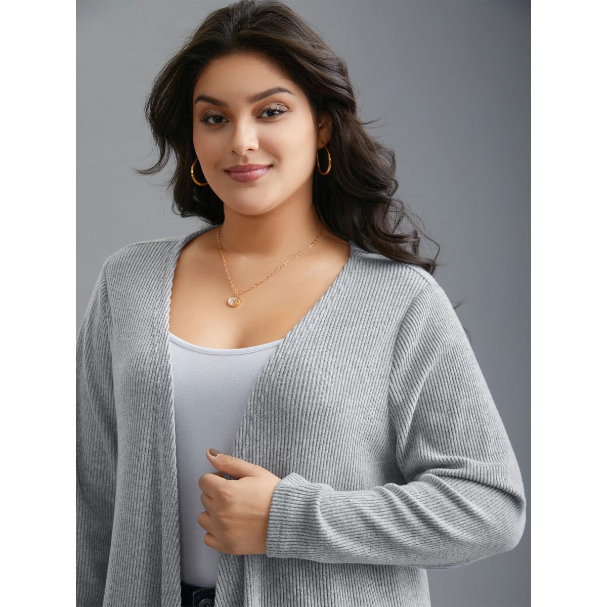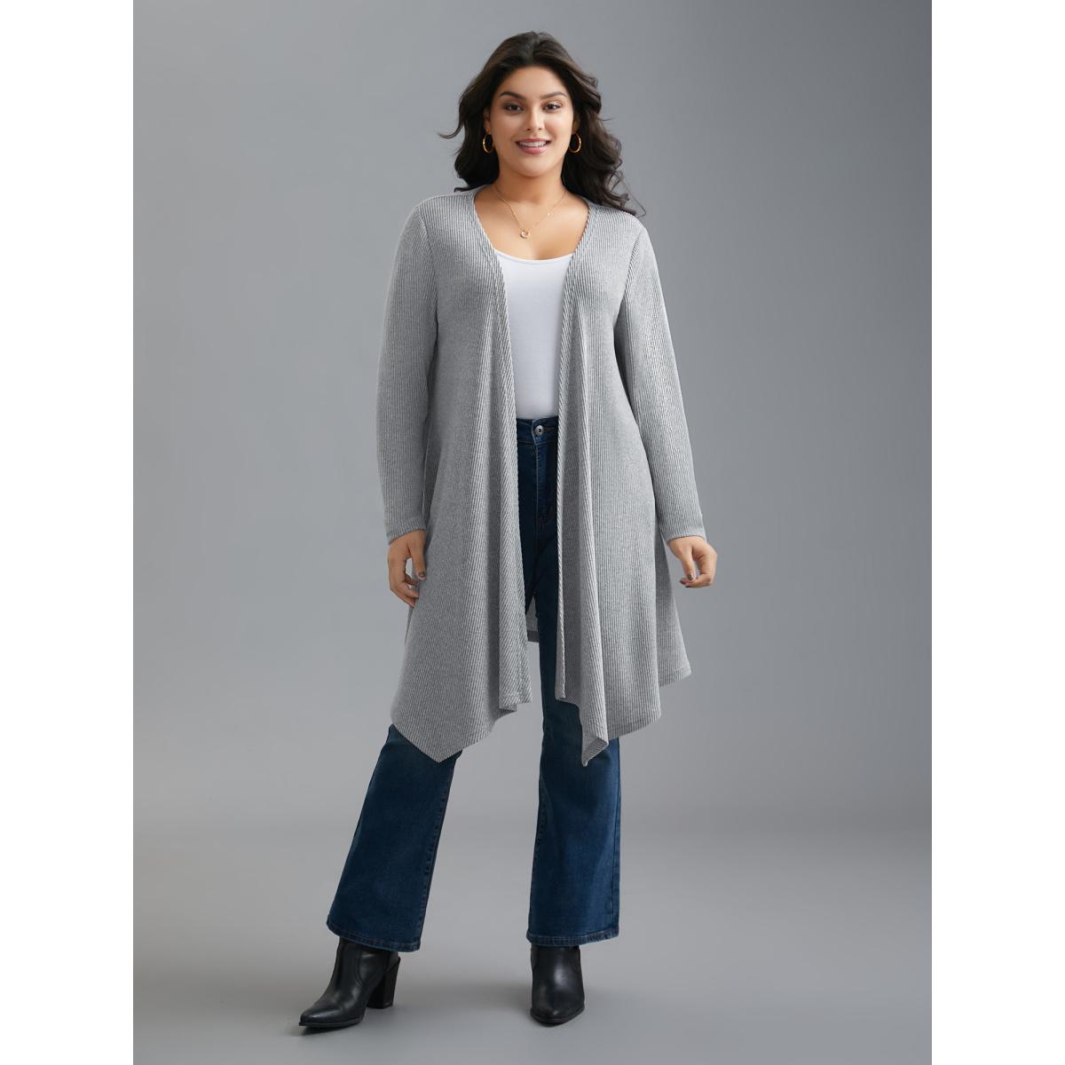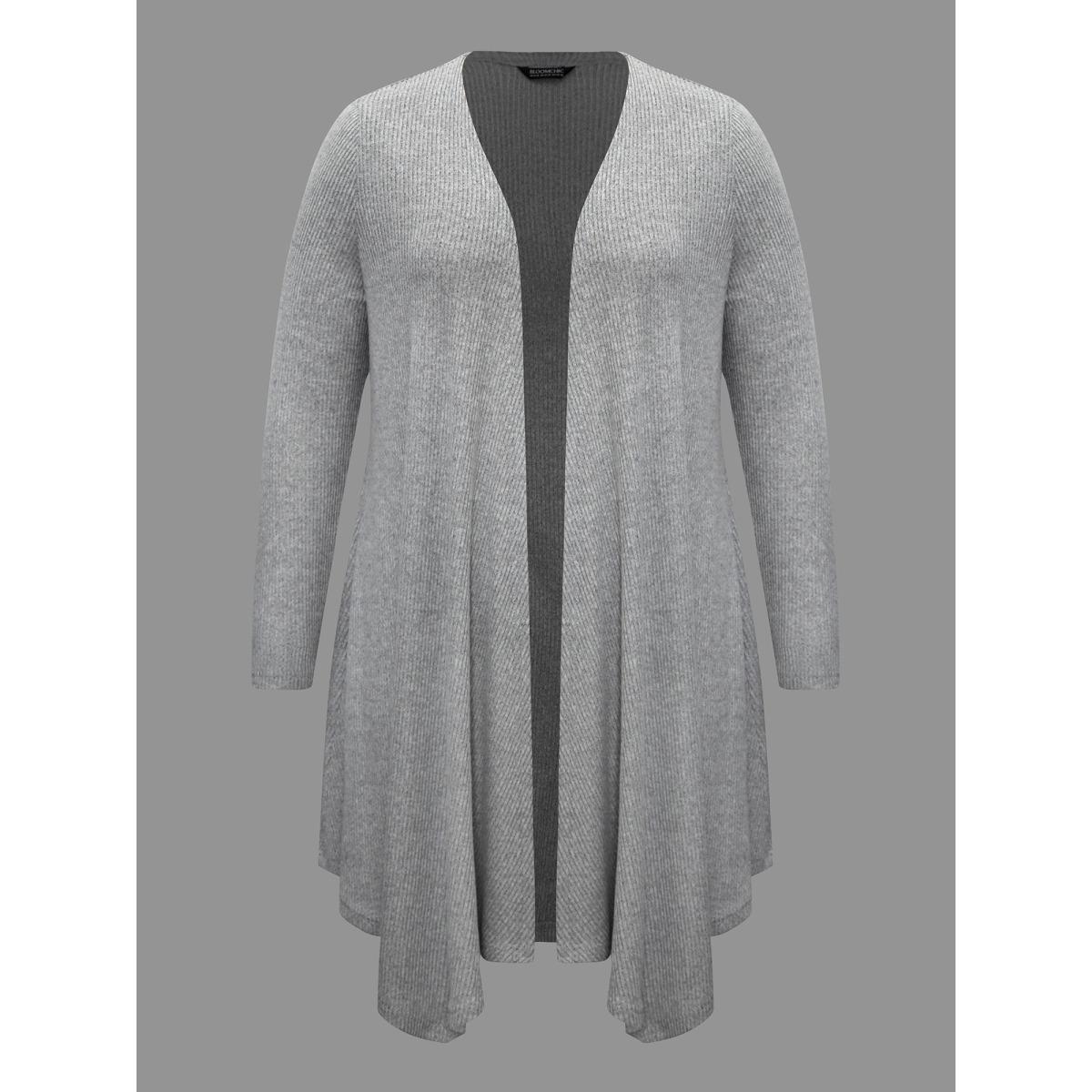 Plus Size Plain Pit Strip Asymmetrical Hem Cardigan Women DarkGray Casual Asymmetrical Loose Everyday Kimonos BloomChic 22-24/3X