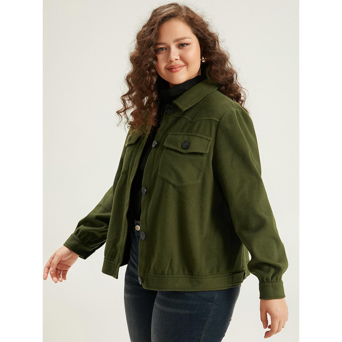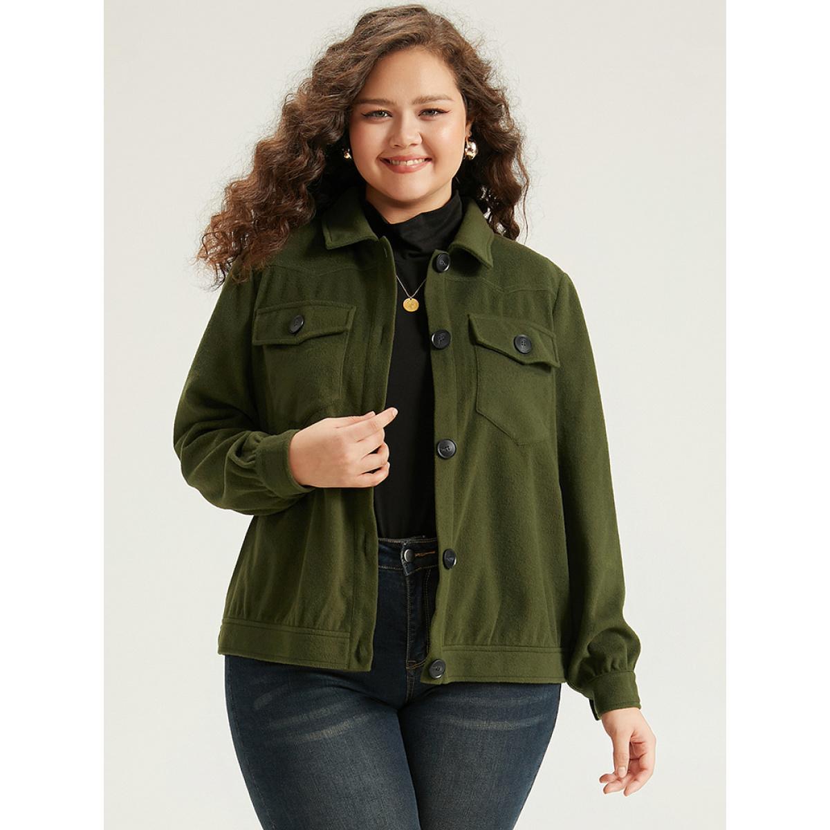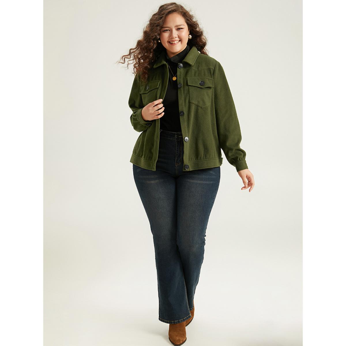 Plus Size Plain Pocket Button Up Shacket Women ArmyGreen Plain Pocket Everyday Jackets BloomChic 14-16/1X