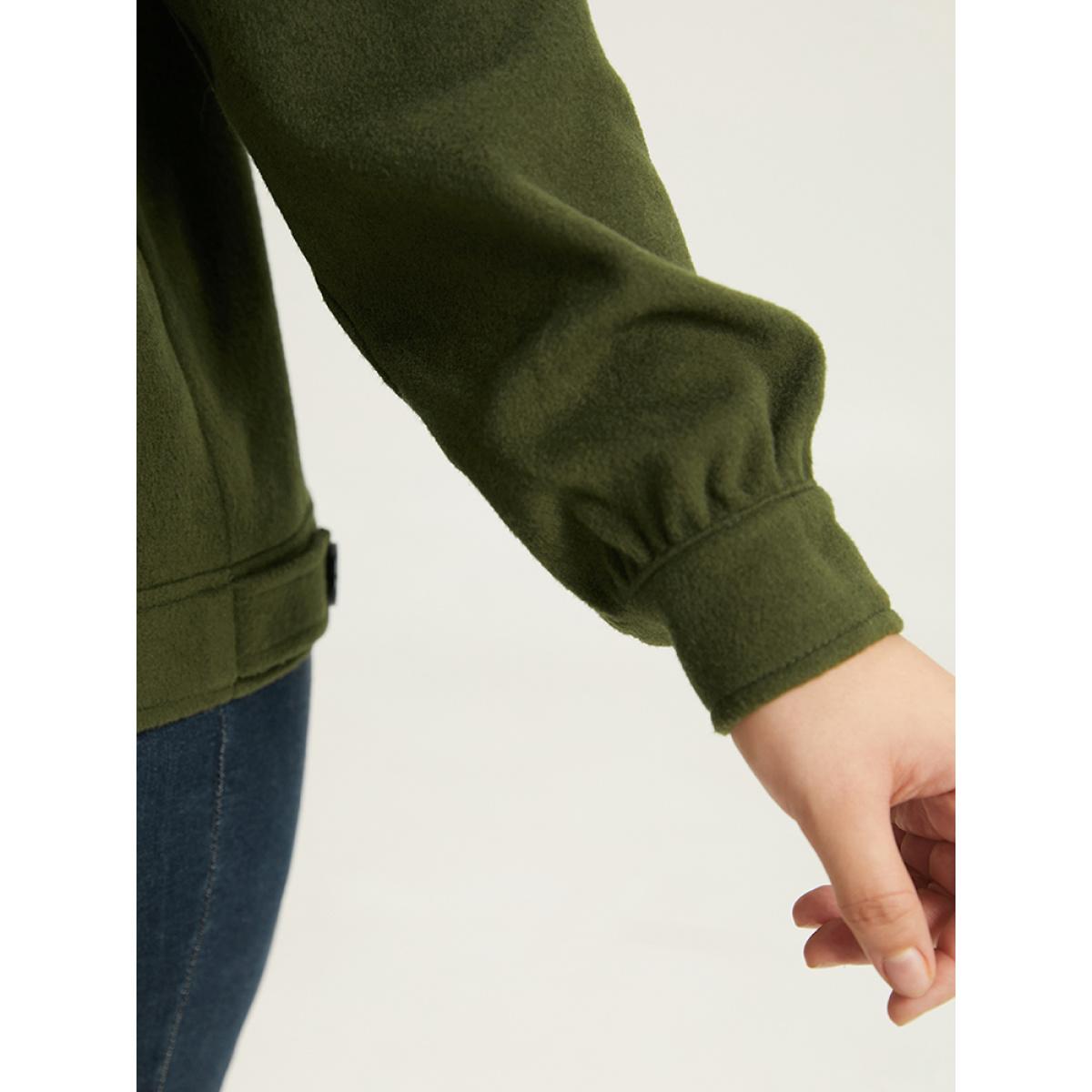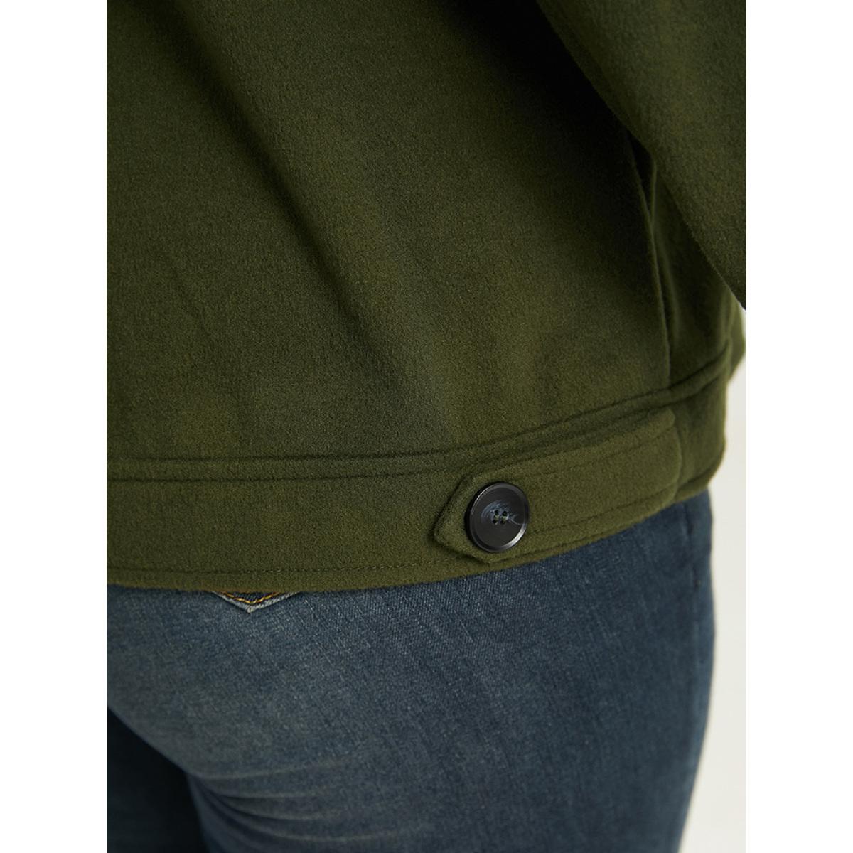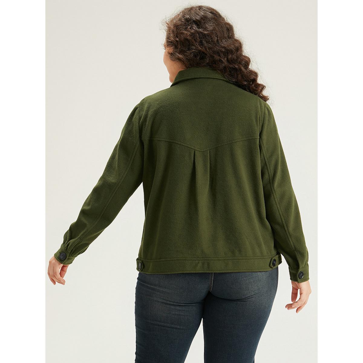 Plus Size Plain Pocket Button Up Shacket Women ArmyGreen Plain Pocket Everyday Jackets BloomChic 14-16/1X