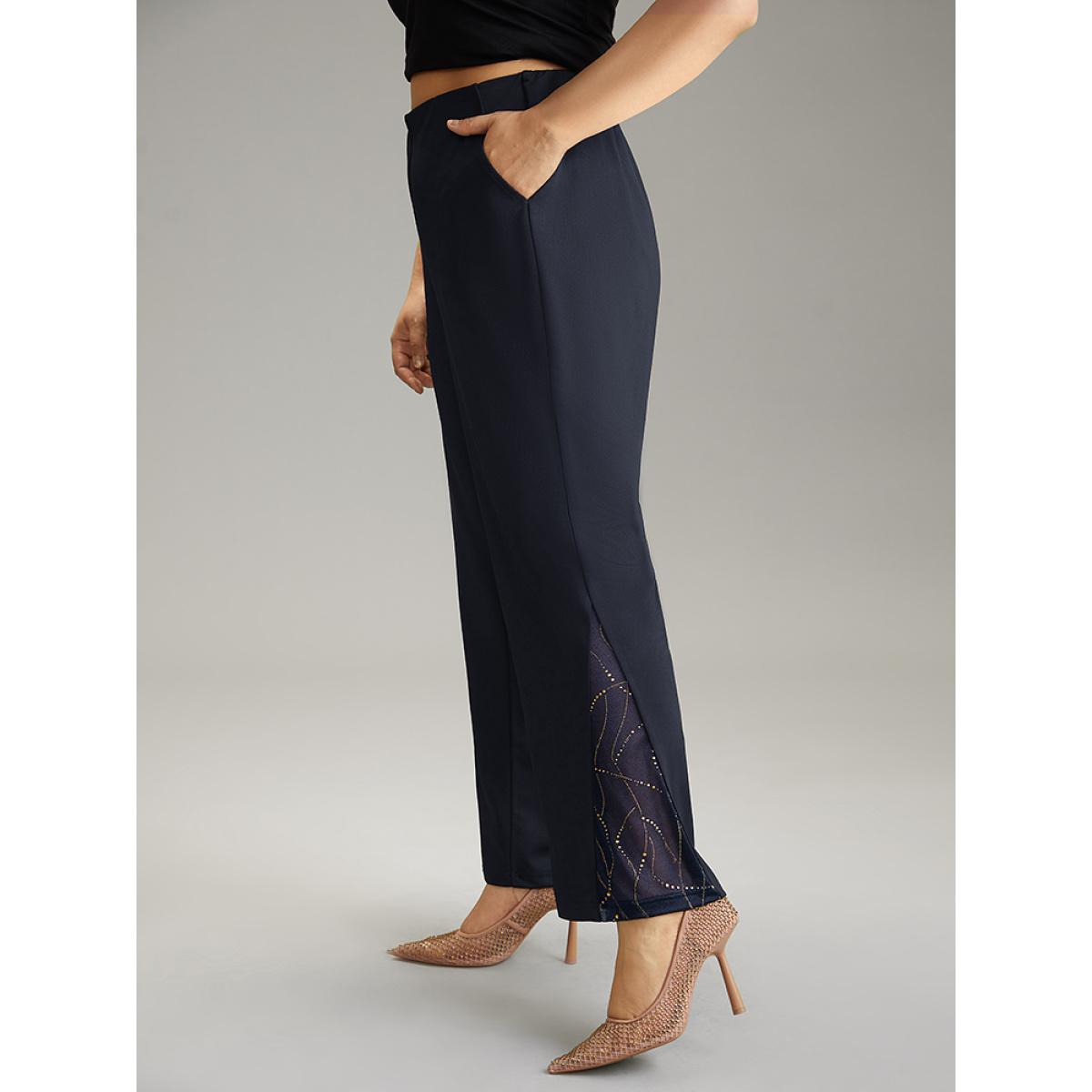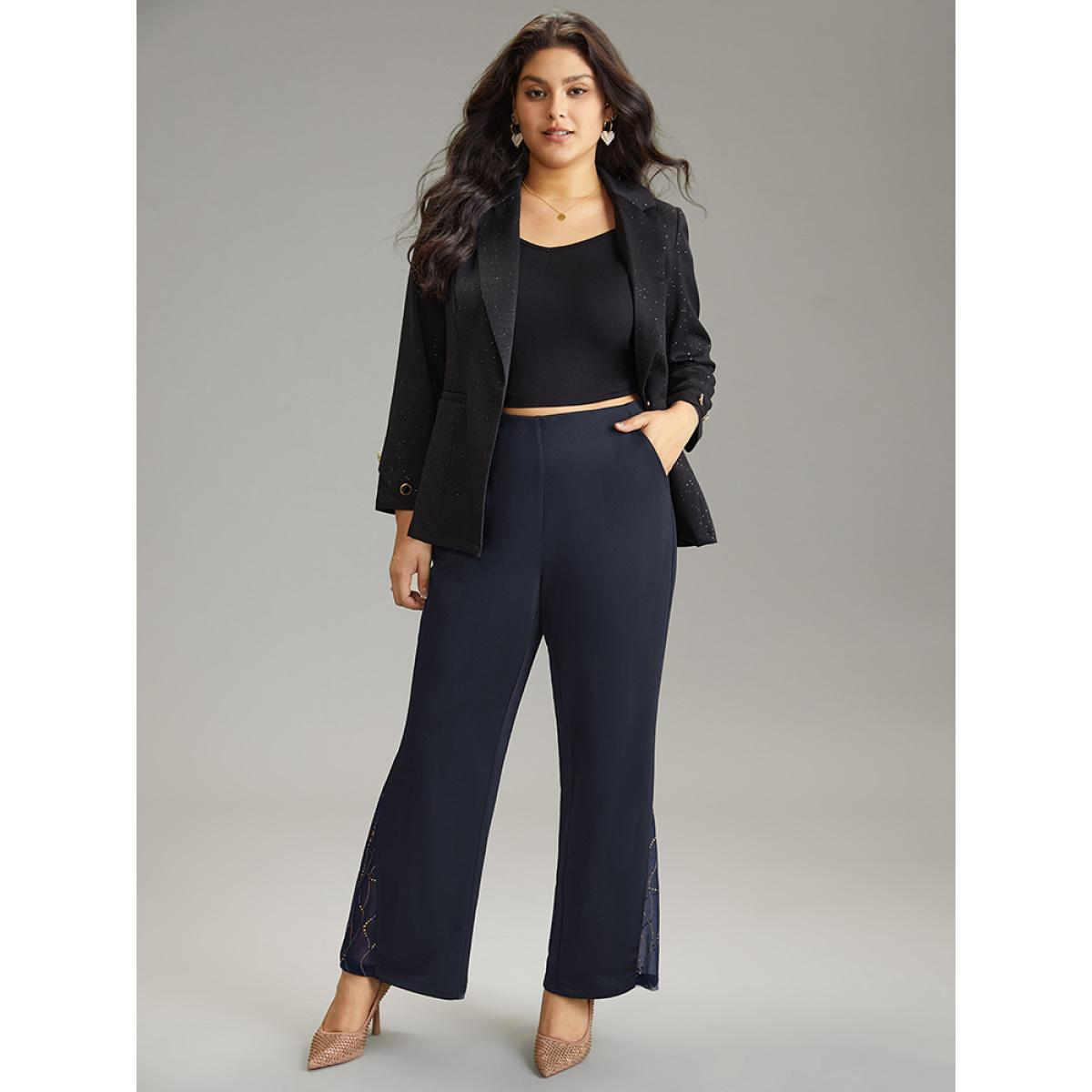 Plus Size Plain Rhinestone Patchwork Mesh Bootcut Pants Women Indigo Glamour Bootcut High Rise Party Pants BloomChic 28/5X