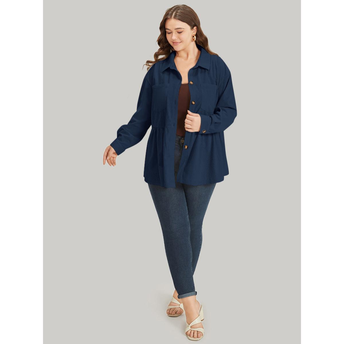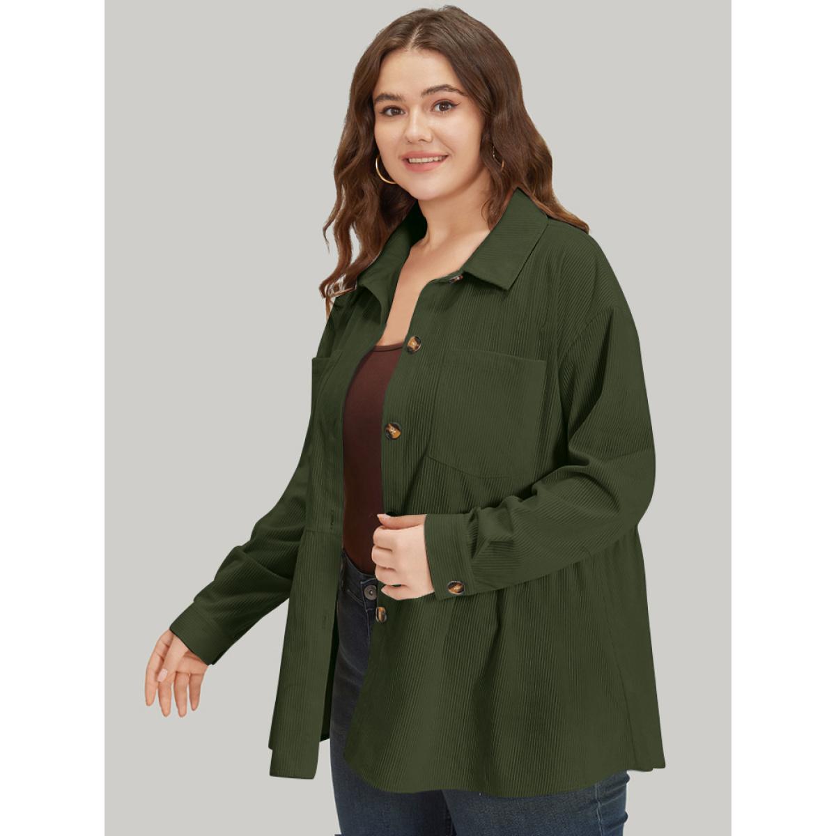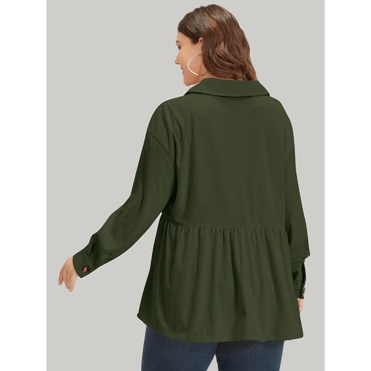 Plus Size Plain Shirt Collar Button Through Ruffle Hem Pocket Coat Women ArmyGreen Button Pocket Dailywear Jackets BloomChic 30/6X