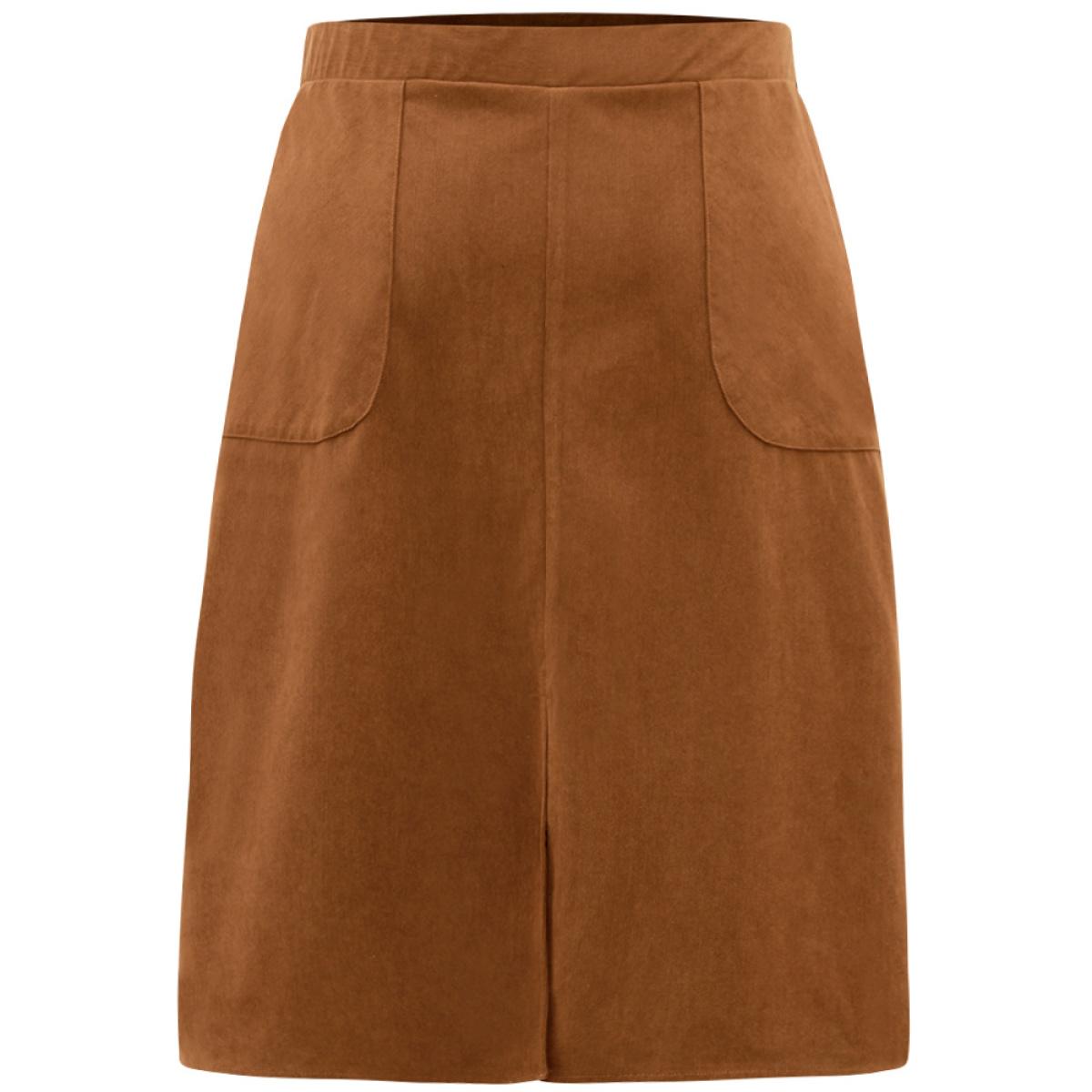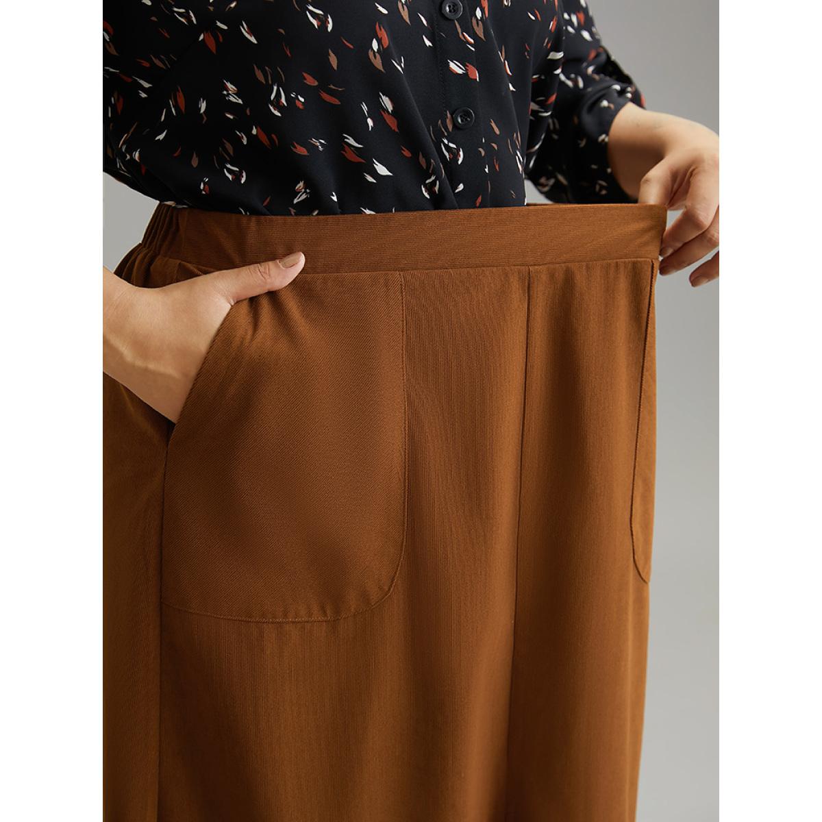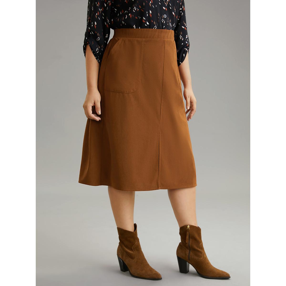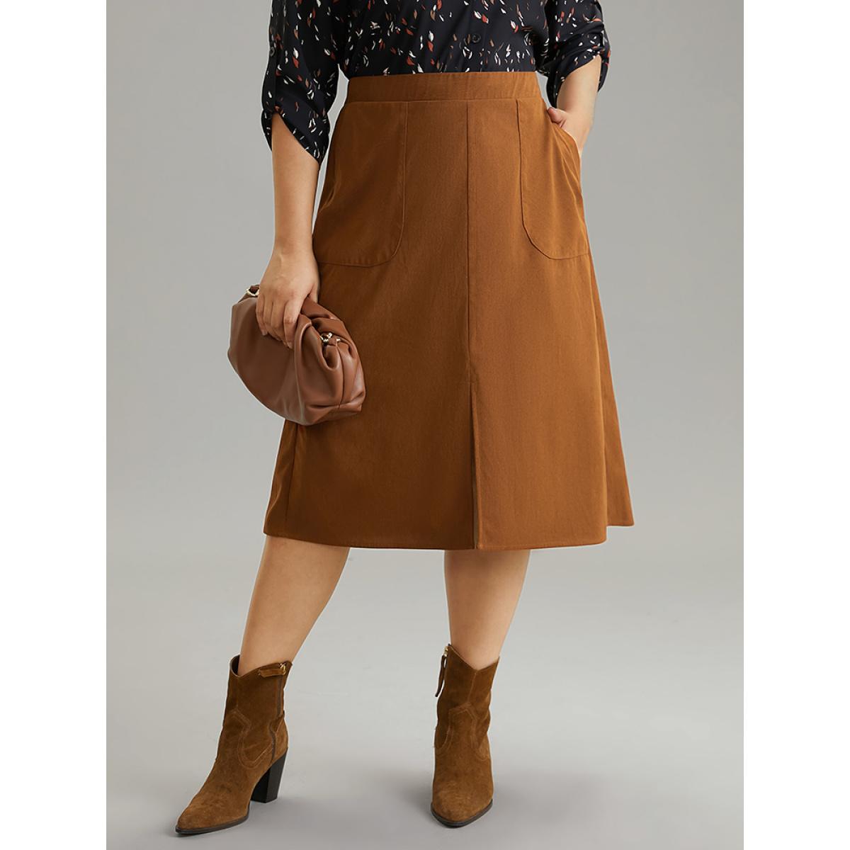 Plus Size Plain Texture Elastic Waist Pocket Split Front Skirt Women Tan Office Texture No stretch Pocket Office Skirts BloomChic 12/L