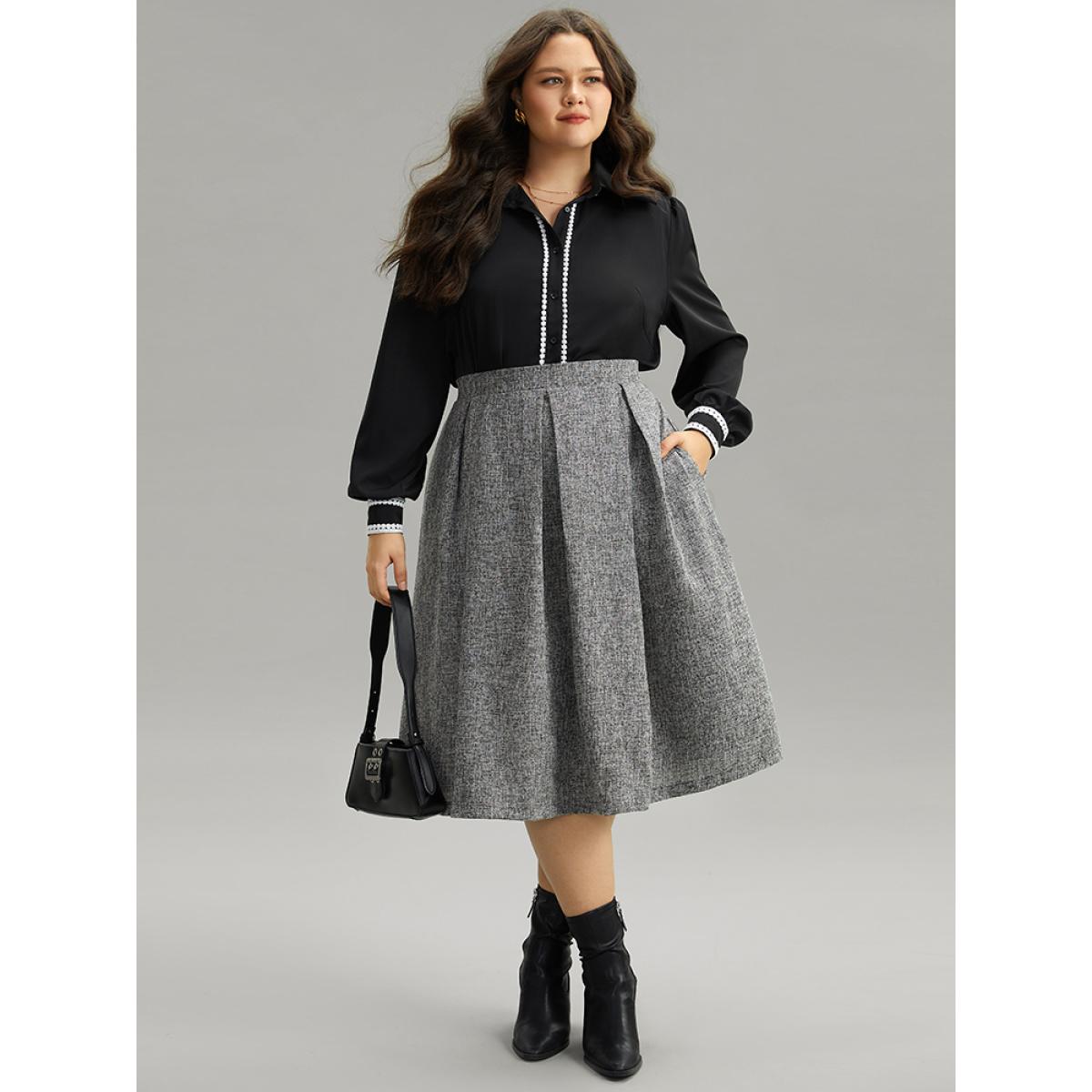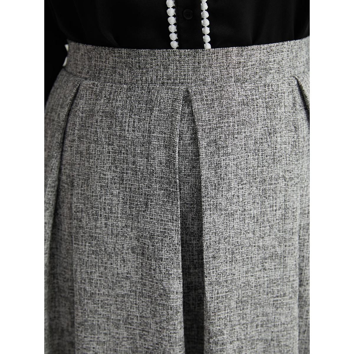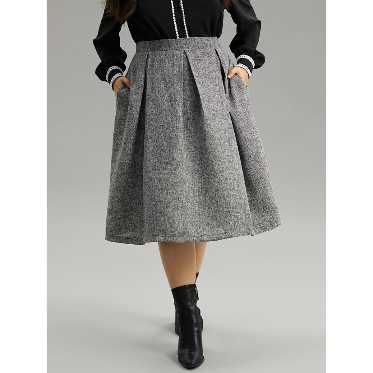 Plus Size Plain Texture Pleated Pocket Cropped Skirt Women DimGray Office Texture No stretch Pocket Work Skirts BloomChic 12/L