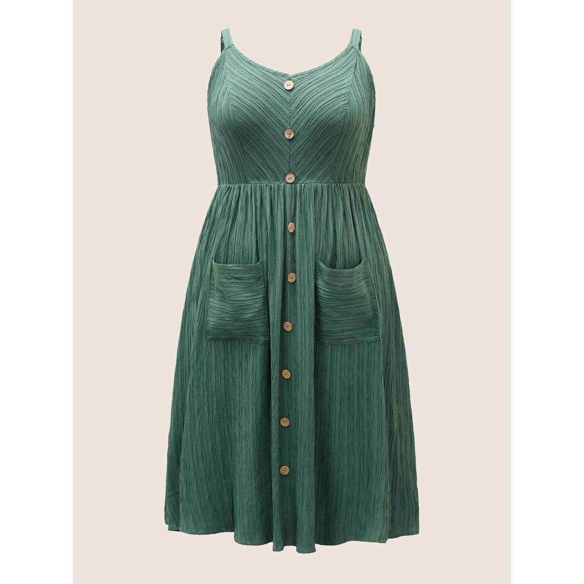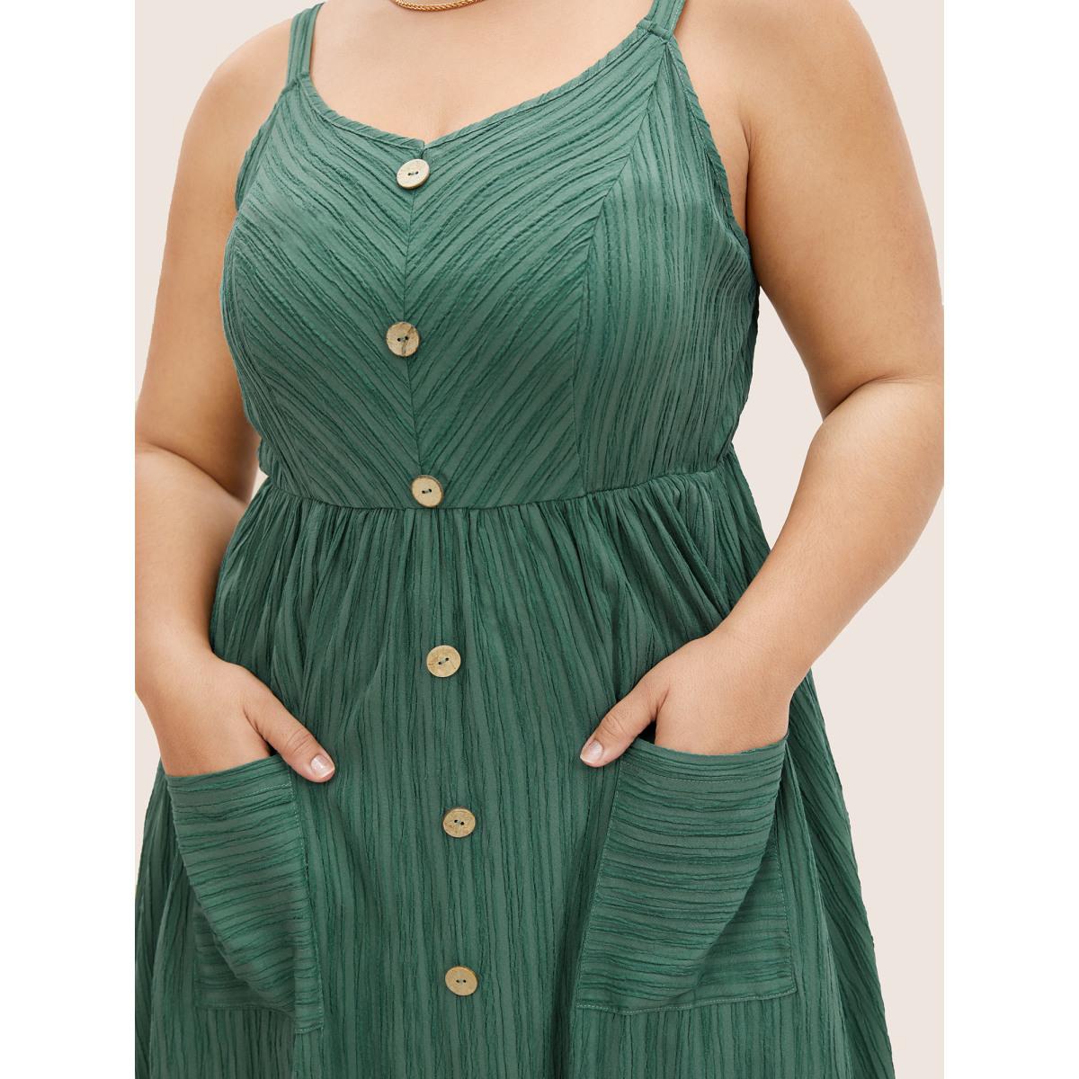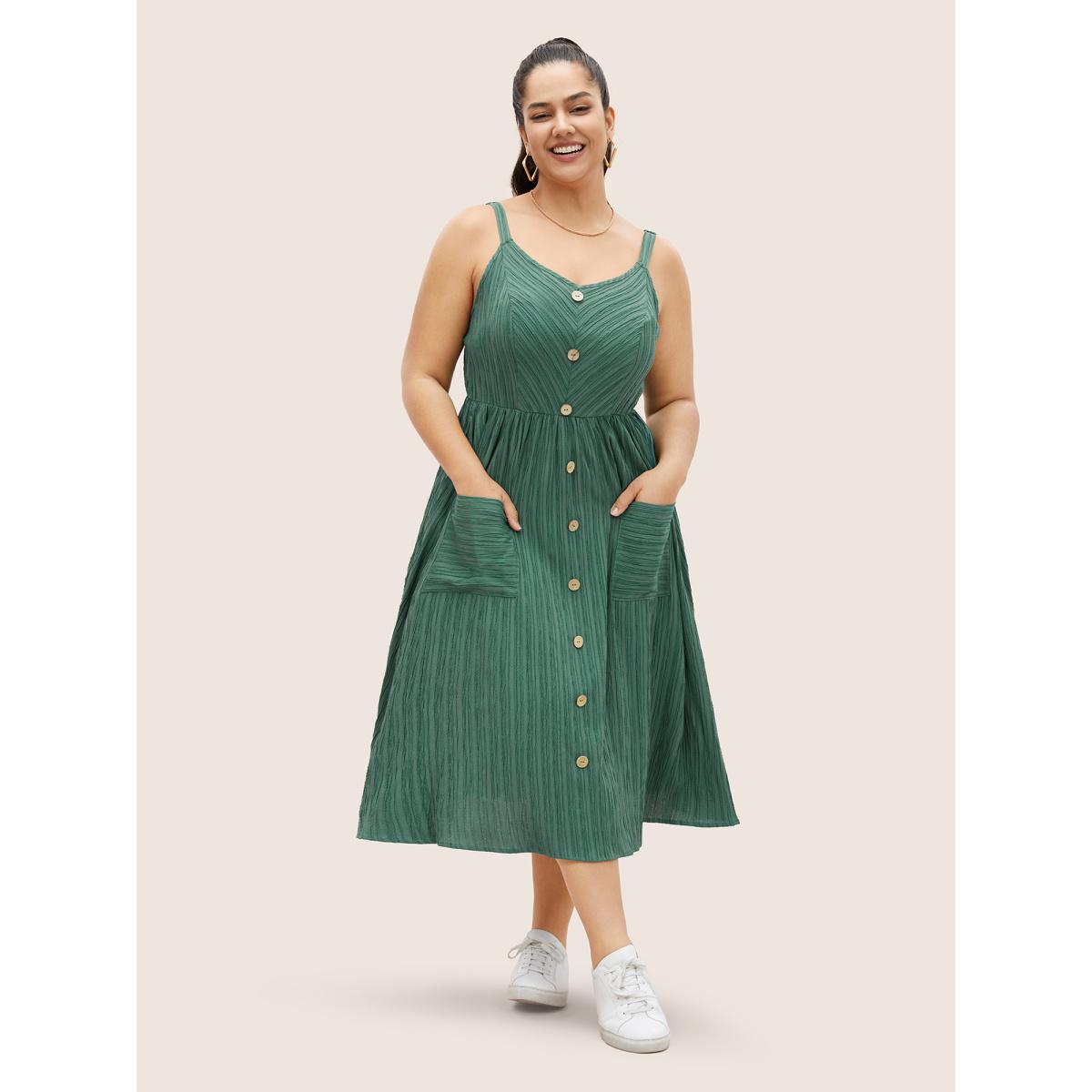 Plus Size Plain Textured Button Detail Cami Dress Emerald Women Casual Texture Non Sleeveless Curvy Midi Dress BloomChic 14-16/1X