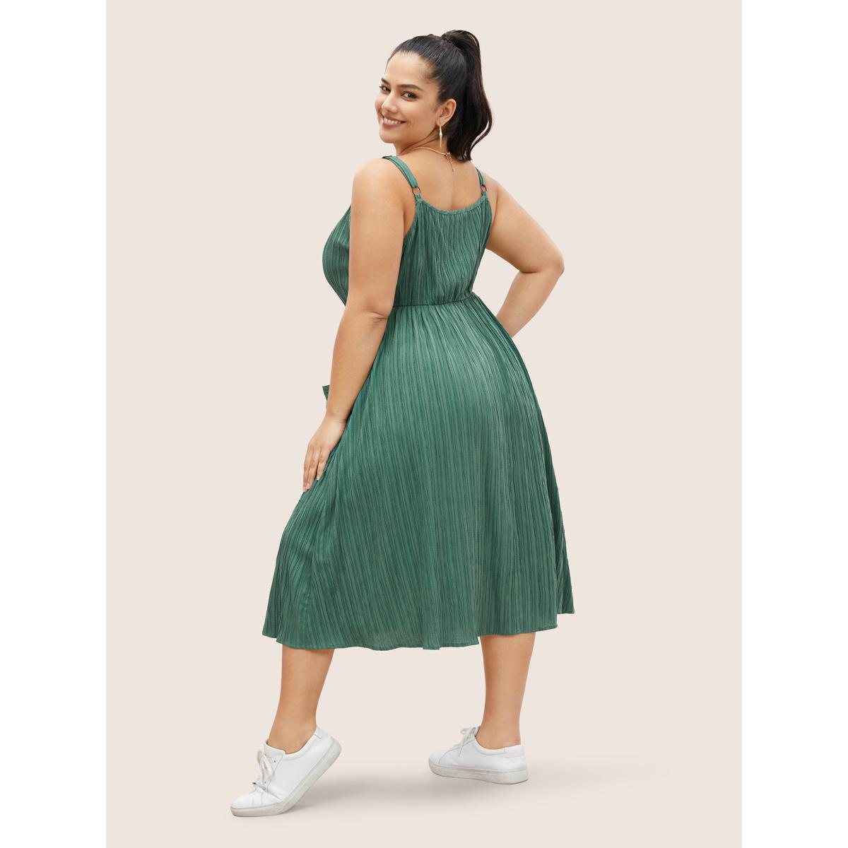 Plus Size Plain Textured Button Detail Cami Dress Emerald Women Casual Texture Non Sleeveless Curvy Midi Dress BloomChic 14-16/1X Product Image