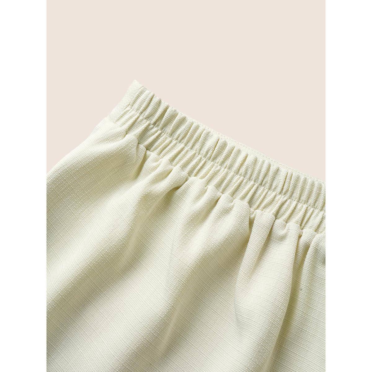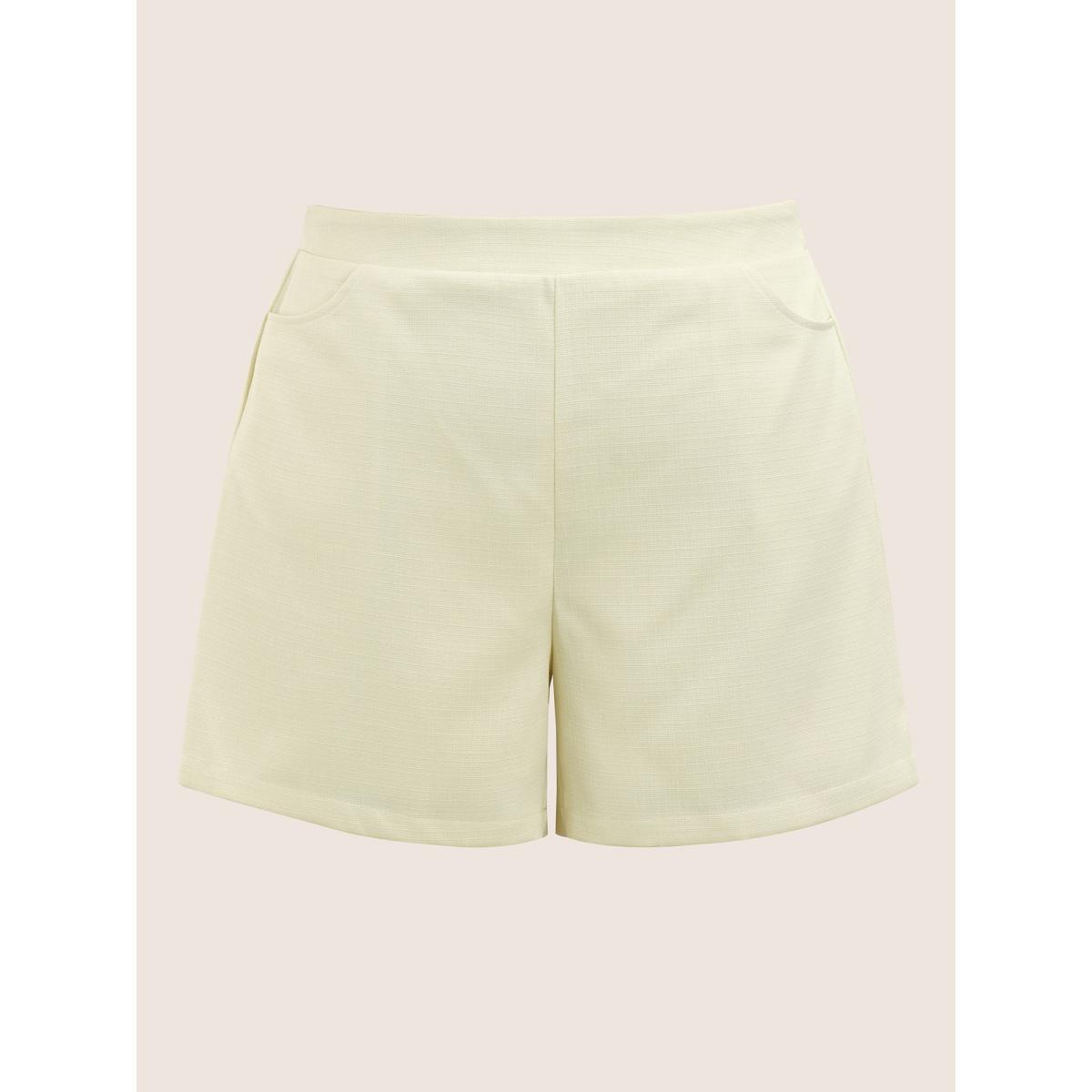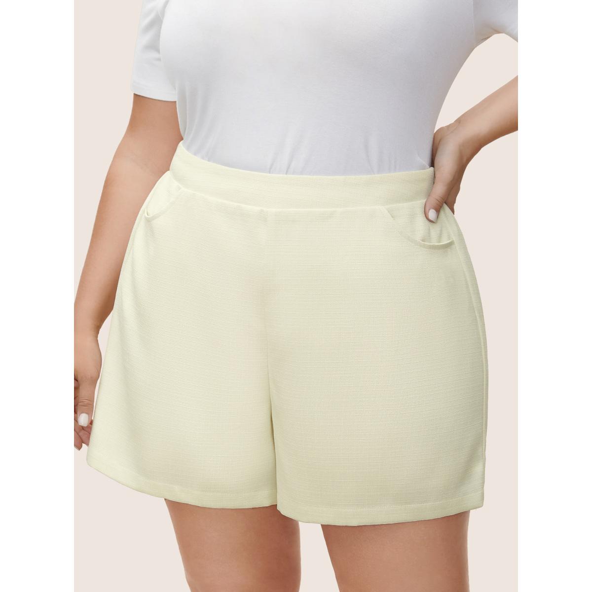 Plus Size Plain Textured Elastic Waist High Rise Shorts Women Beige Casual Non Loose Everyday Shorts BloomChic 12/L