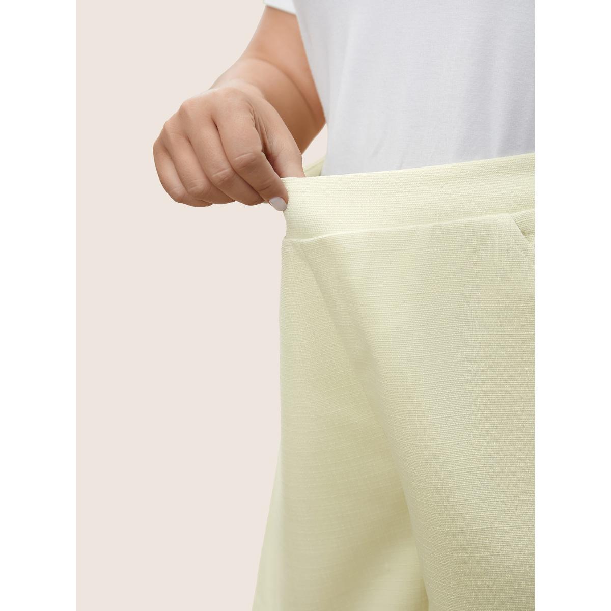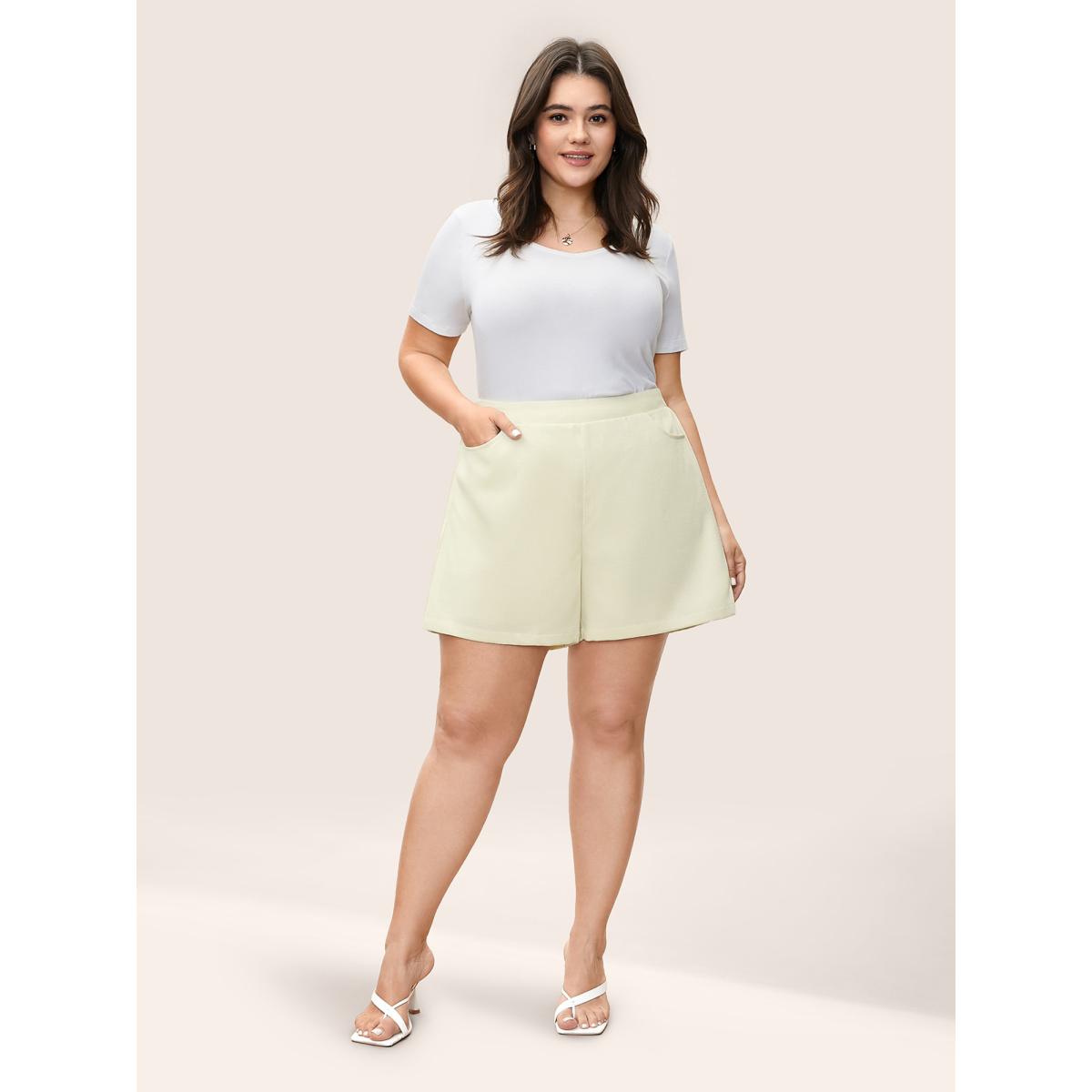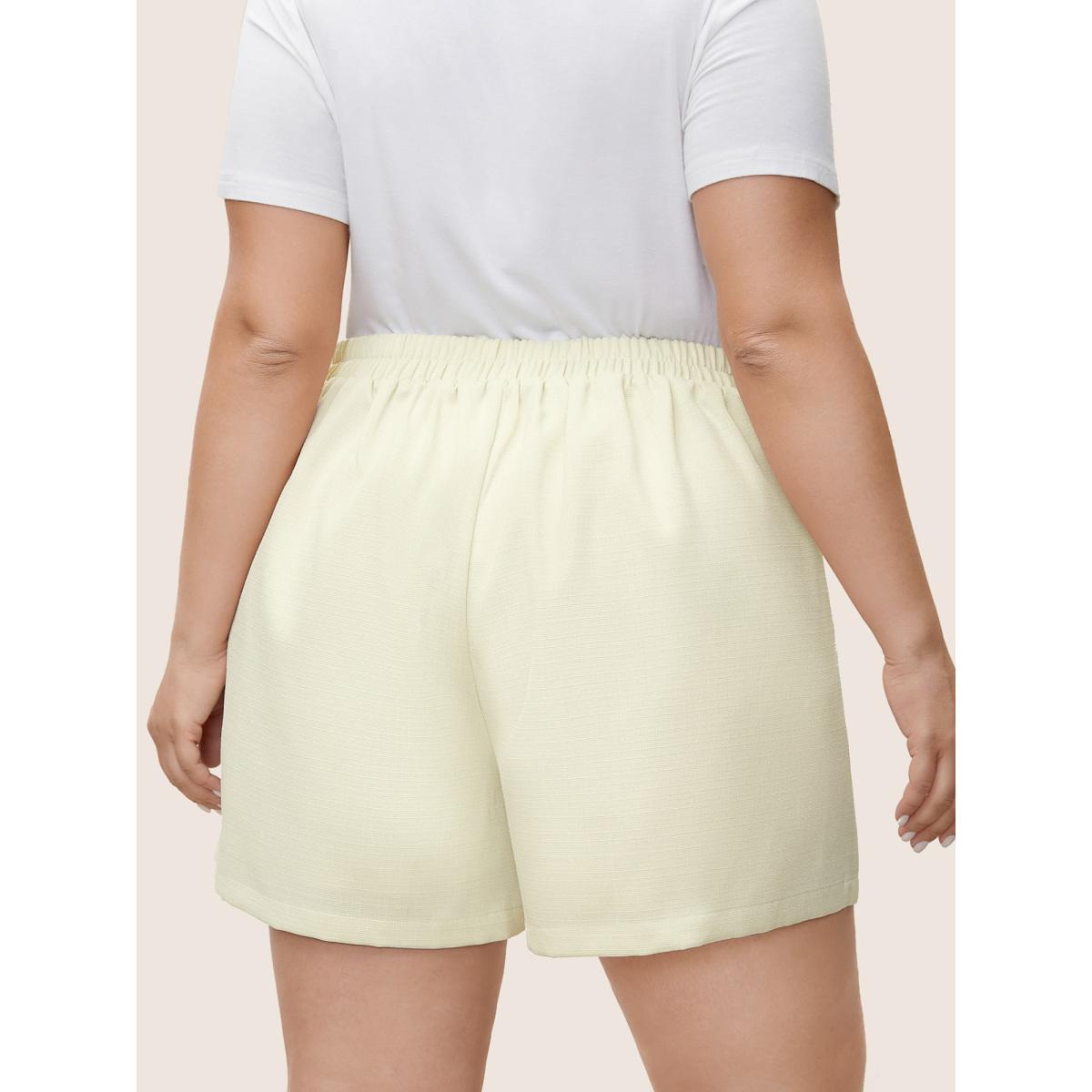 Plus Size Plain Textured Elastic Waist High Rise Shorts Women Beige Casual Non Loose Everyday Shorts BloomChic 12/L Product Image
