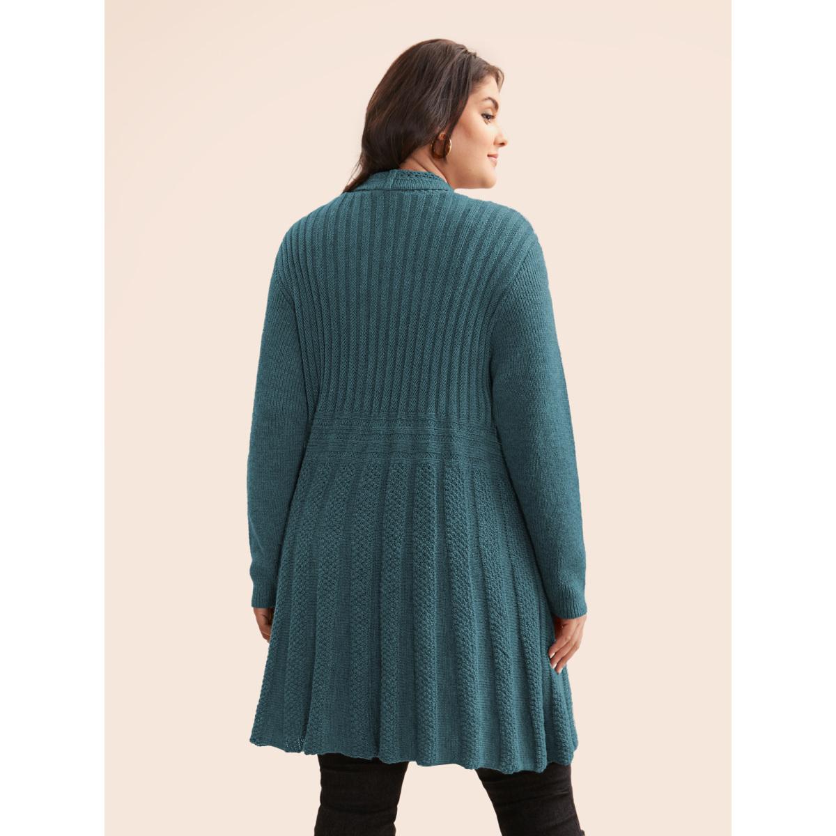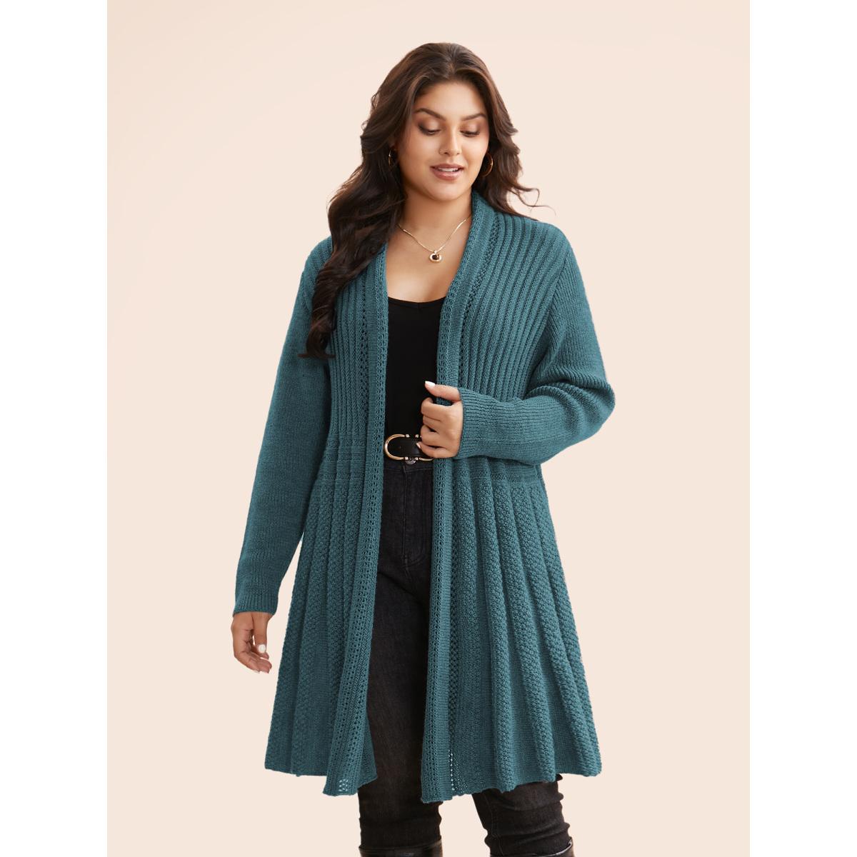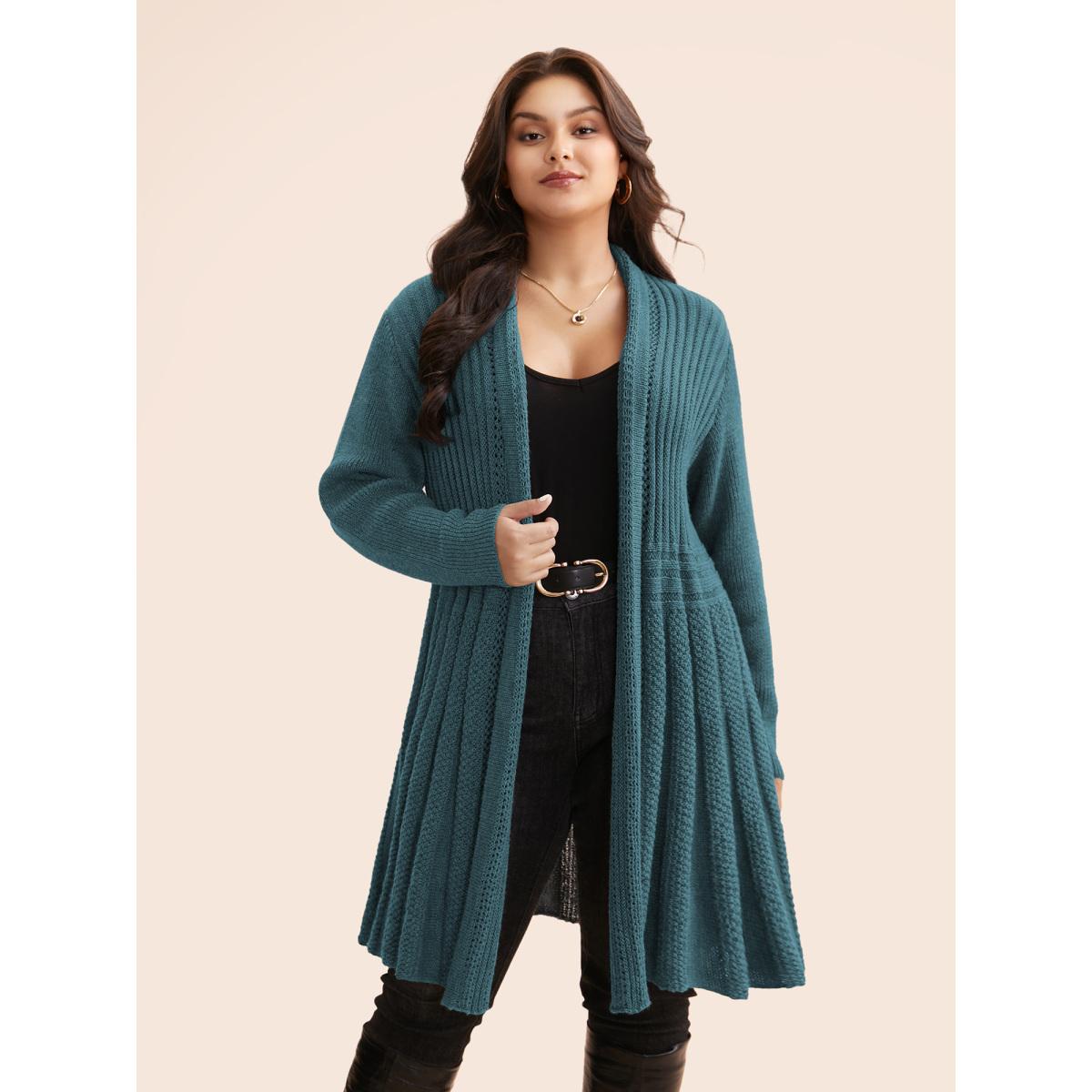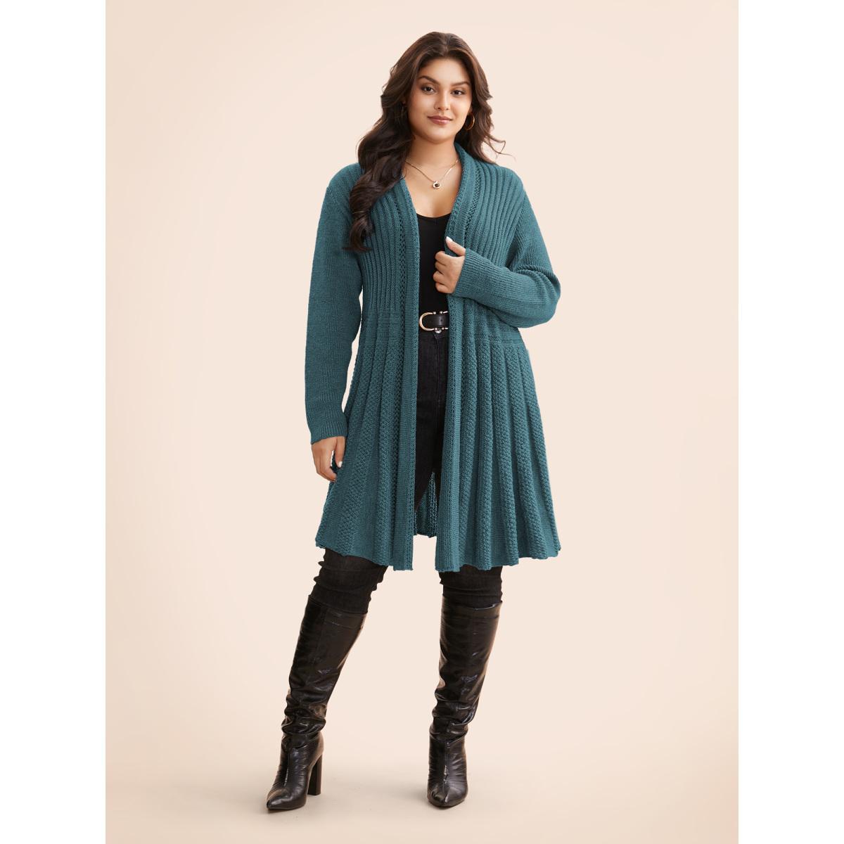 Plus Size Plain Textured Kimono Collar Cardigan Teal Women Casual Loose Long Sleeve Everyday Cardigans BloomChic 30/6X Product Image