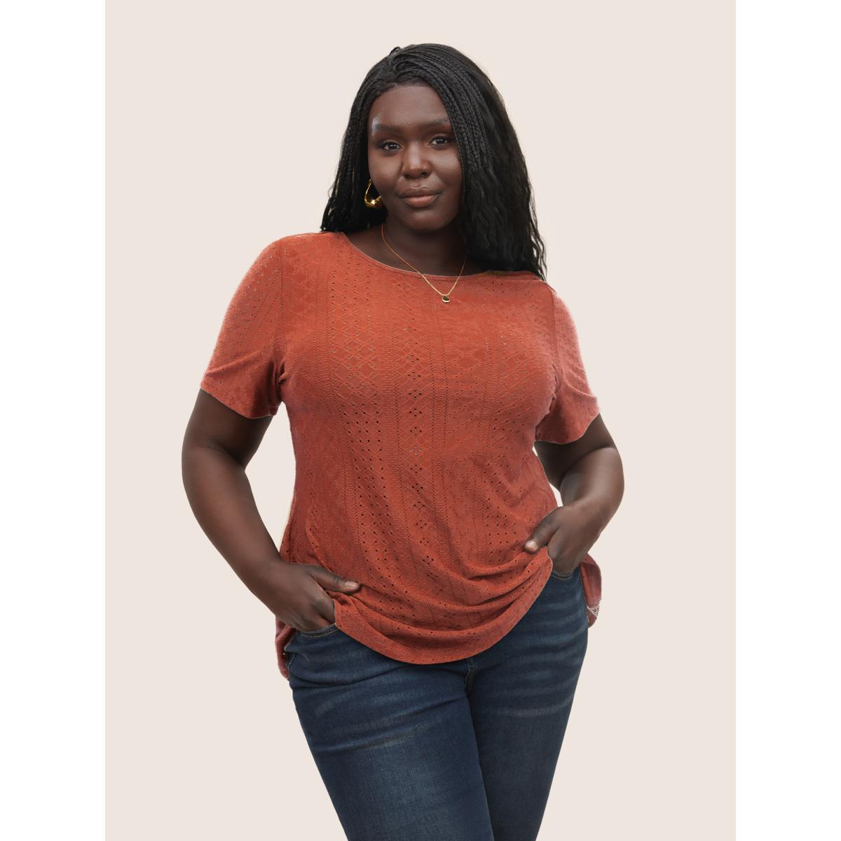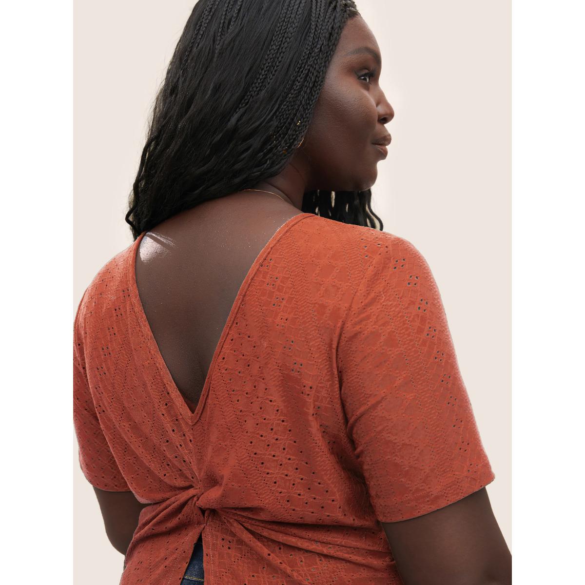 Plus Size Plain Textured Twist Back T-shirt Rust Women Elegant Twist Round Neck Everyday T-shirts BloomChic 28/5X Product Image