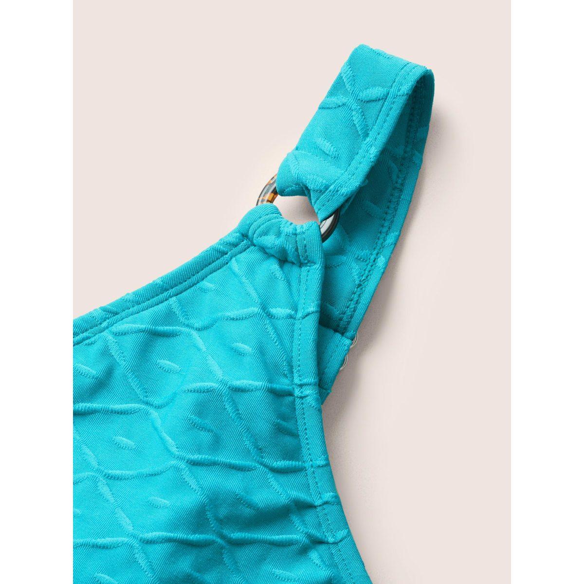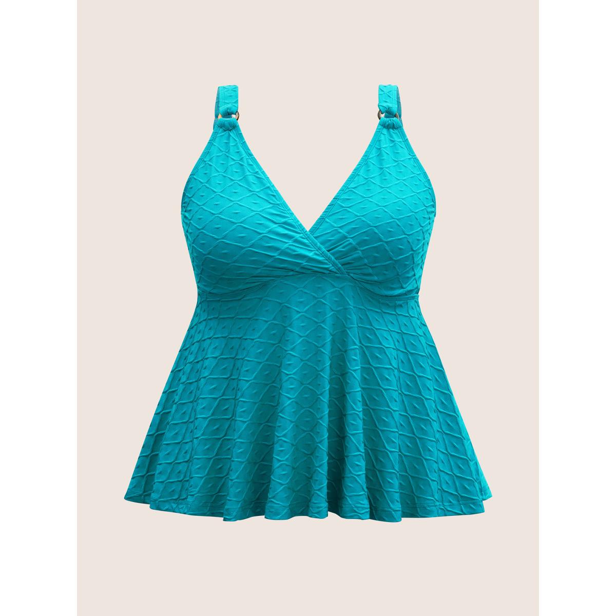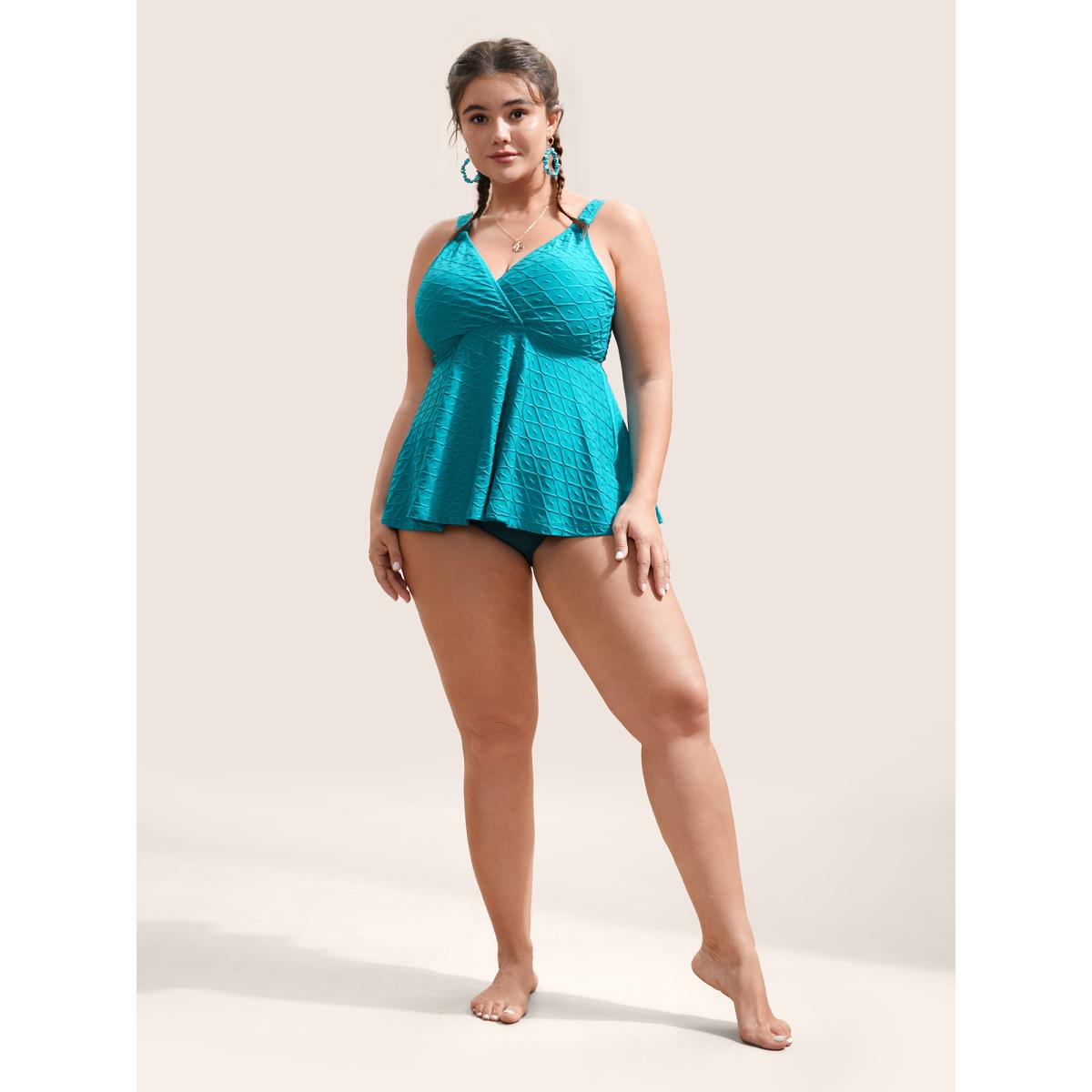 Plus Size Plain Textured Wrap Gathered Swim Top Women's Swimwear Mint Beach Non High stretch Bodycon Deep V-neck Curve Swim Tops BloomChic 14-16/1X