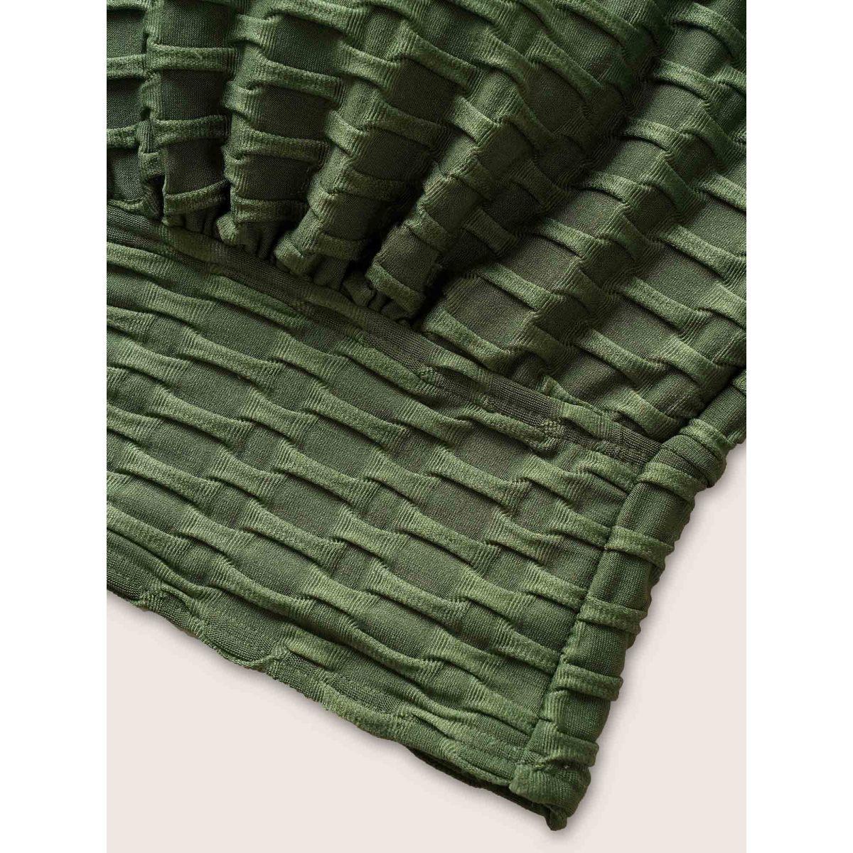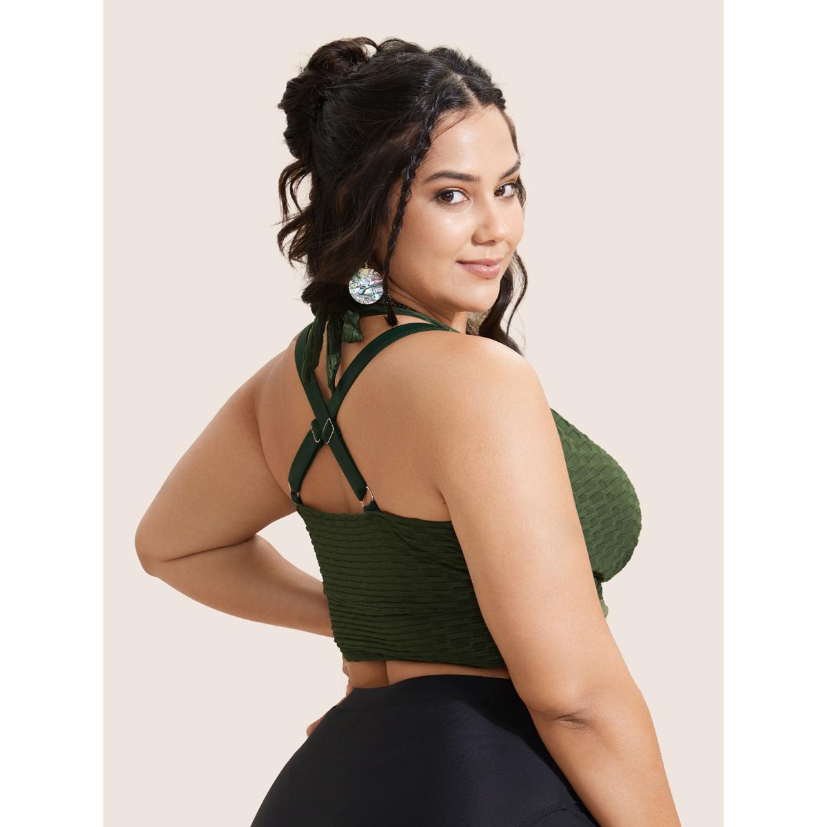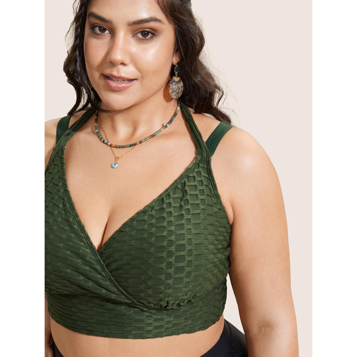 Plus Size Plain Textured Wrap Tie Knot Swim Top Women's Swimwear ArmyGreen Resort Tie knot High stretch Skinny Overlap Collar Curve Swim Tops BloomChic 30/6X