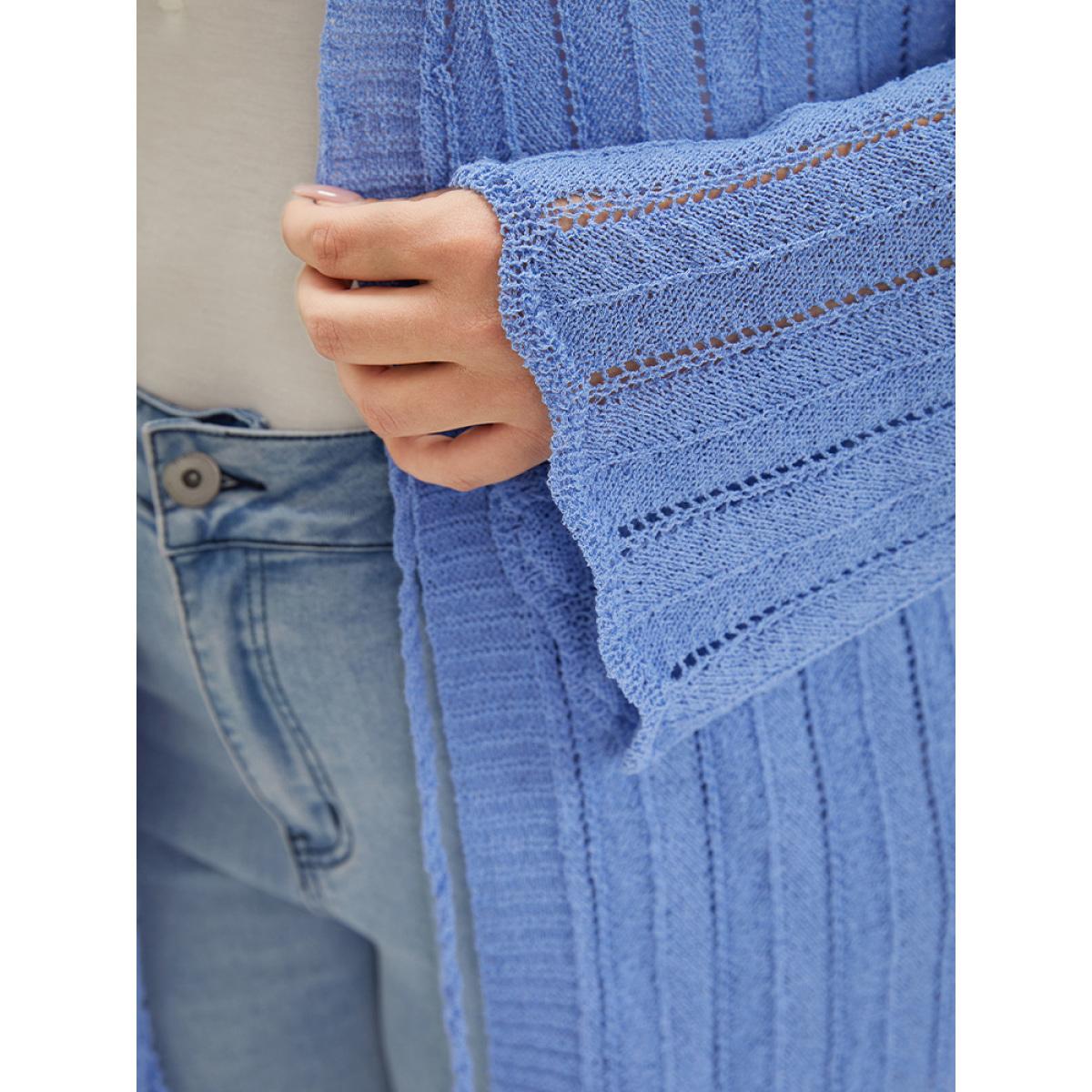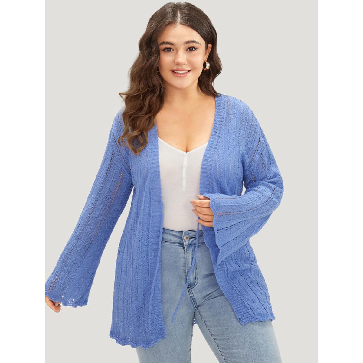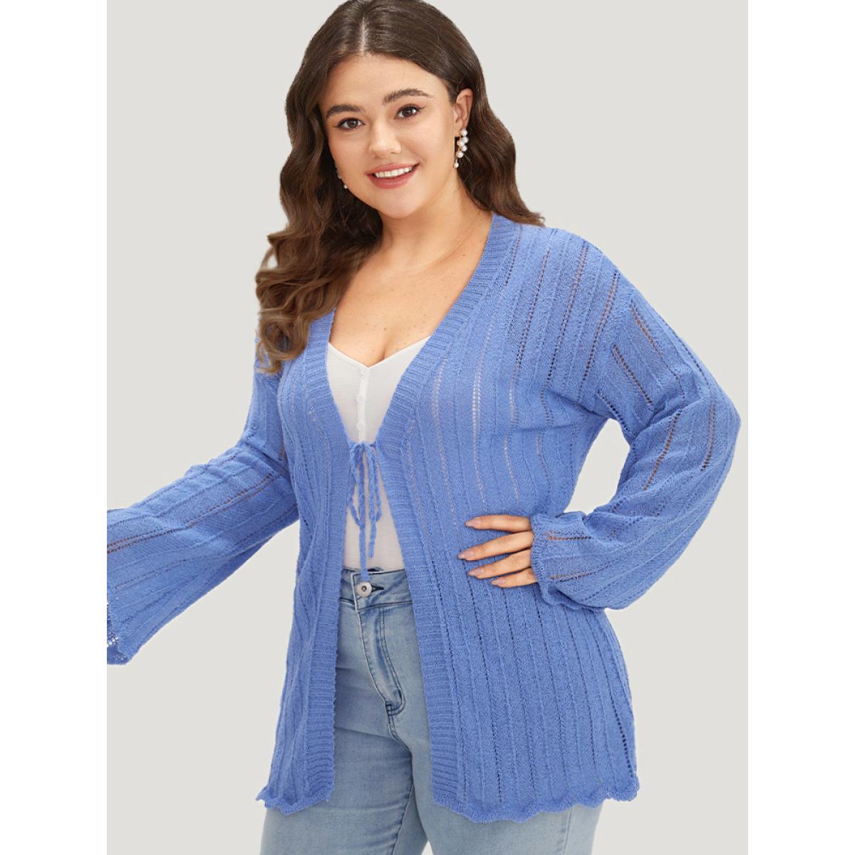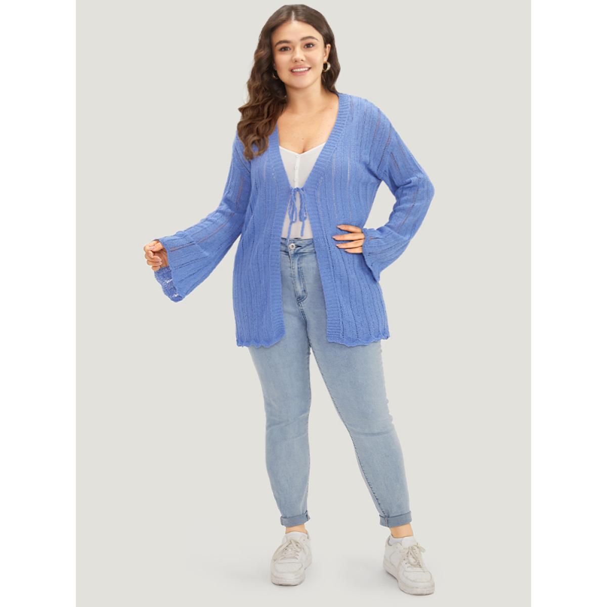 Plus Size Plain Ties Front Bell Sleeve Scalloped Trim Cardigan Cerulean Women Casual Loose Long Sleeve Everyday Cardigans BloomChic 12/L