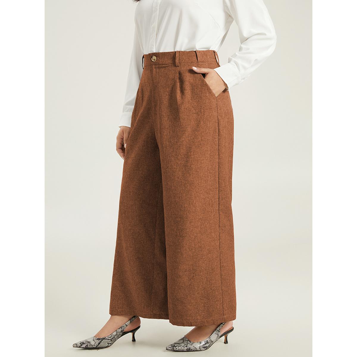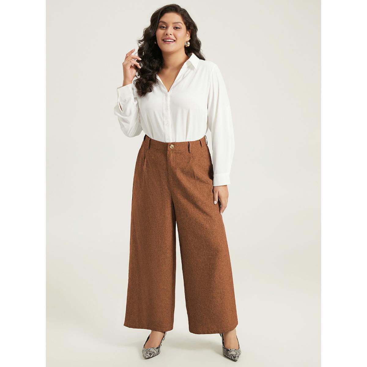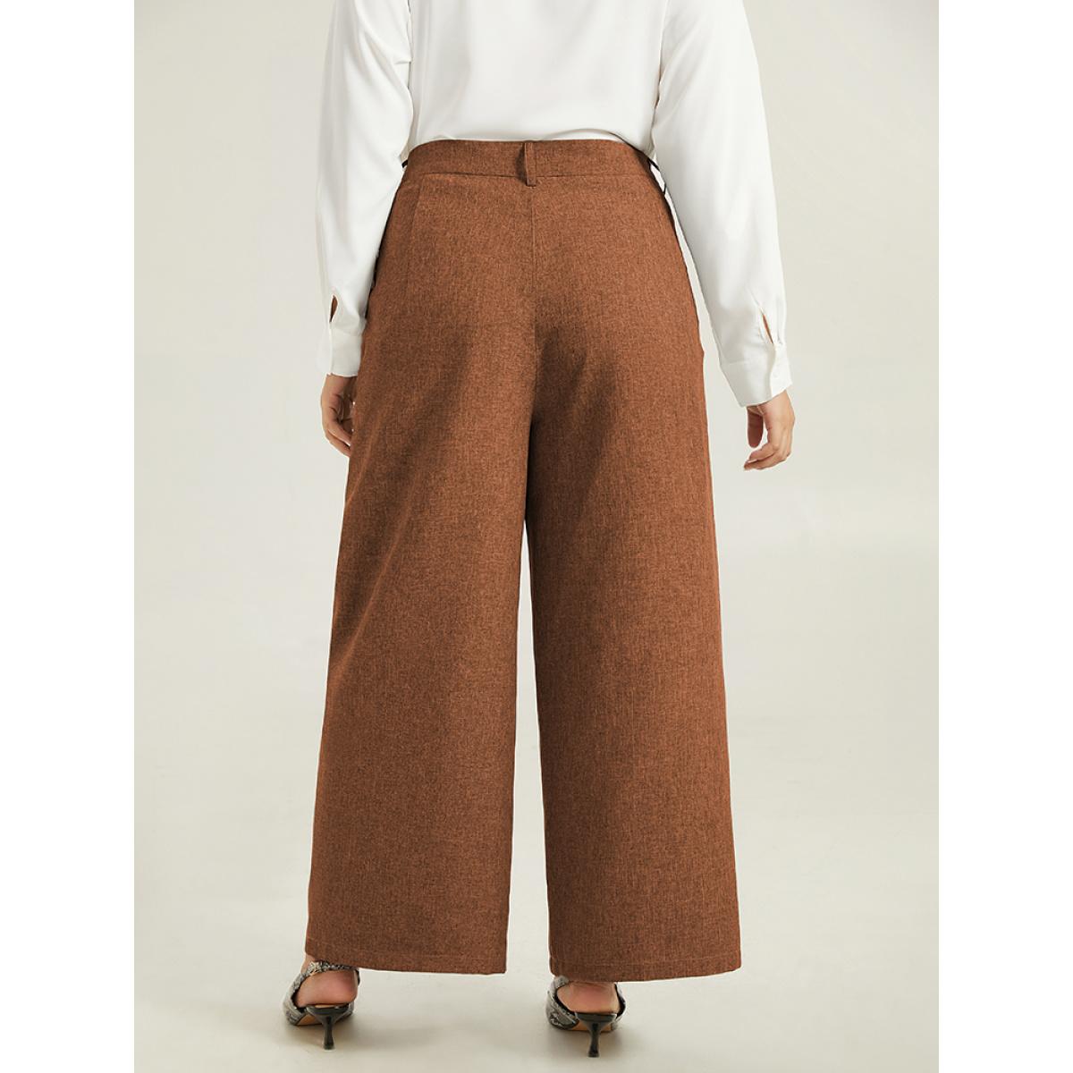 Plus Size Plain Wide Leg Elastic Waist Pocket Pants Women Bronze Workwear Essentials Wide Leg High Rise Office Pants BloomChic 30/6X