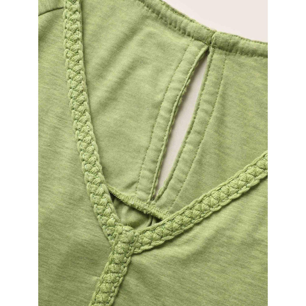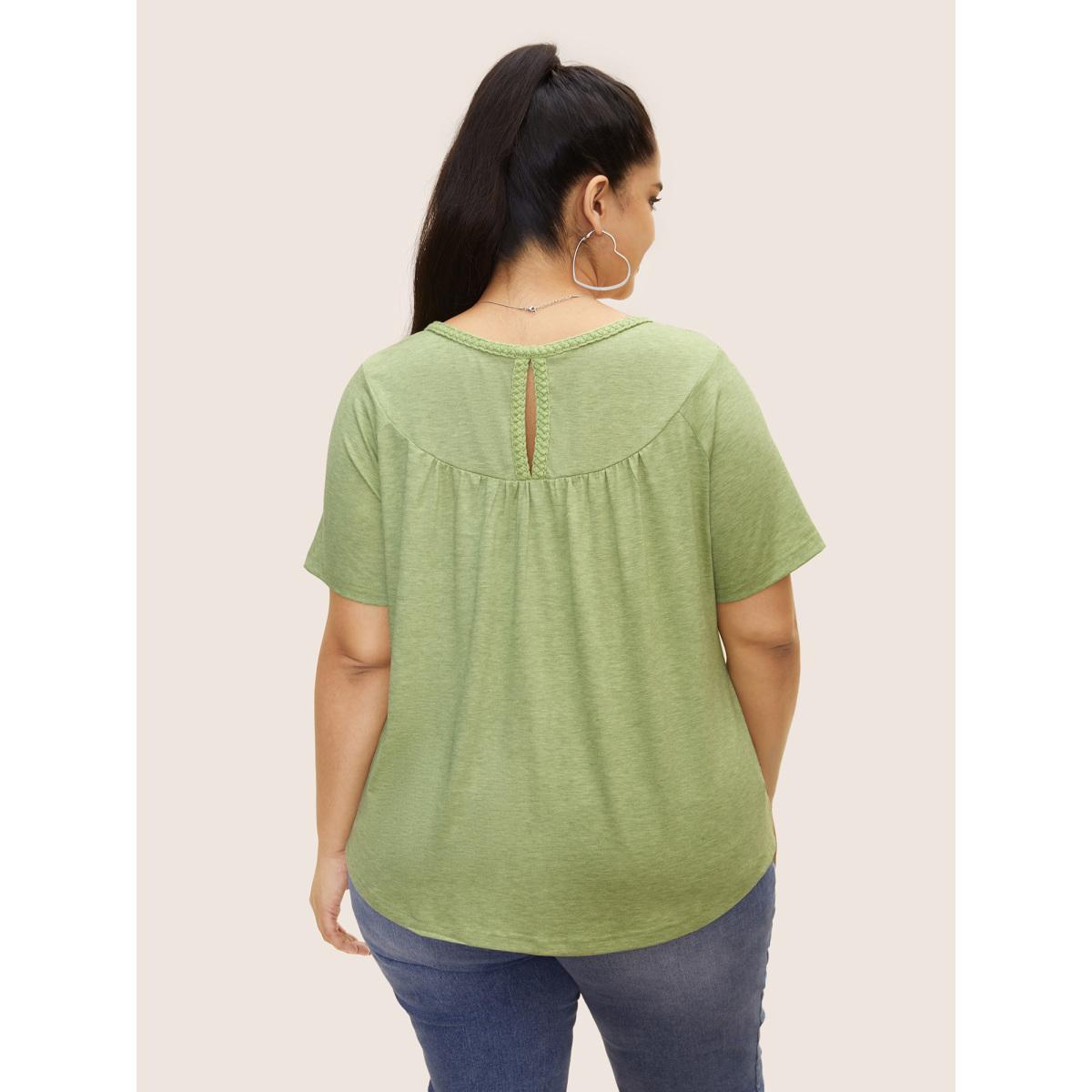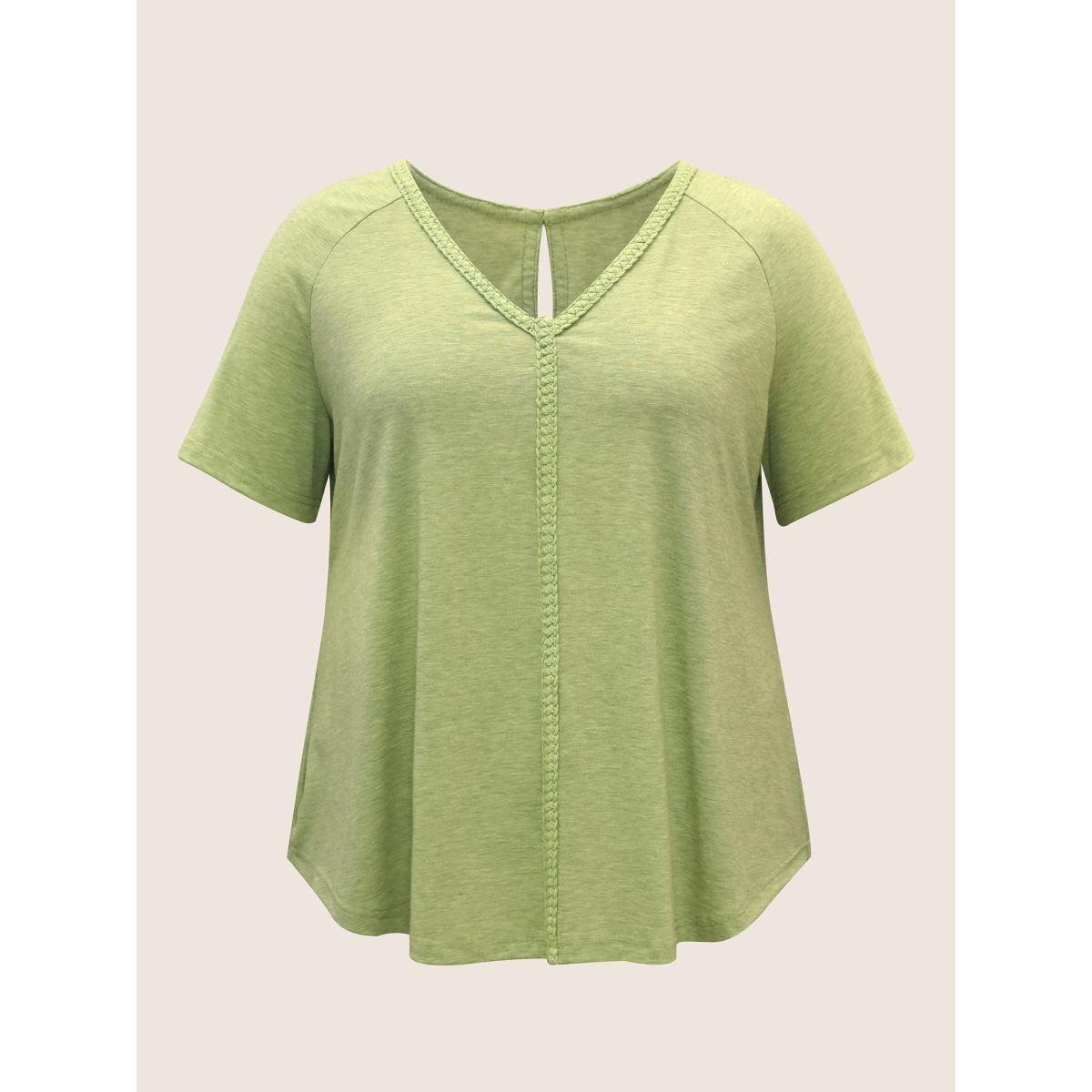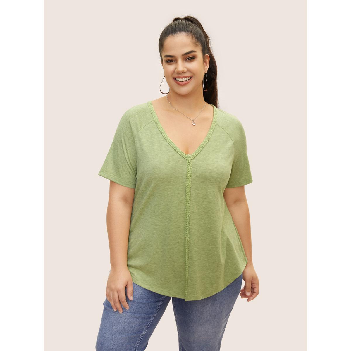 Plus Size Plait Detail Raglan Sleeve Cut Out T-shirt Applegreen Women Casual Patchwork V-neck Everyday T-shirts BloomChic 12/L
