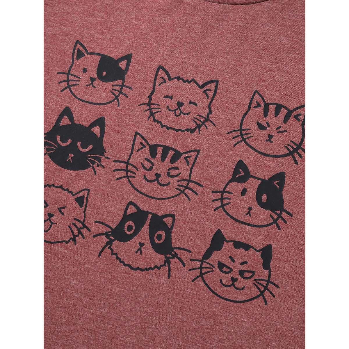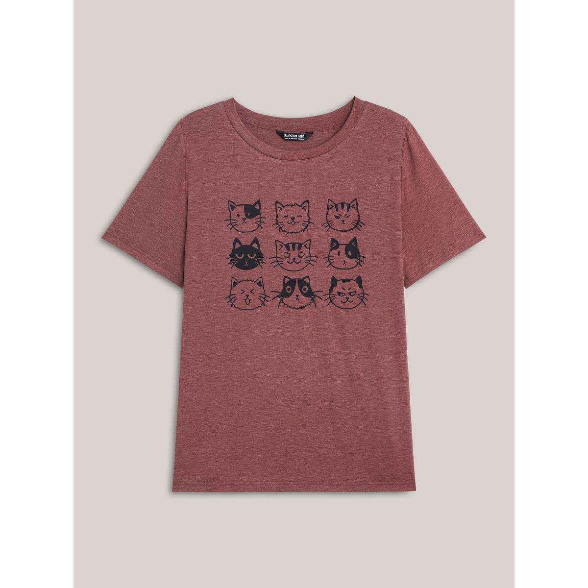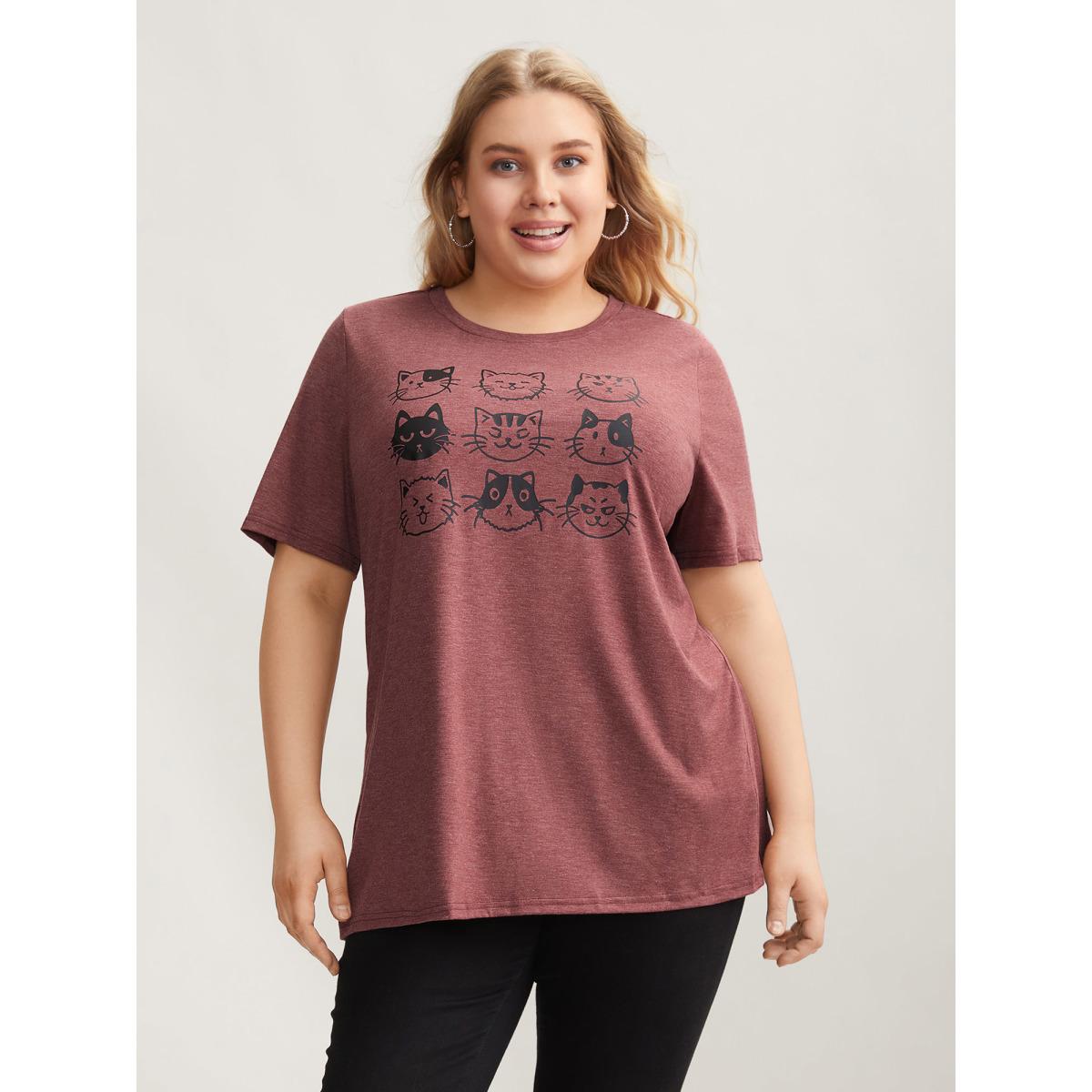 Plus Size Playful Cats Print Crew Neck T-Shirt Russet Women Leisure Non Animal Round Neck Casual T-shirts BloomChic 30/6X
