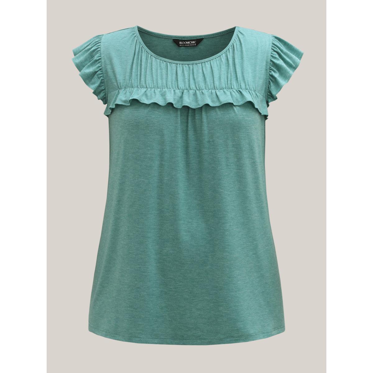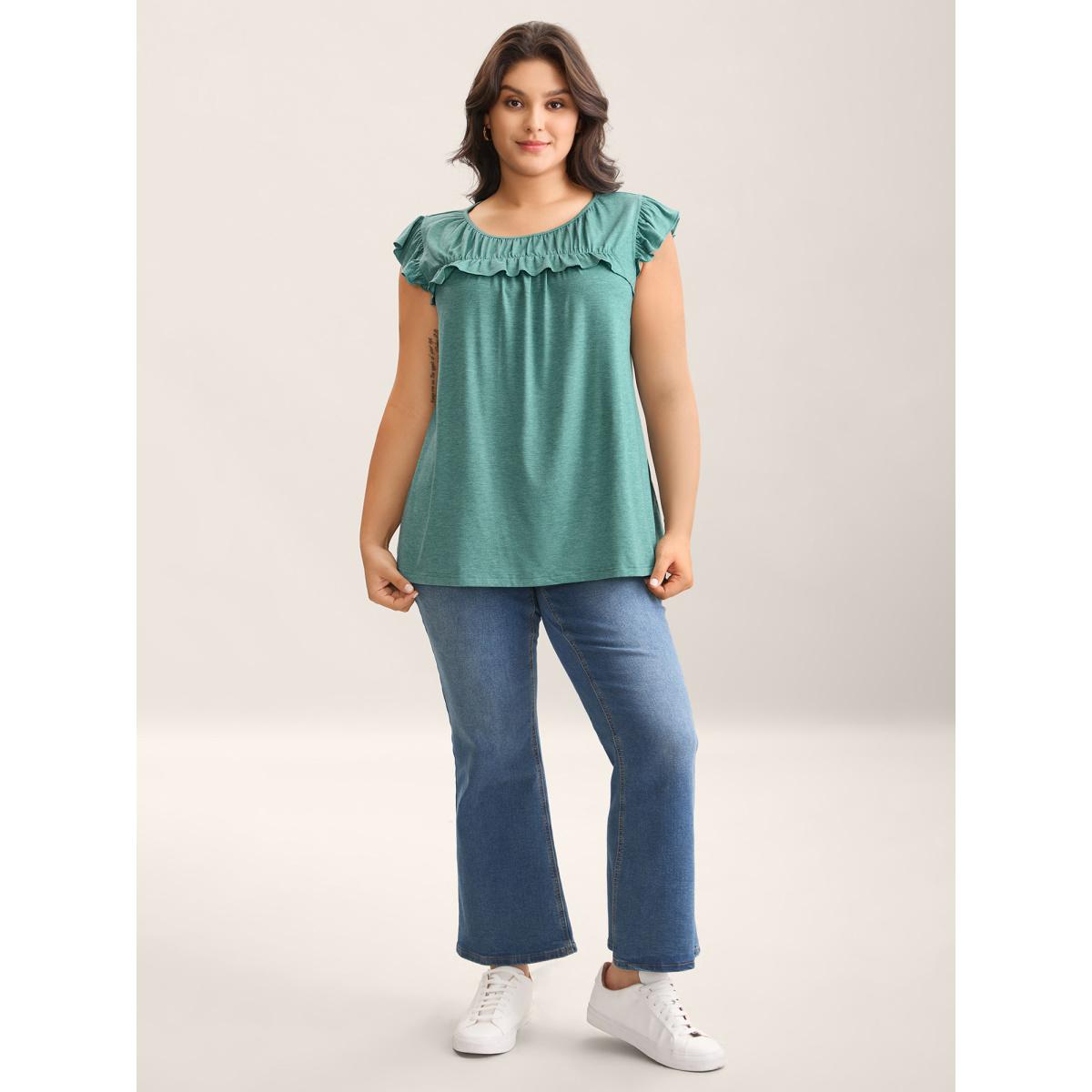 Plus Size Pleated Neckline Flutter Sleeve Tank Top Women Emerald Gathered Round Neck Everyday-Casual Tank Tops Camis BloomChic 28/5X