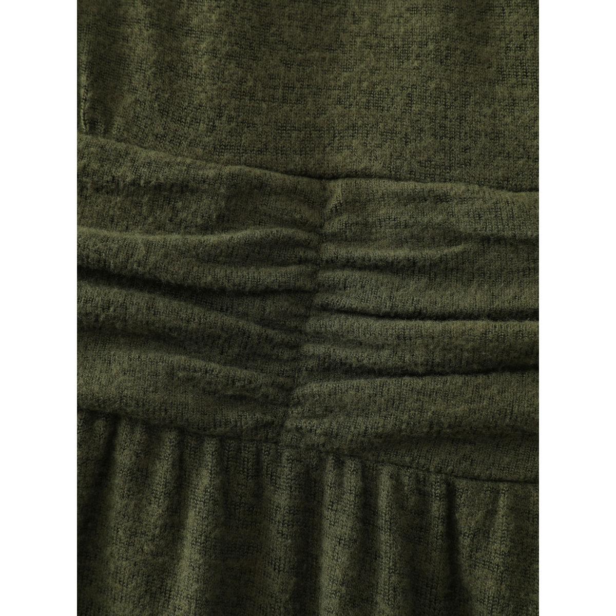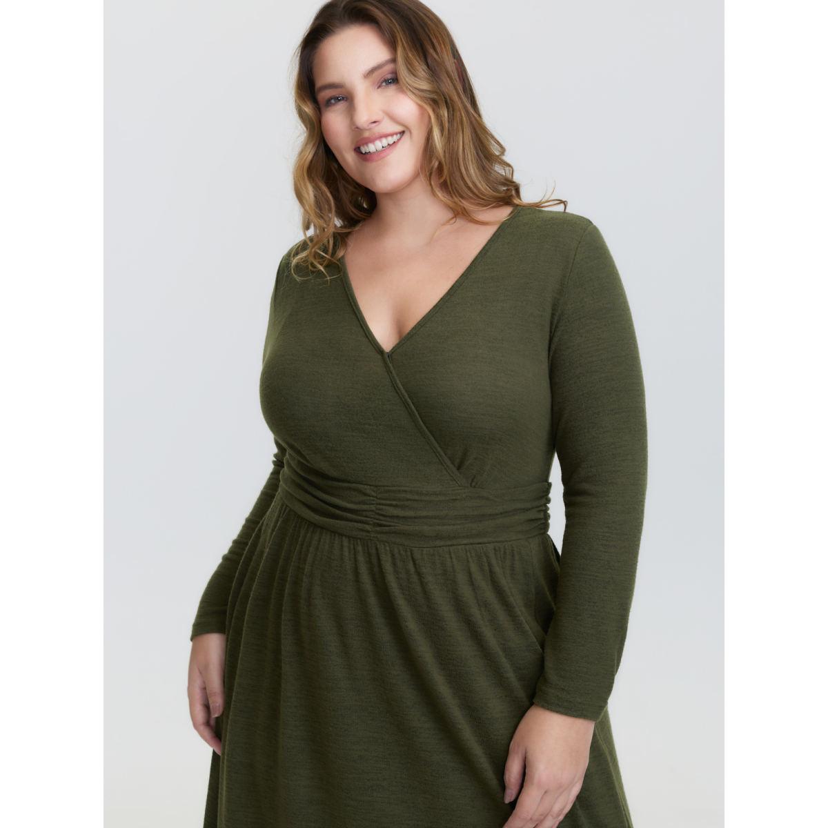 Plus Size Pleated Waist Wrap Neckline Knit Maxi Dress ArmyGreen Women Leisure Overlapping Knit Dresses Bloomchic 22-24/3X