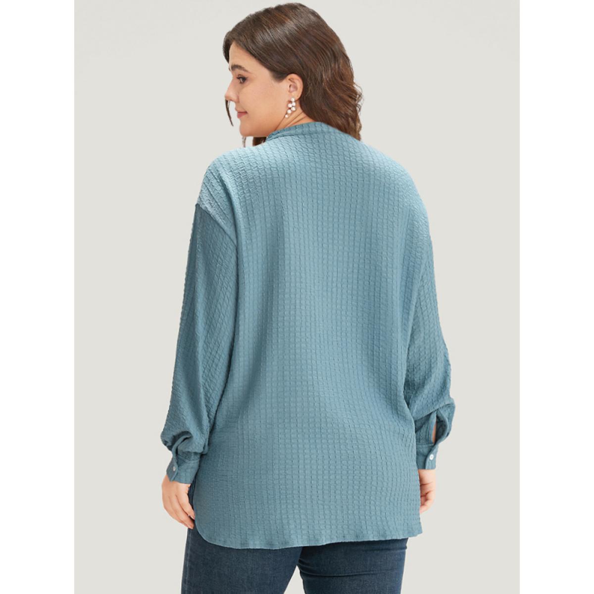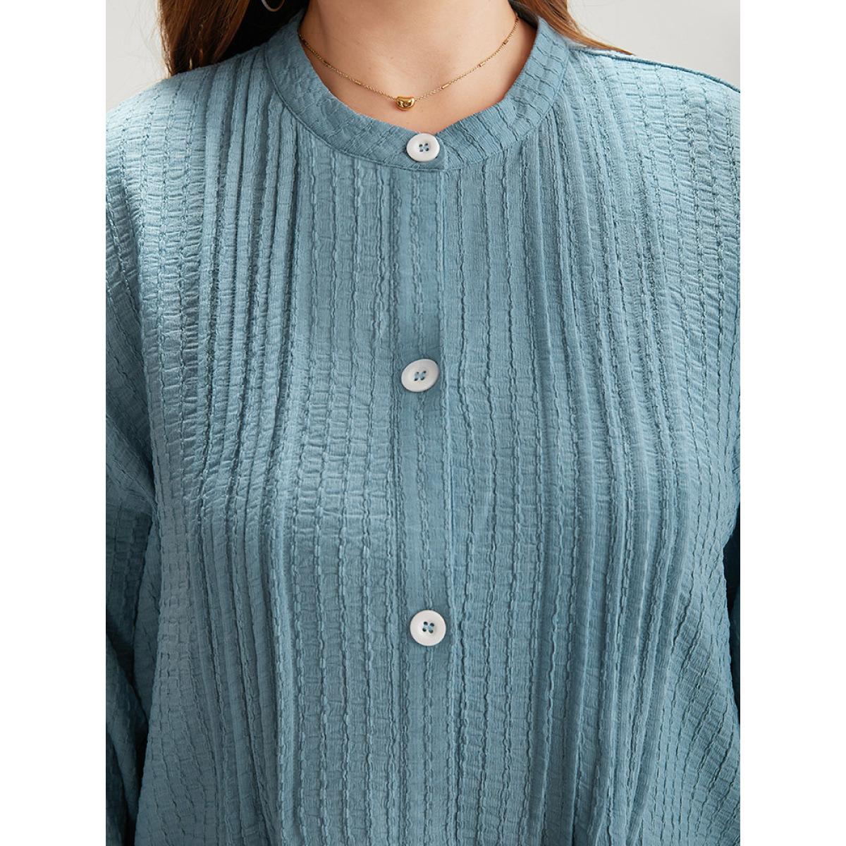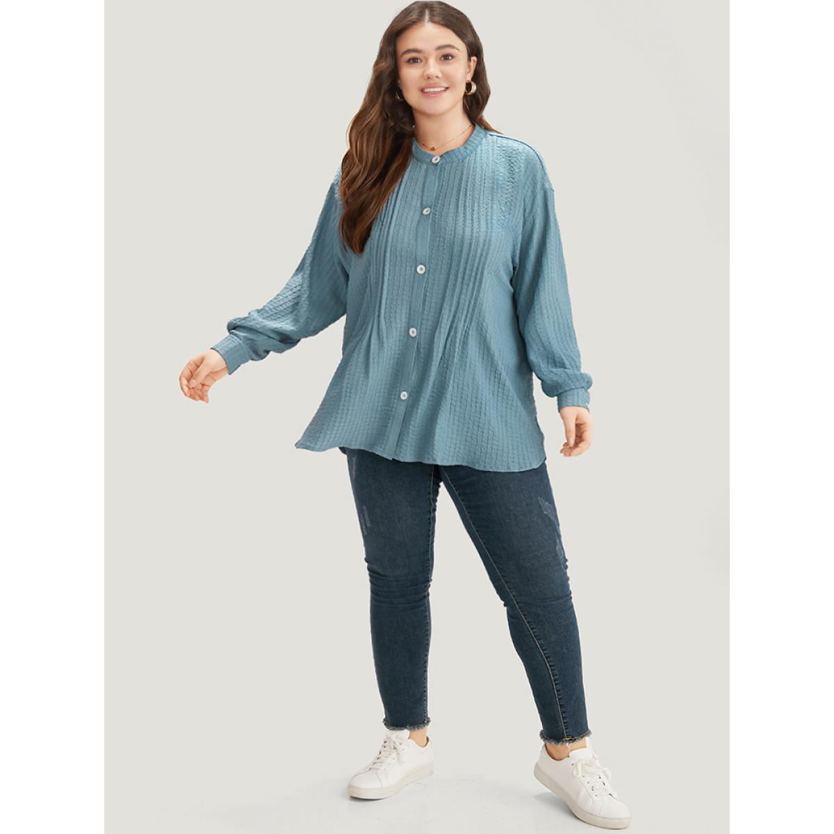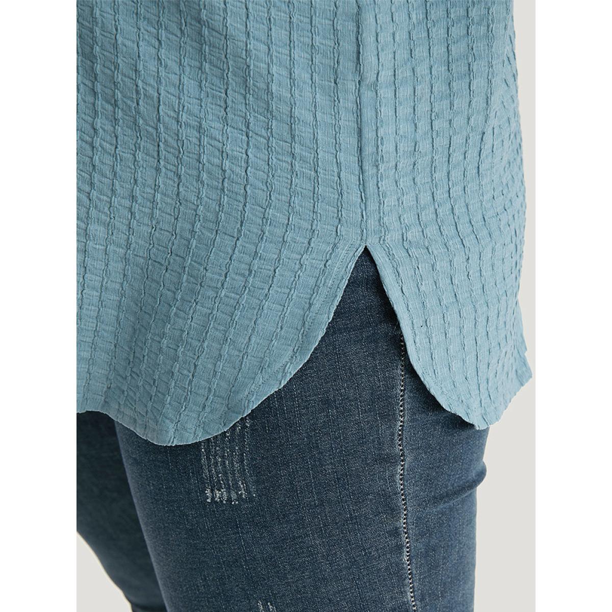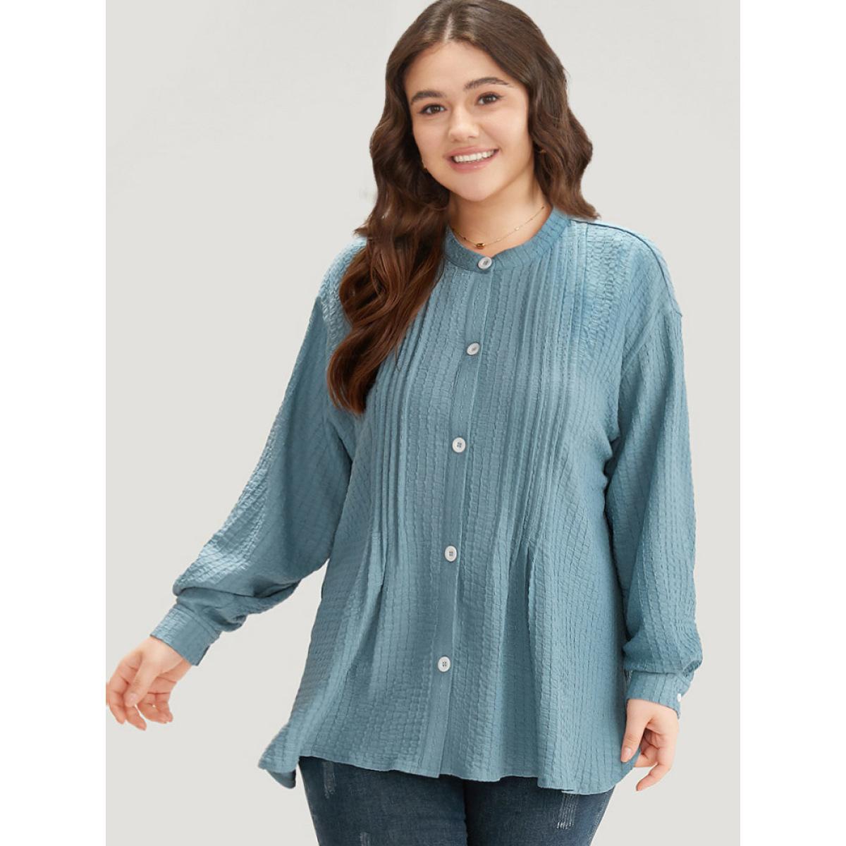 Plus Size Plisse Button Up Curved Hem Kimono Women Stone Casual Texture Everyday Kimonos BloomChic 12/L