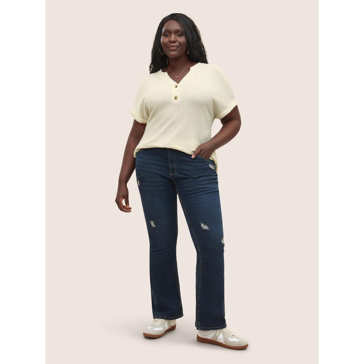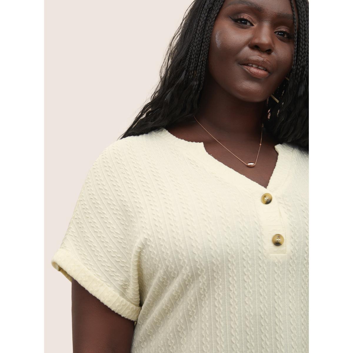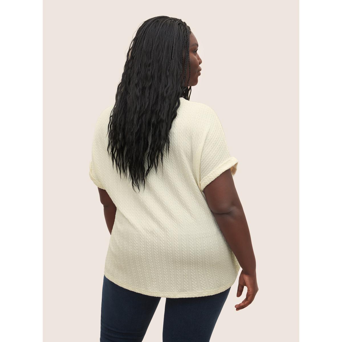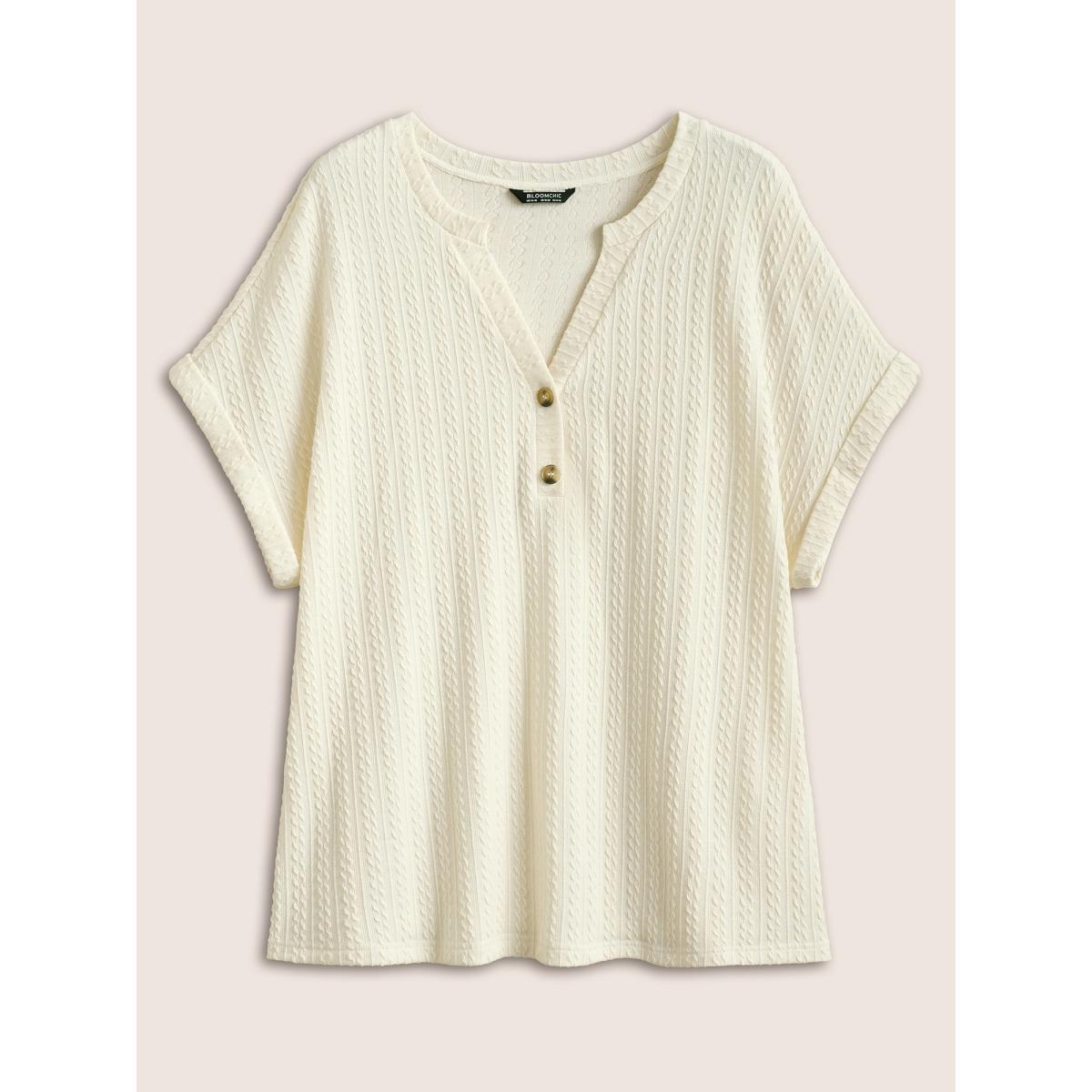 Plus Size Plisse Dolman Sleeve Button Up T-shirt Beige Women Casual Button Flat collar with V-notch Everyday T-shirts BloomChic 10/M